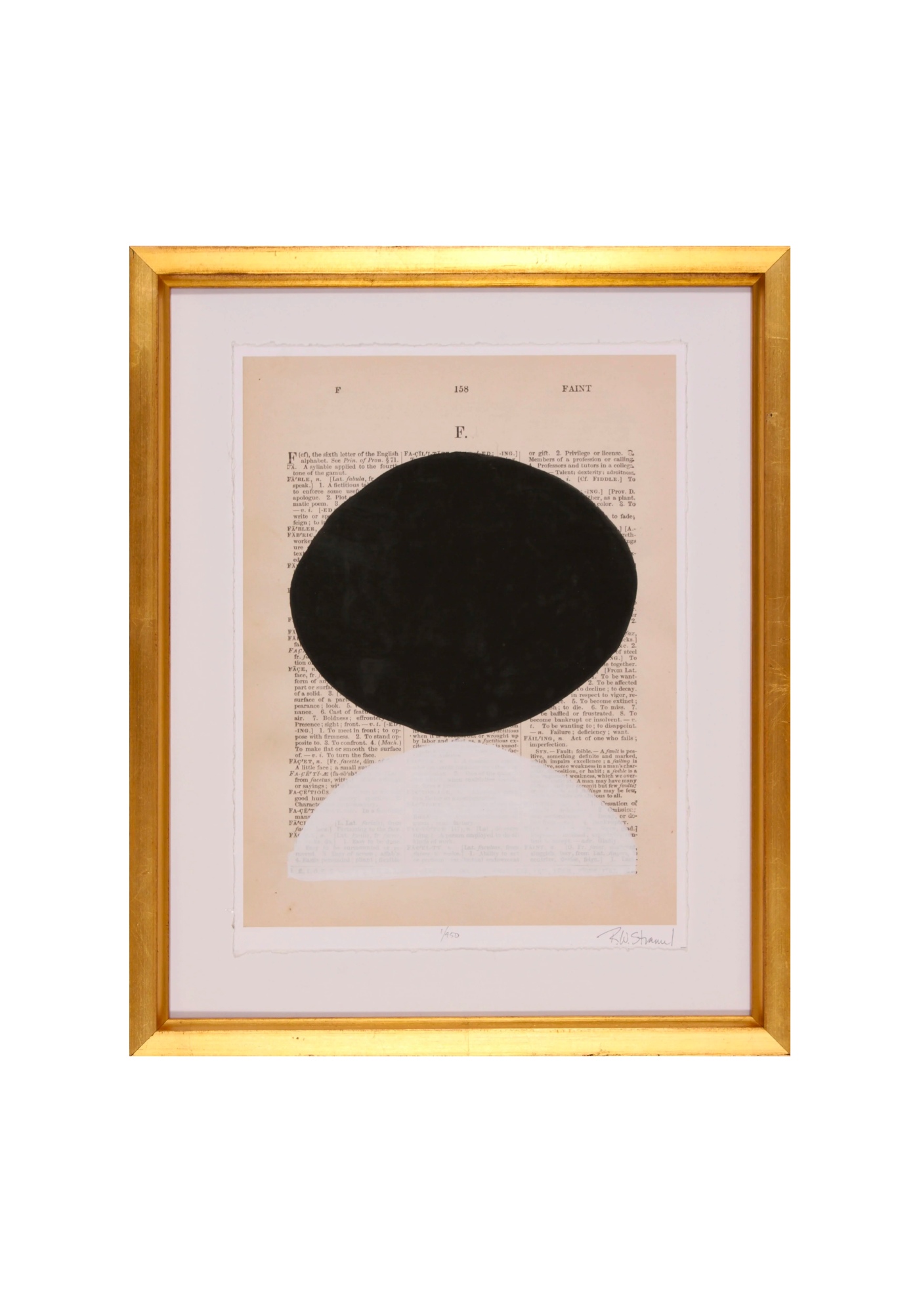 Enhance your home with our Modern Definition I! This abstract art piece is an eye-catching blend of sleek black and white oval designs. Enjoy the delicate deckled edge and unique clarity of each original book page, framed in beautiful gold wood moulding and perfectly set between glass.