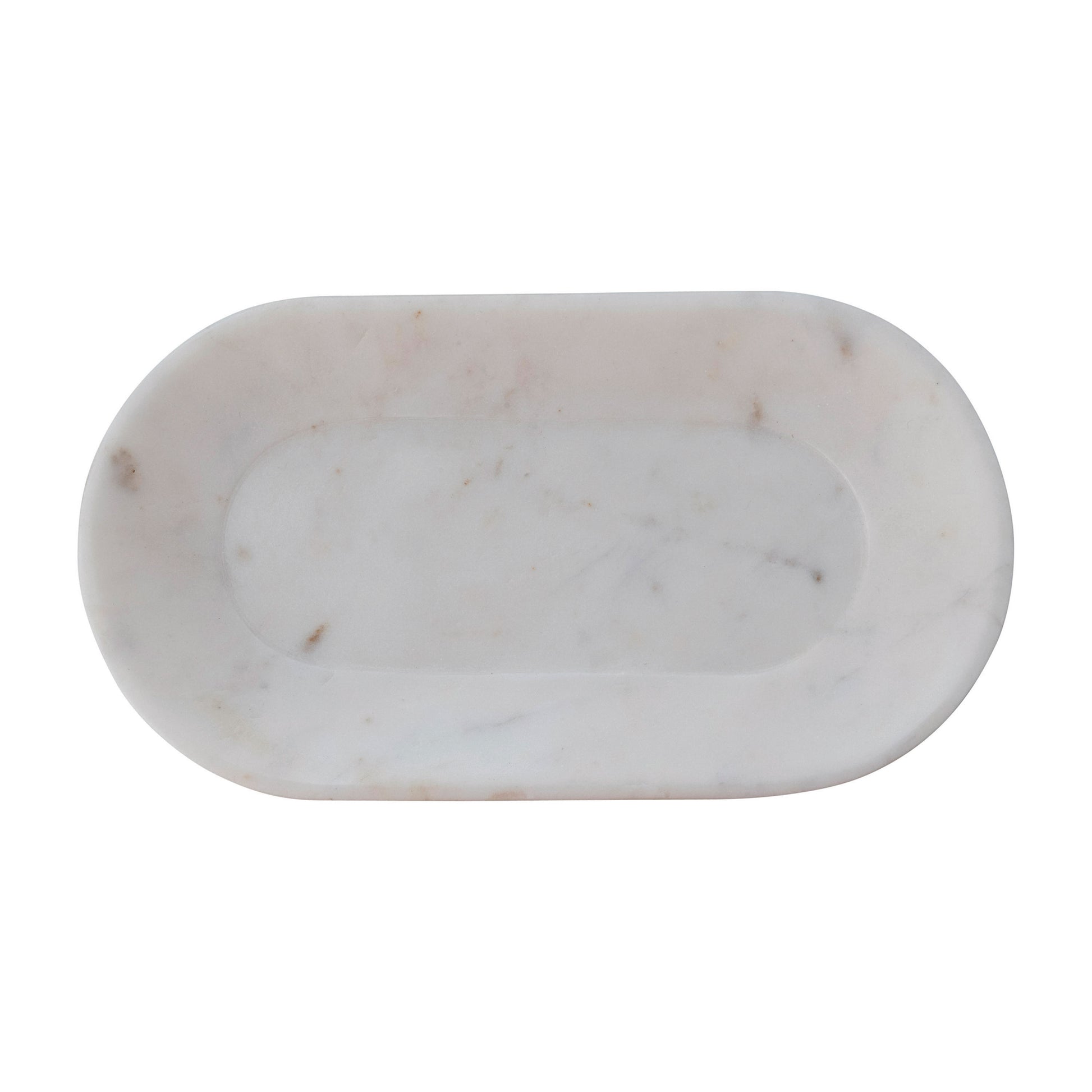 Sometimes it’s the little things that help keep things looking tidy—like this hand-carved marble tray. The smooth, oval shape and subtle veining make it a beautiful catchall for soap, jewelry, or small essentials on the counter. Each tray is made from natural stone, so no two are exactly alike.