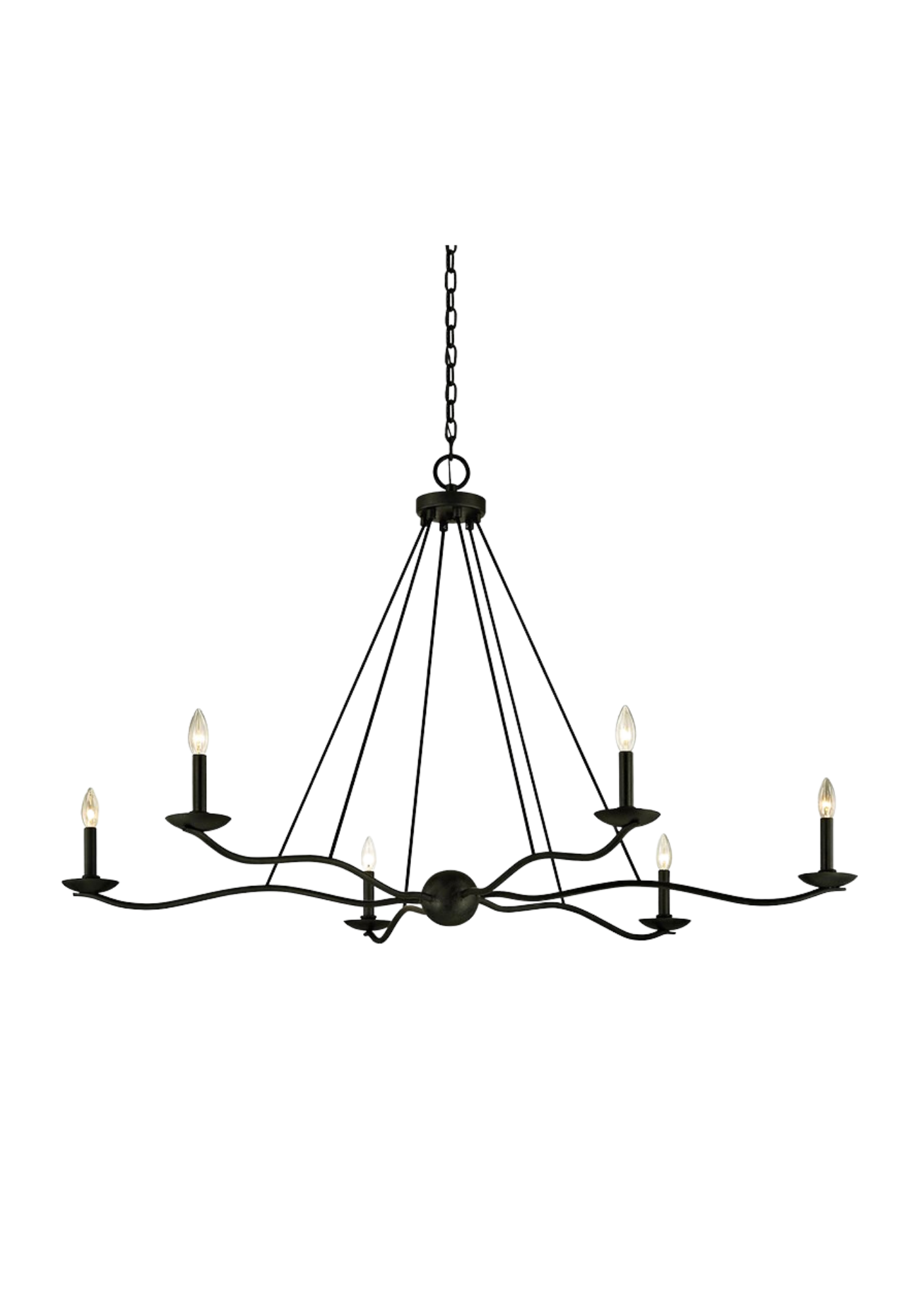 Upgrade your outdoor living space with the Domitian Chandelier! Its ornate silhouette – with textured, Forged Iron arms and glass-covered candlesticks – brings a touch of sophistication and classic style. Enjoy the elegance of six lights and slender hooked chain detailing, all designed to withstand the elements. Add a timeless touch of luxury to your space today! Available in various sizes - Small, Medium, Large, and Grand!