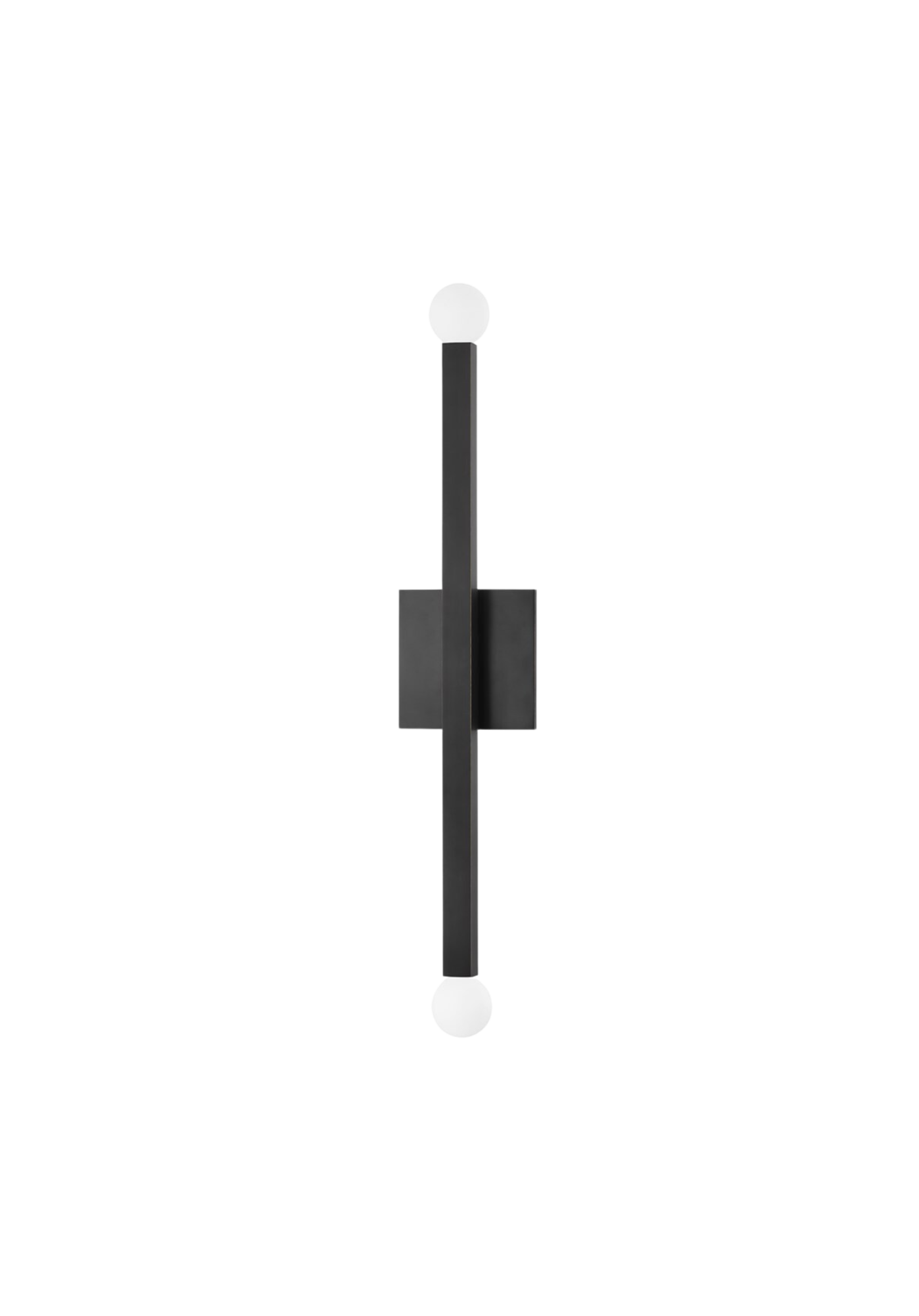 The Bridgeport Sconce is the perfect combination of modern style and lighting convenience. Its sleek and modern design effortlessly elevates any wall, with two round bulbs at the top and bottom of the fixture.