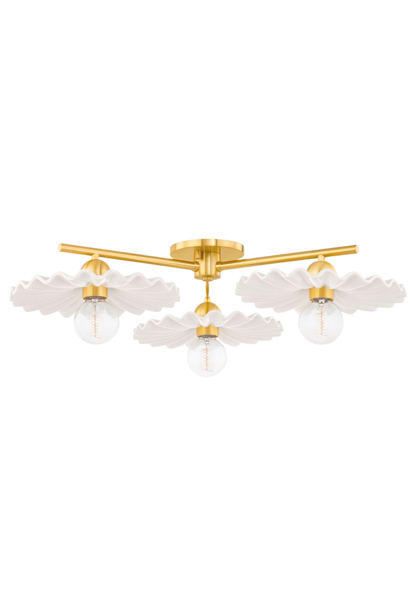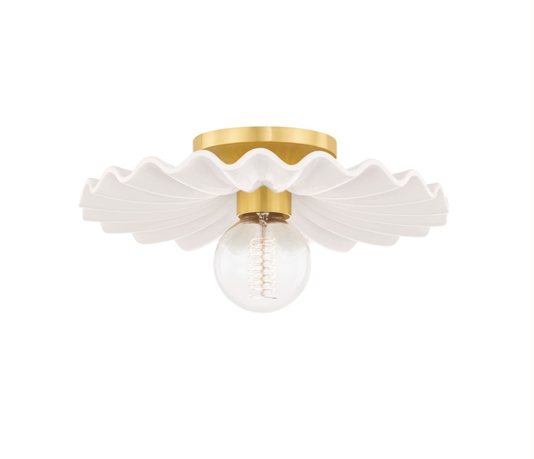 Grove Flush Mount is a charming piece that radiates southern grace and femininity! Its white ceramic collar creates a subtle contrast against the aged brass pipe while an exposed globe bulb adds a touch of magical light to any room. Add a touch of character and whimsy with Grove!