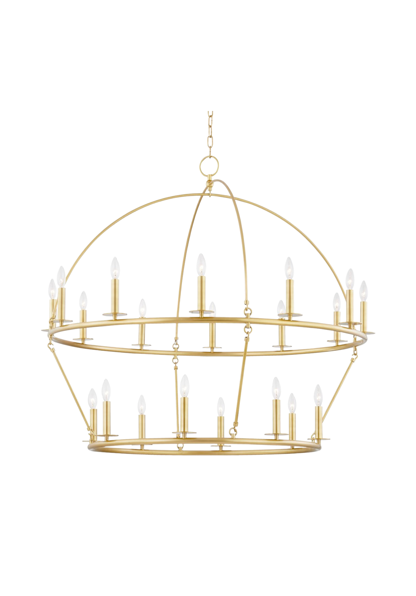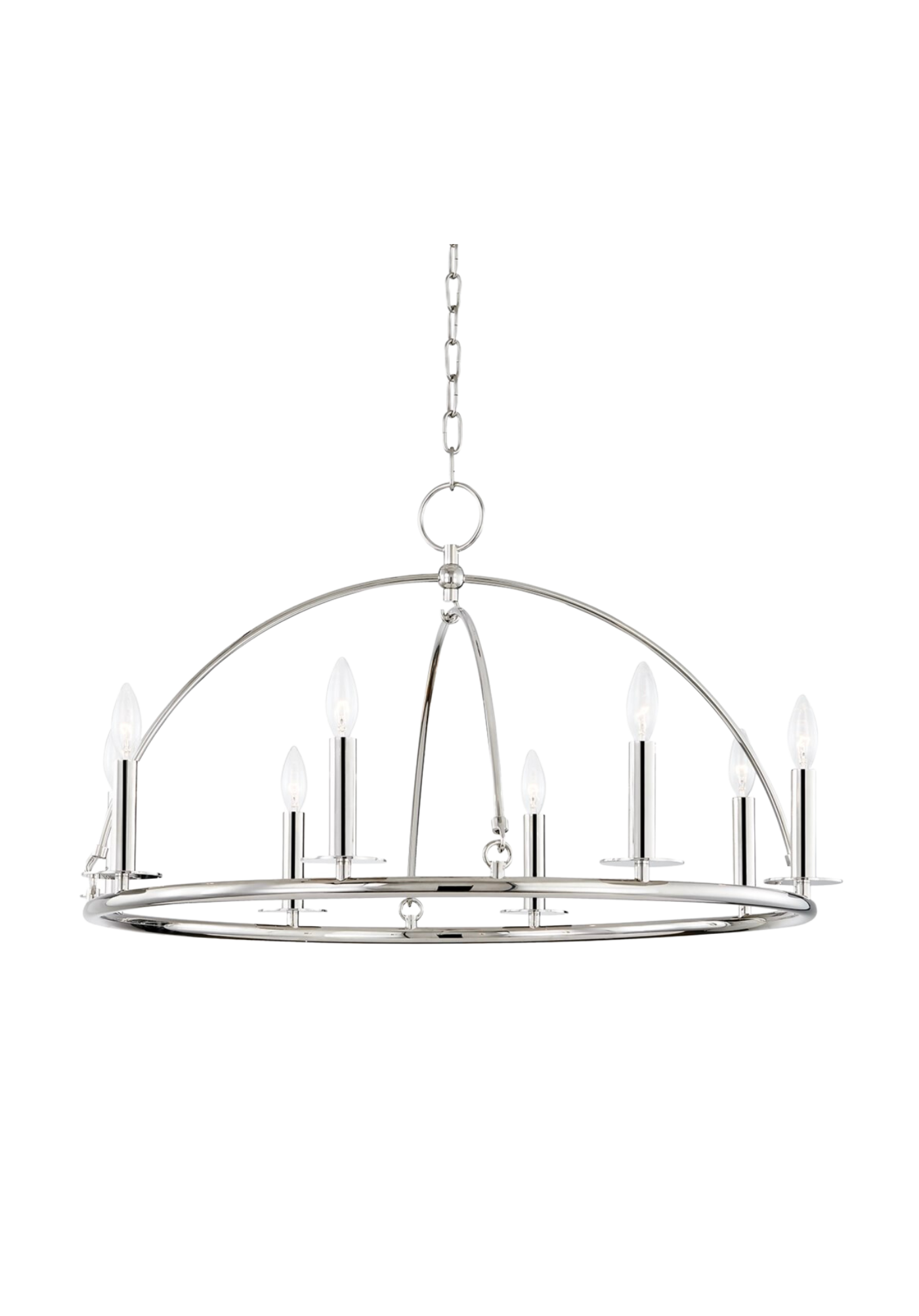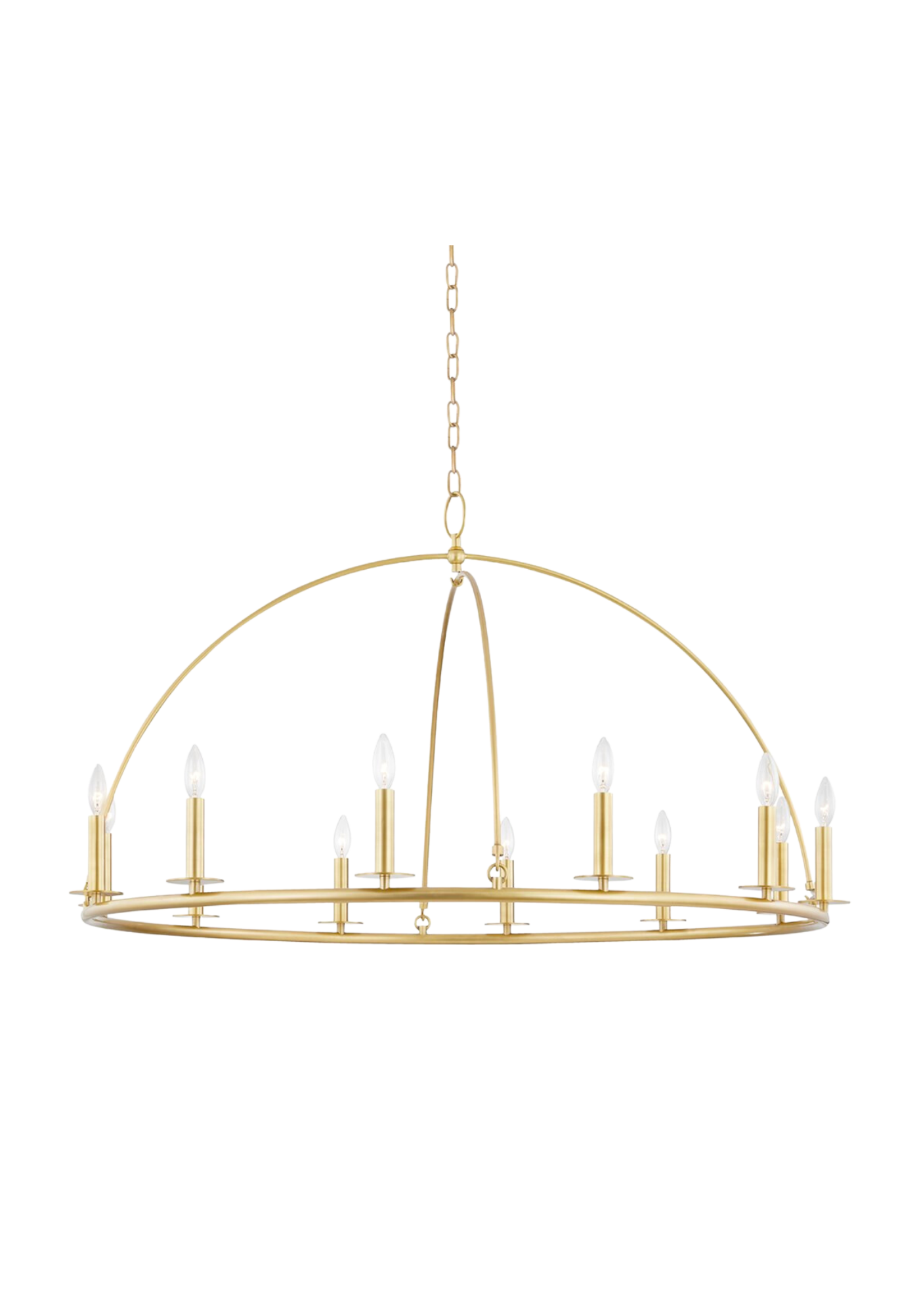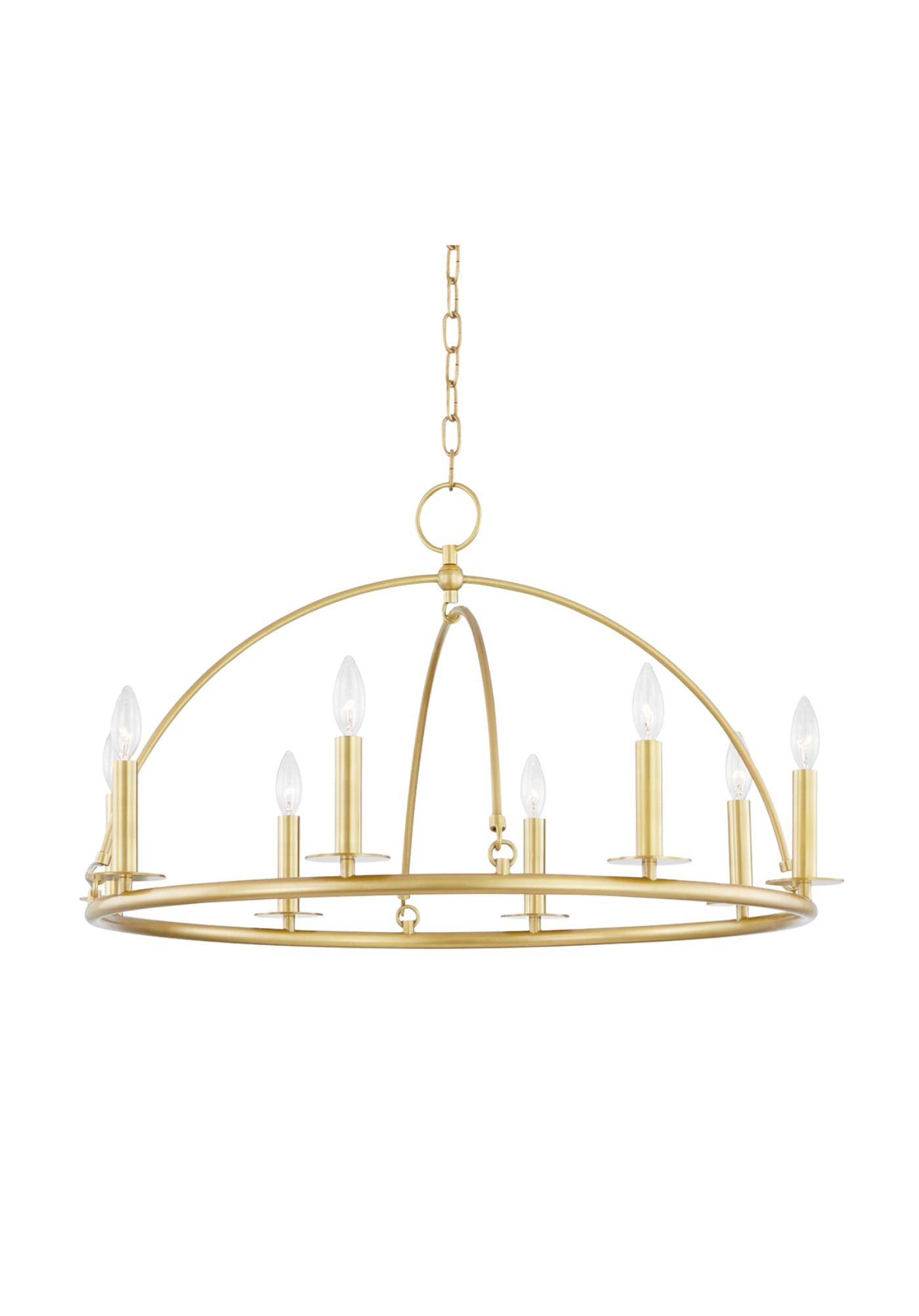 This nostalgic Nero Chandelier is the perfect combination of modern style and timeless appeal. Enjoy the domed shape with metal arches, and bright, beautiful light from the abundant candelabra bulbs. Available in Aged Brass, Polished Nickel, or Aged Iron, the perfect addition to your home awaits!
