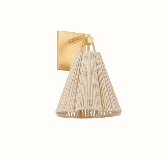 Exuding breezy sophistication, the Stelle Sconce showcases a textured, scalloped design crafted from bleached Abaca rope. The bell-shaped shade features scalloped edges and is elegantly suspended by delicate metalwork.