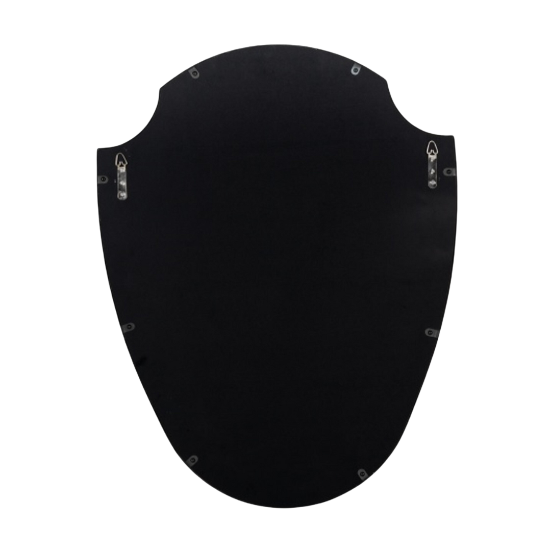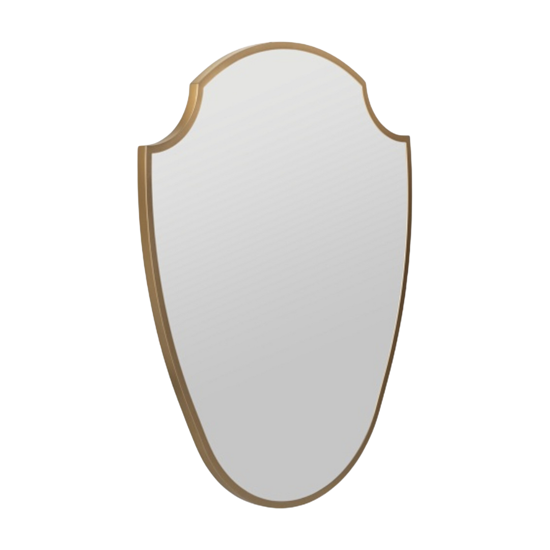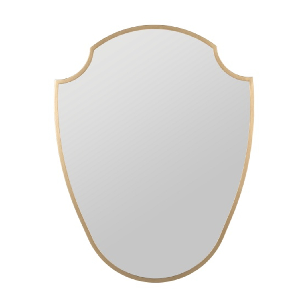 The Zola Wall Mirror is a stunning decorative piece featuring a unique shield shape. It is elegantly framed with a sleek gold trim, adding a touch of sophistication to entryways, bedrooms, or living spaces. This mirror combines classic design with modern elegance, making it a perfect accent for various interior styles.