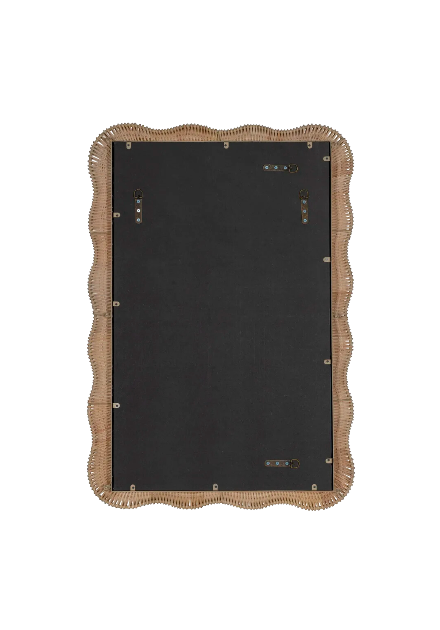 The eye-catching Scalloped Rattan Mirror is a stunning statement piece for your living room, bathroom, or bedroom. Featuring a unique scalloped design with rattan accents, it creates an appealing effect. Transform your decor and add a touch of style with this beautiful mirror.