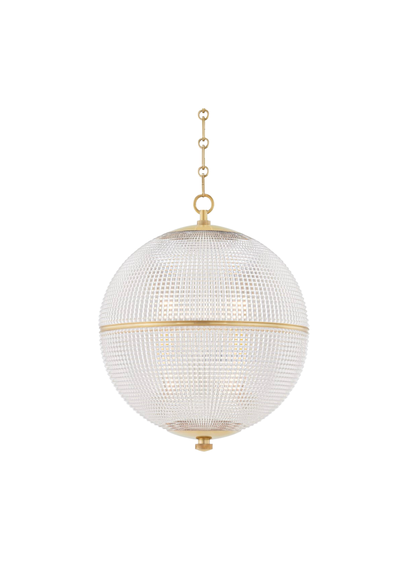 Style your space with the stunning Lindale Pendant. Featuring a caged design and sleek lines, this eye-catching fixture hangs on a hook with chain wire and is available in three elegant finishes - aged brass, old bronze, and polished nickel so it's sure to match any décor.