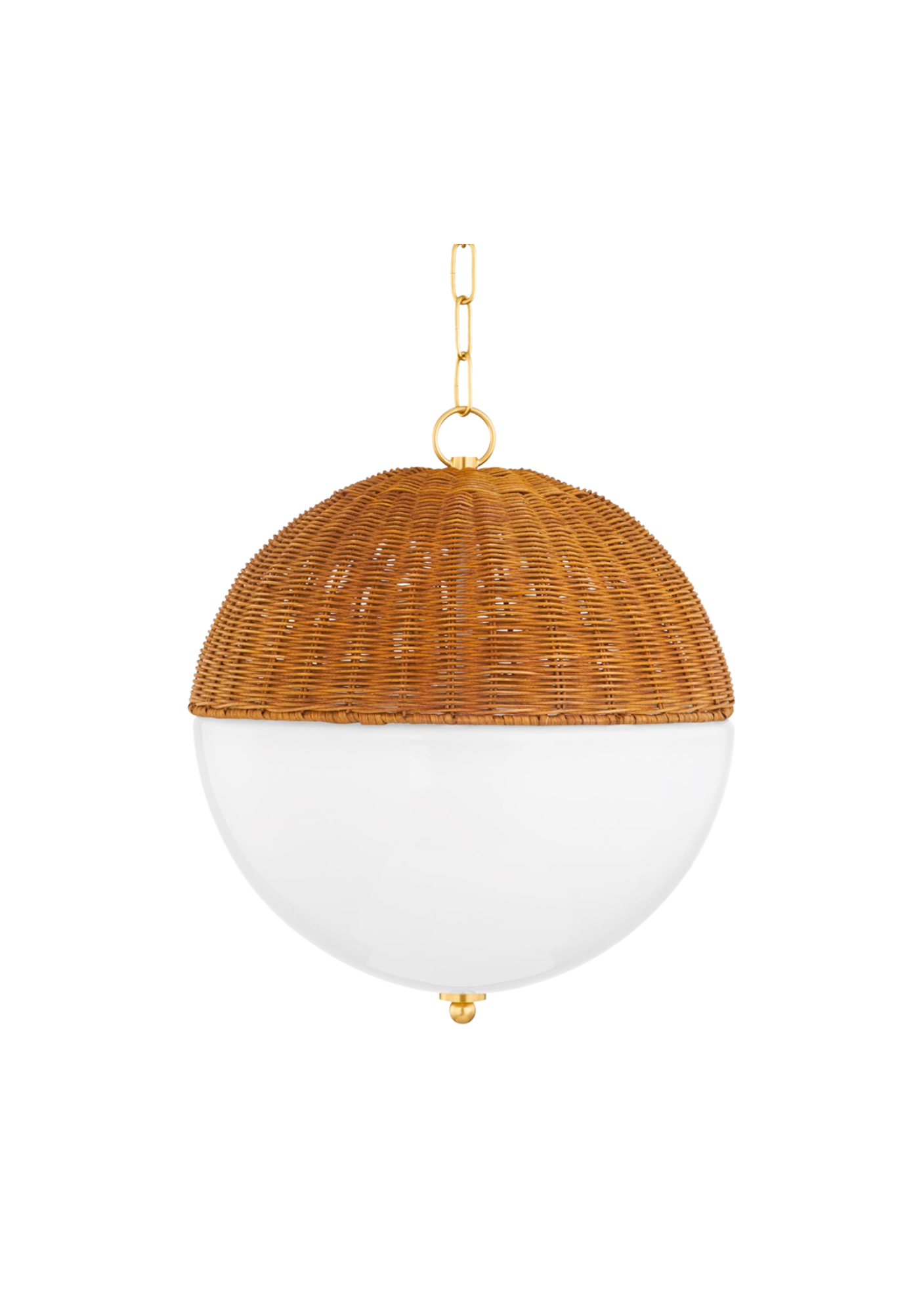 Bring summer into your home with the Arianna Pendant. This beautiful globe light is the perfect blend of texture and style, featuring opal glass and hand-woven rattan for a natural touch.