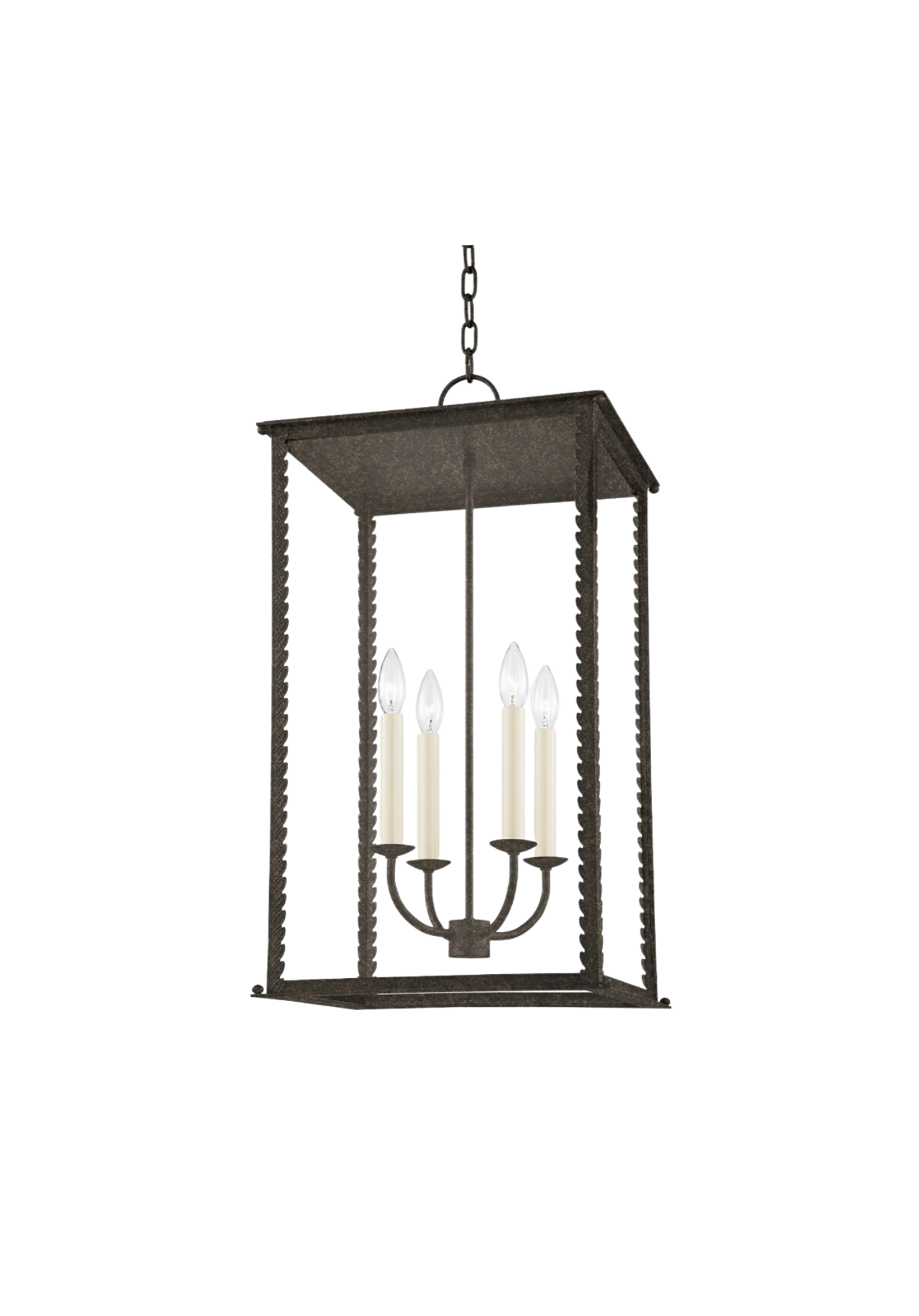Take your space to the next level with the Bonnais Pendant. This stunning light features a captivating silhouette drawing inspiration from the natural world, with elegant leaf details climbing up the edges and demure finials at each corner. The clear glass beautifully showcases the candlestick lights.