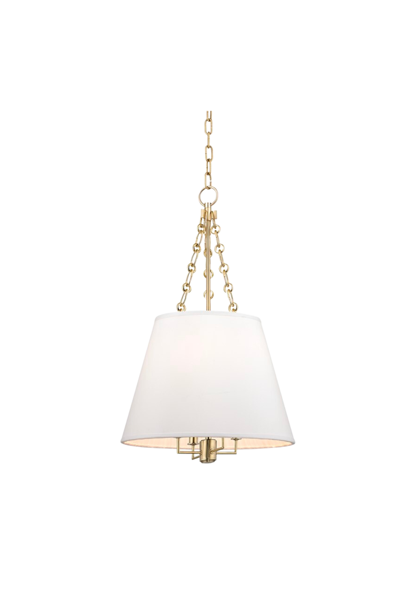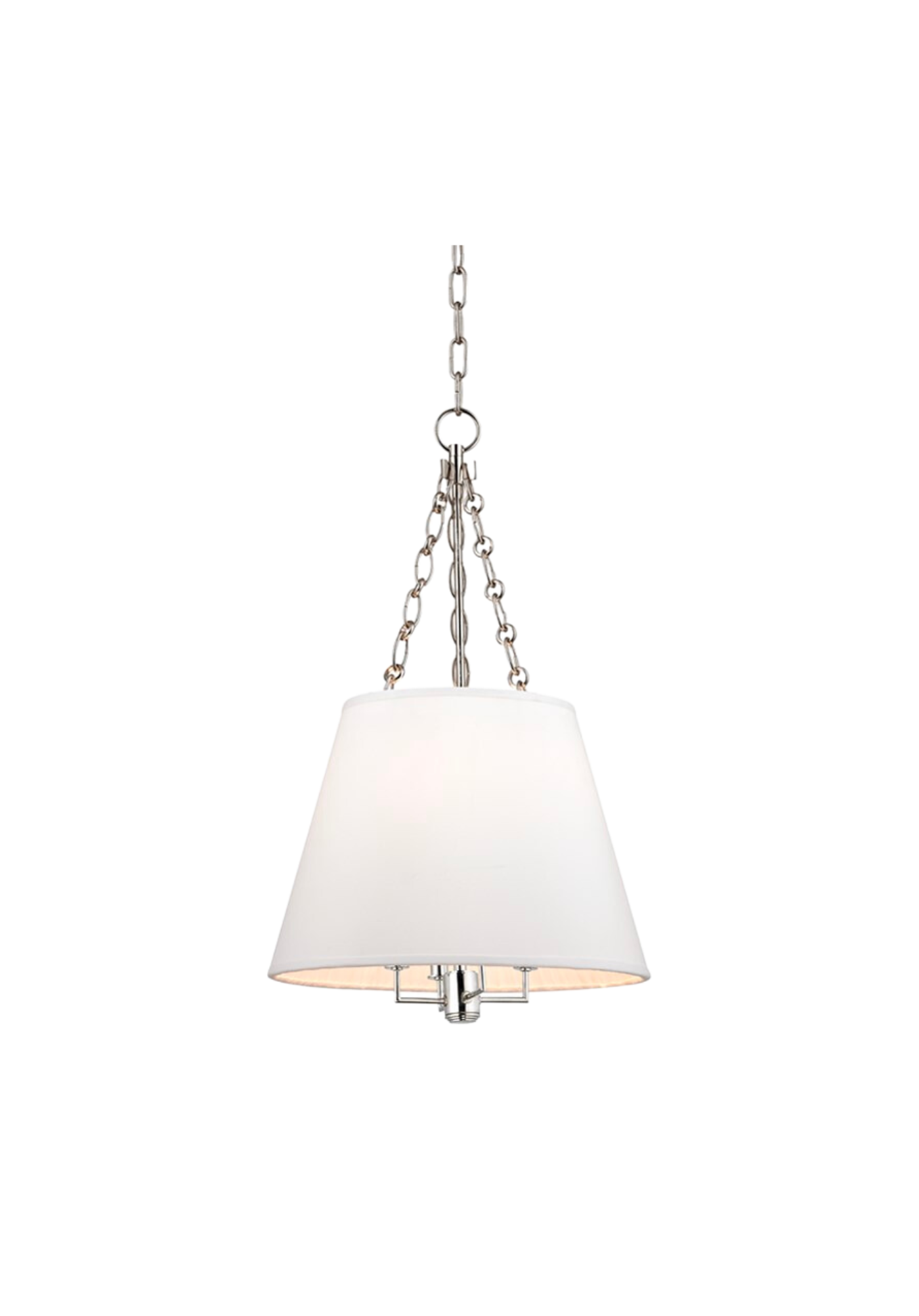 The Cornelia Pendant is a sophisticated blend of contemporary and opulent design elements. Its clean-lined exterior is deceiving; when we look closer, the sumptuous pleating beckons us back to a time of luxe. Don't be fooled by the sleek surface-- Cornelia has a lavish surprise inside.