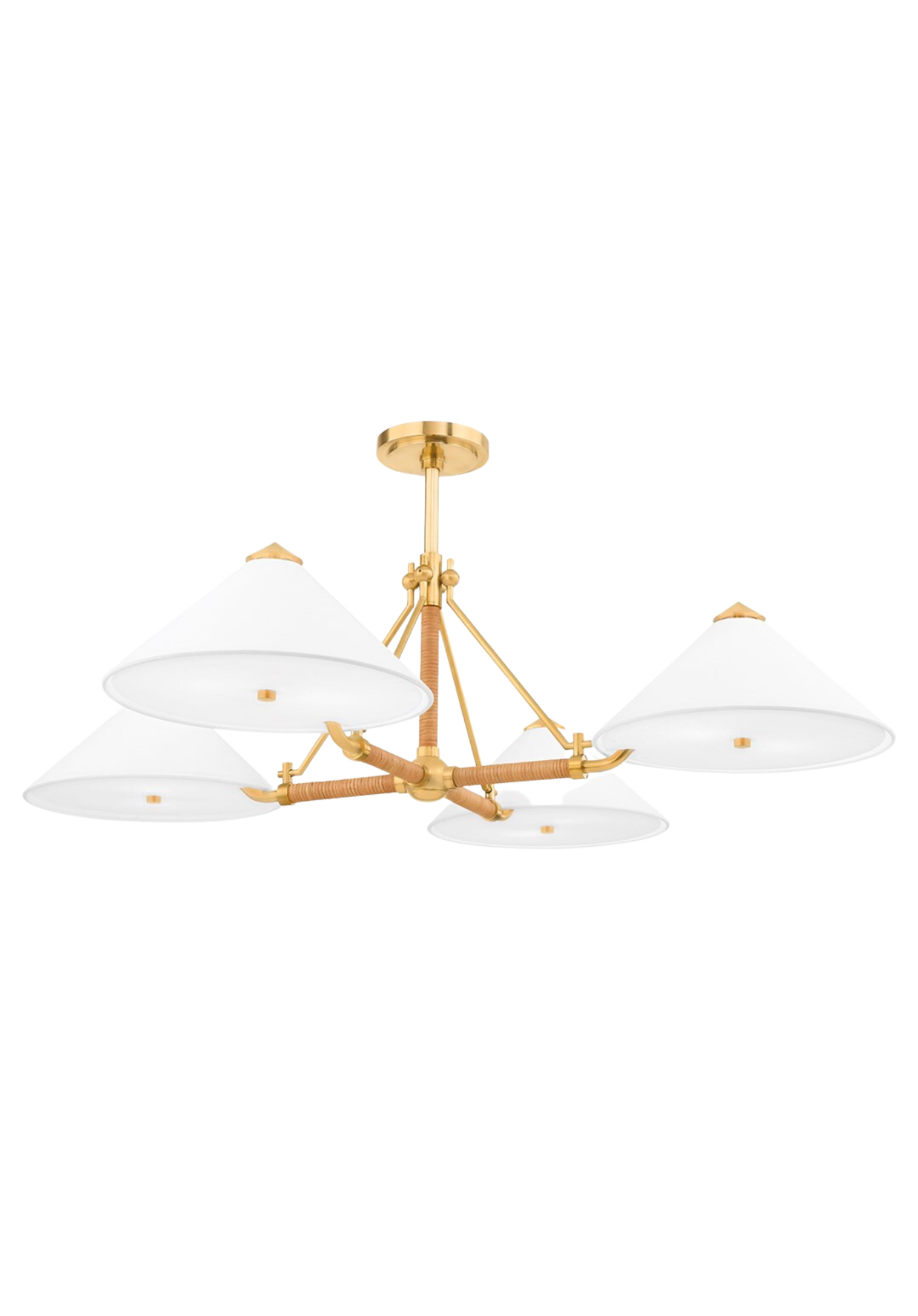 Brighten up any space with the Maria Chandelier! The unique silhouette and rattan-wrapped rods give this classic design a timeless, updated look. The enclosed shades capture light and fill your room with a warm, inviting glow. Add a touch of elegance to your home and make every room shine with the Maria Chandelier!