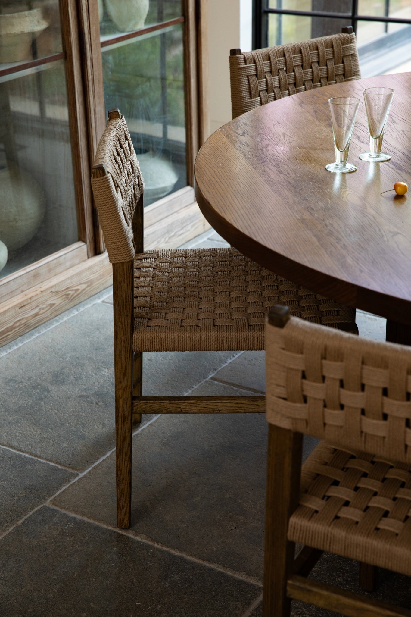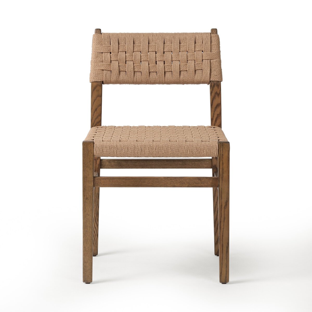 Highlight your dining area with the Irving Dining Chair. Made with a tapered oak frame and woven back and seat, this chair offers a sophisticated blend of texture and clean lines. The natural wood and muted cord pattern add a touch of neutral elegance, perfect for any home.