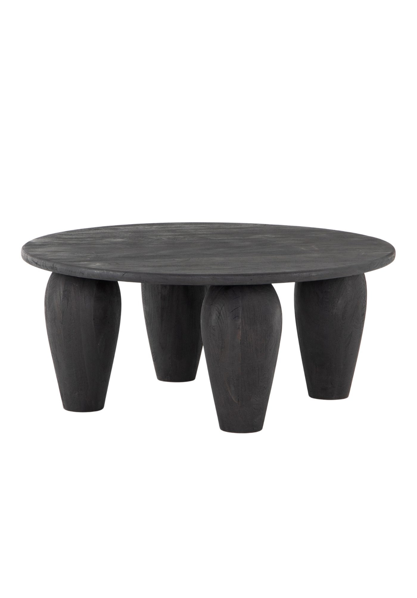 Shapely, sturdy legs support a slim, curved top of dark repurposed wood for a global, natural vibe and handmade quality.