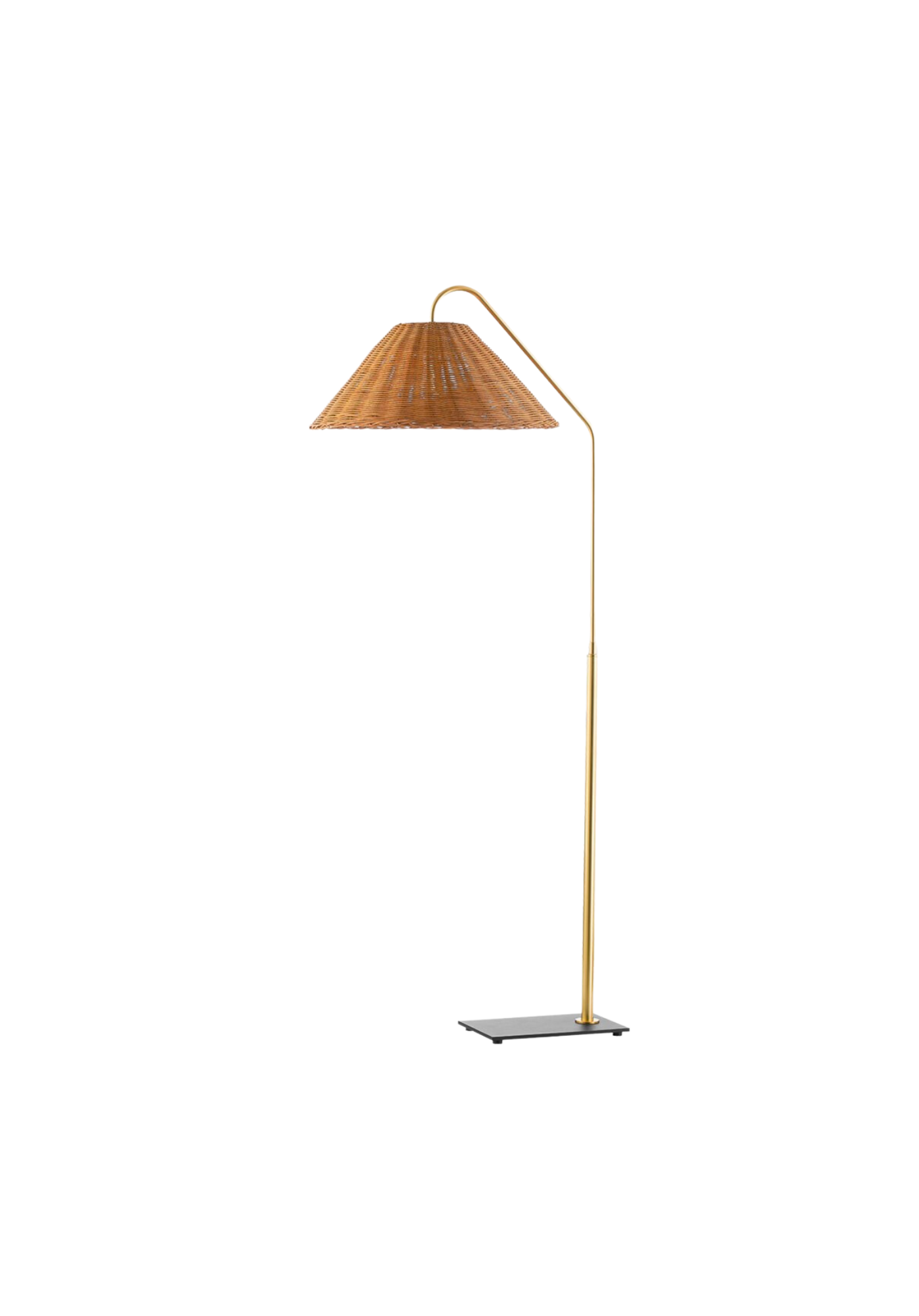 Light up your space with the Nicoletta Floor Lamp. An aged brass frame and textured black base pair with a natural rattan lampshade to create a truly eye-catching design. Bring a perfect nature touch to your home with this stunning floor lamp.