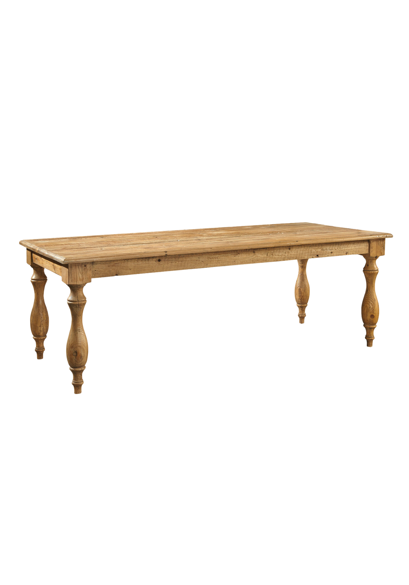 This classic farmhouse-style dining table boasts updated features like reclaimed pine and exaggerated baluster legs. Its neutral tone is the perfect canvas for your chair-choosing creativity.
