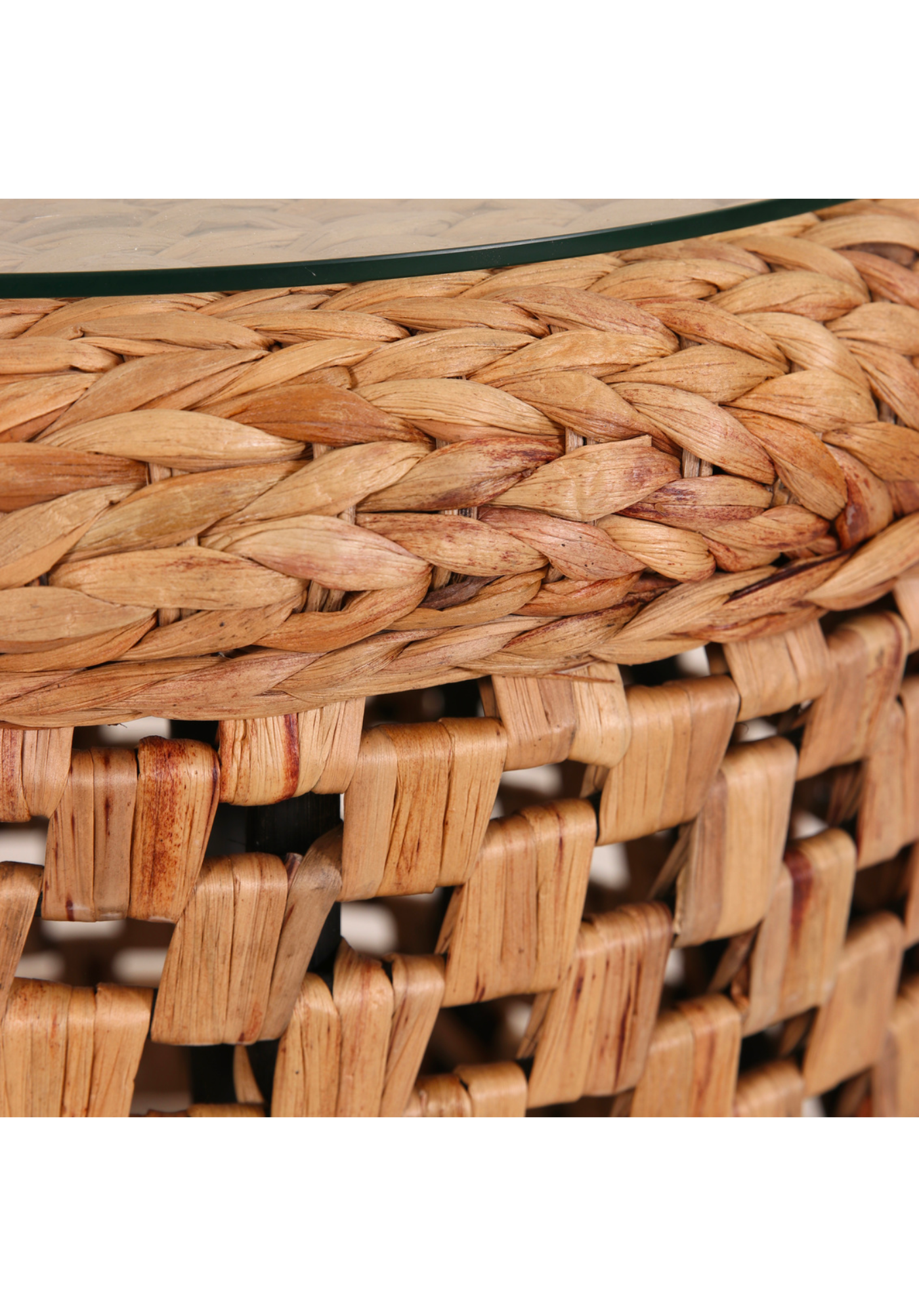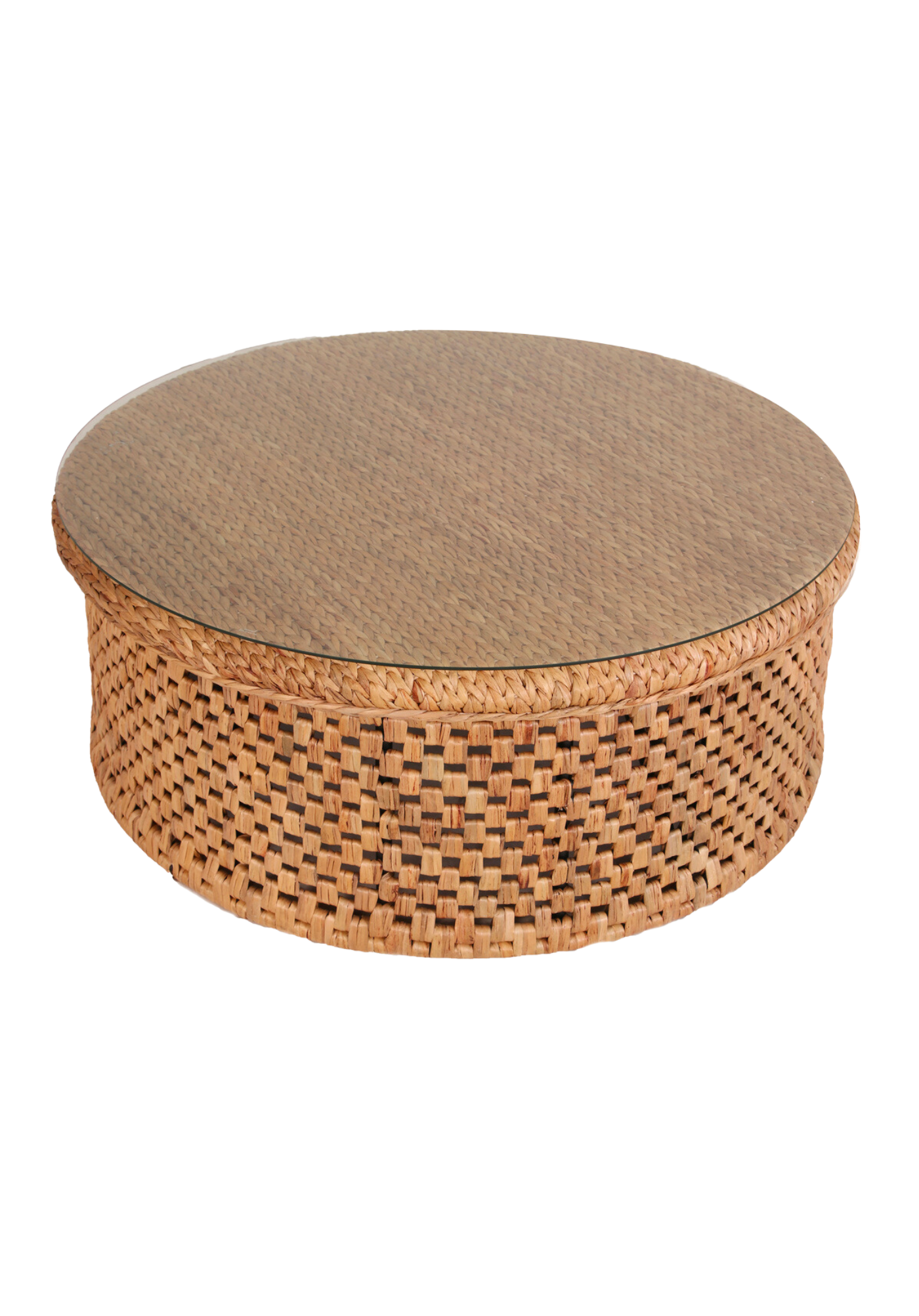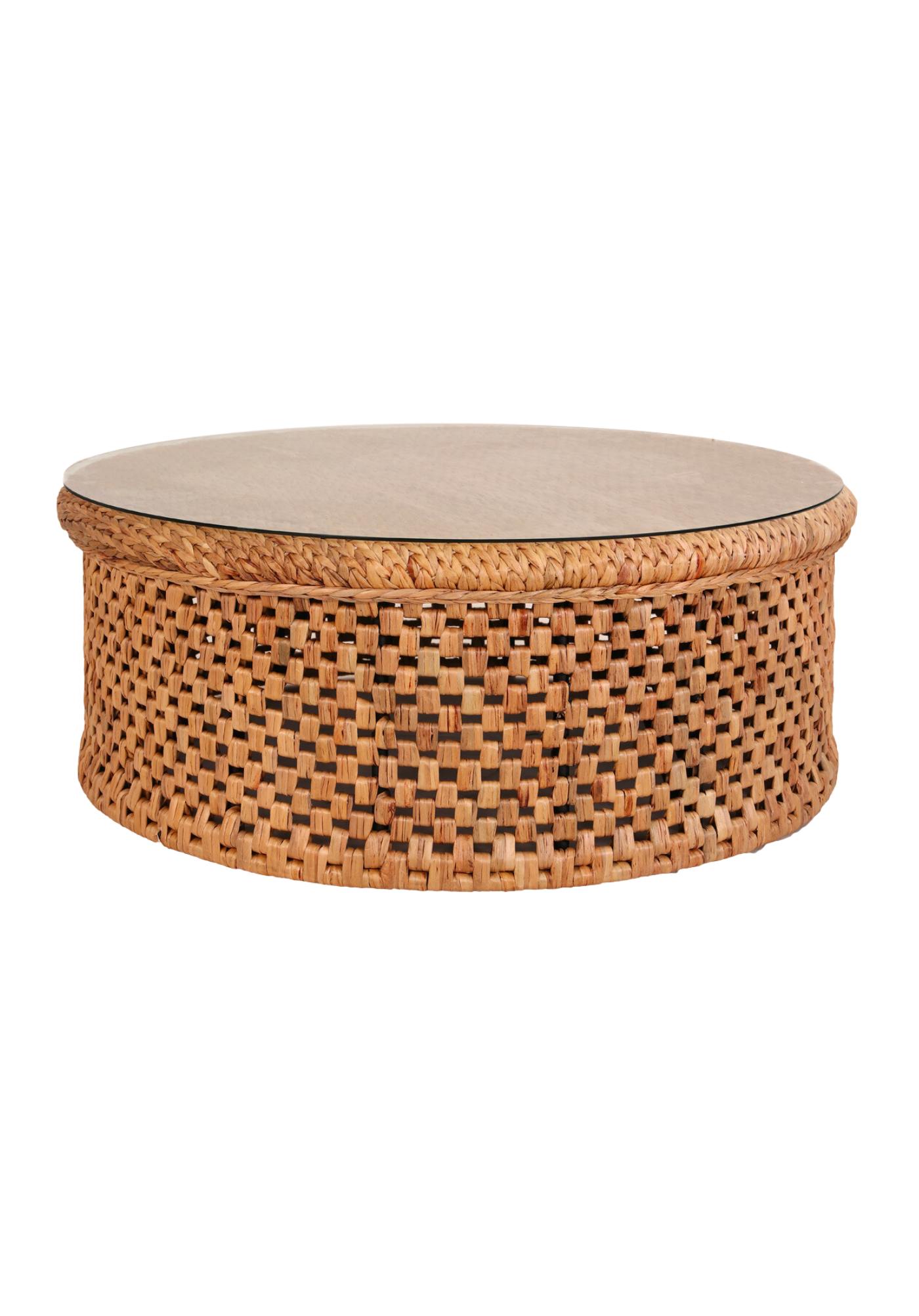 If your abode beckons for a dose of temperament and texture, this coffee table is the ideal selection. Gleaming rattan is interwoven in a loose motif on the periphery and tightly twisted on the surface to produce a captivating contrast, while the glass top renders this round cocktail table both practical and chic.