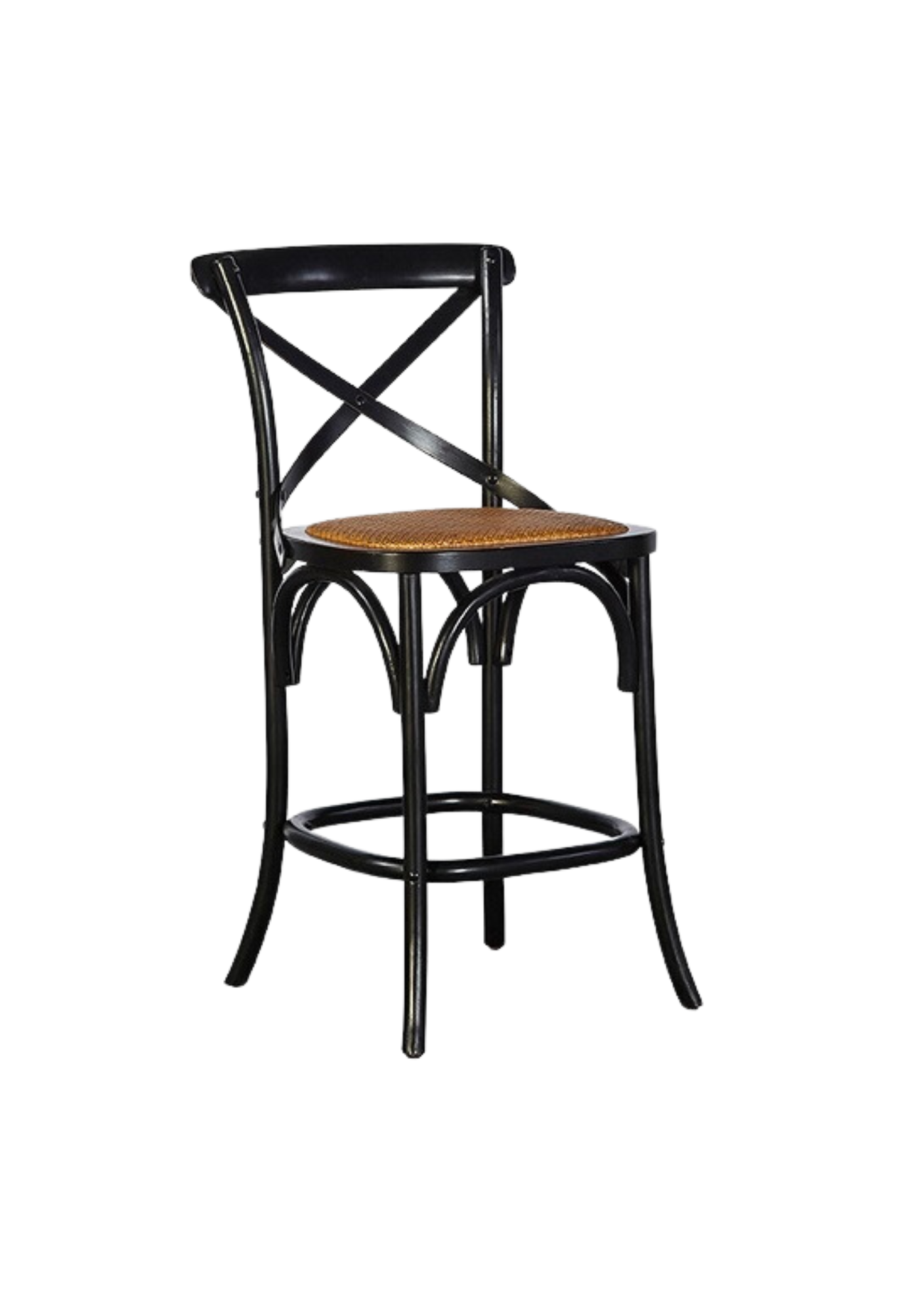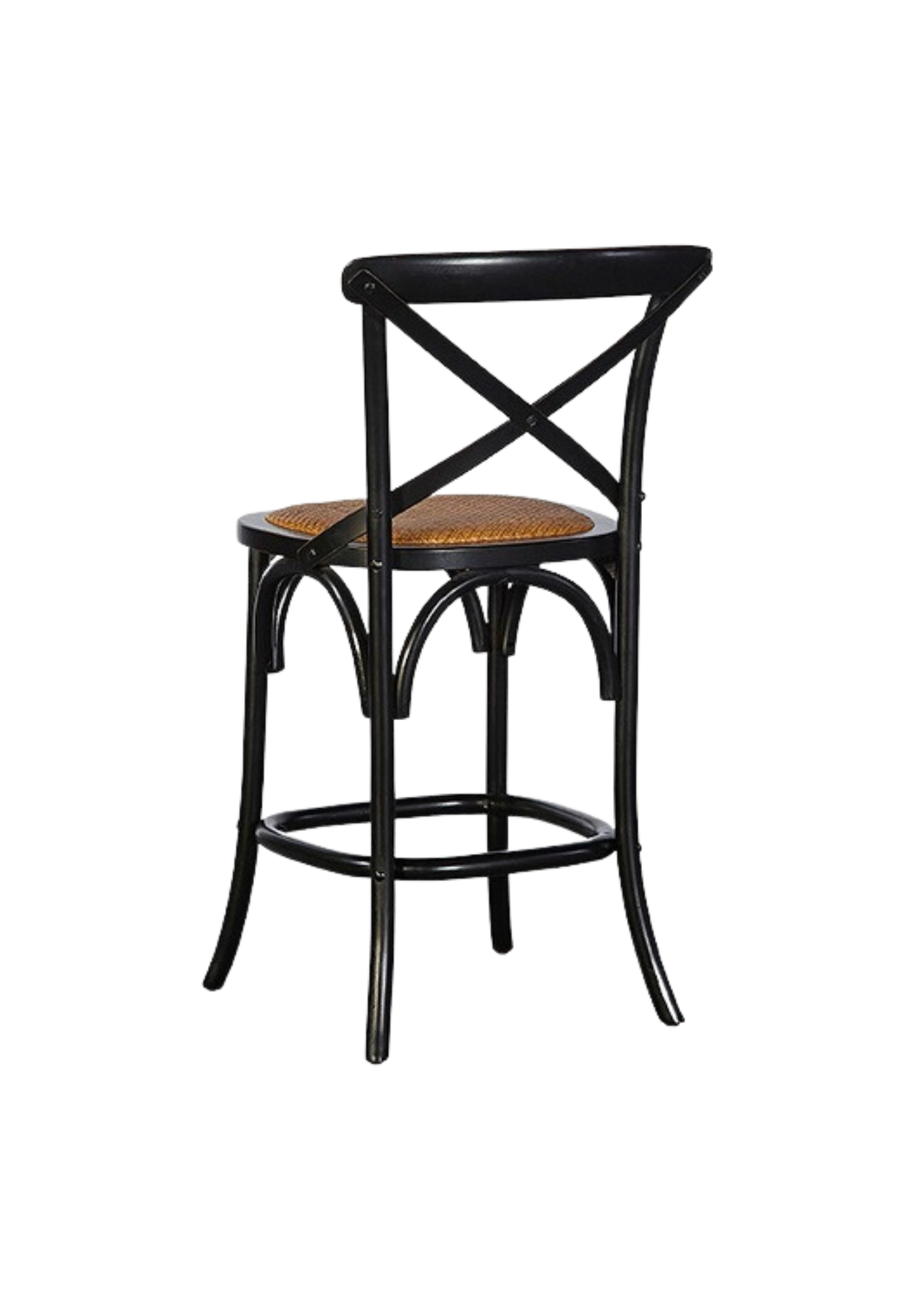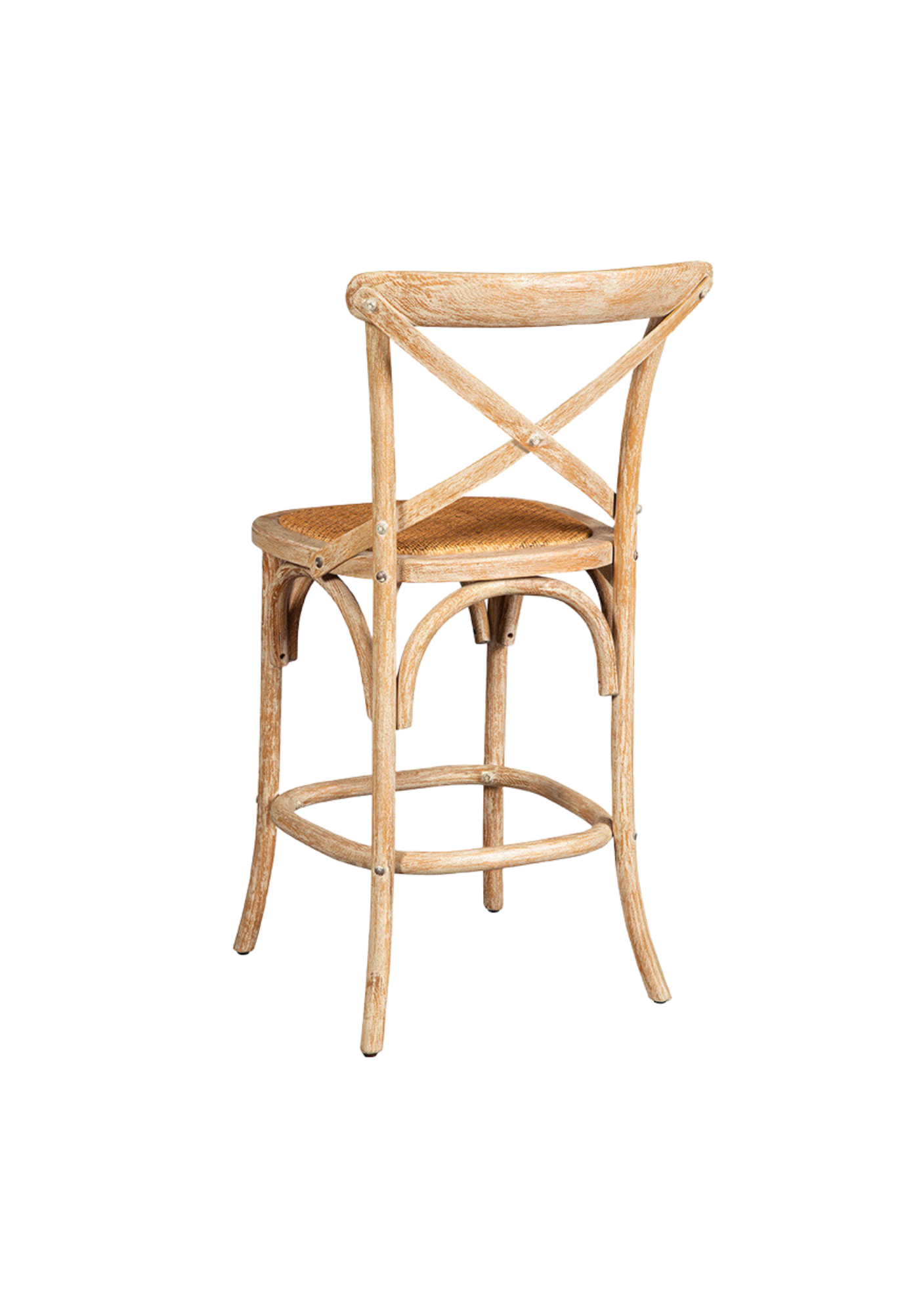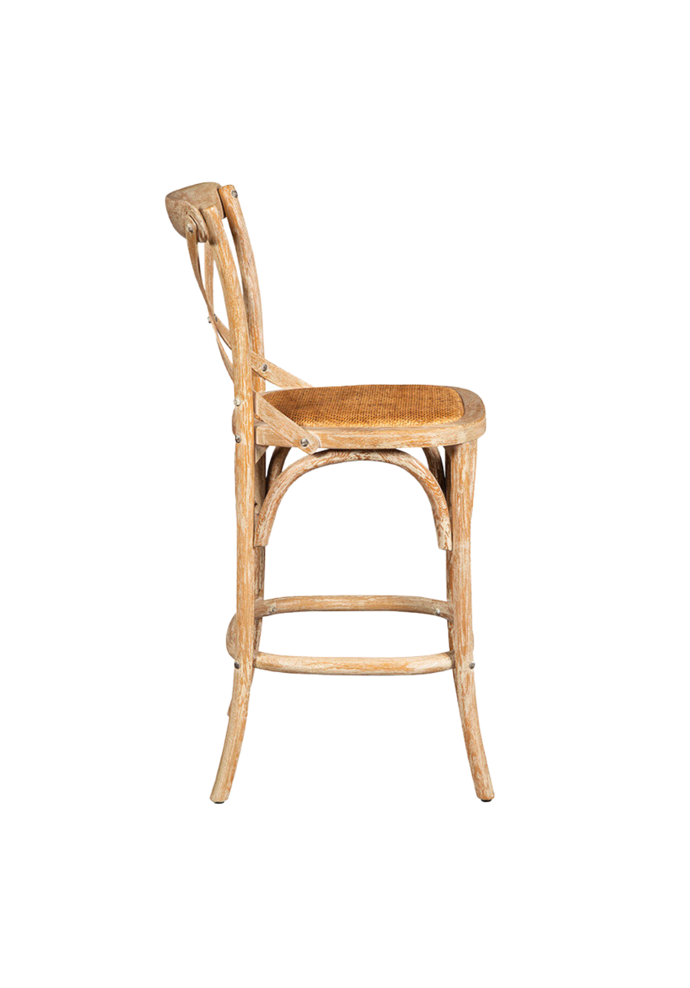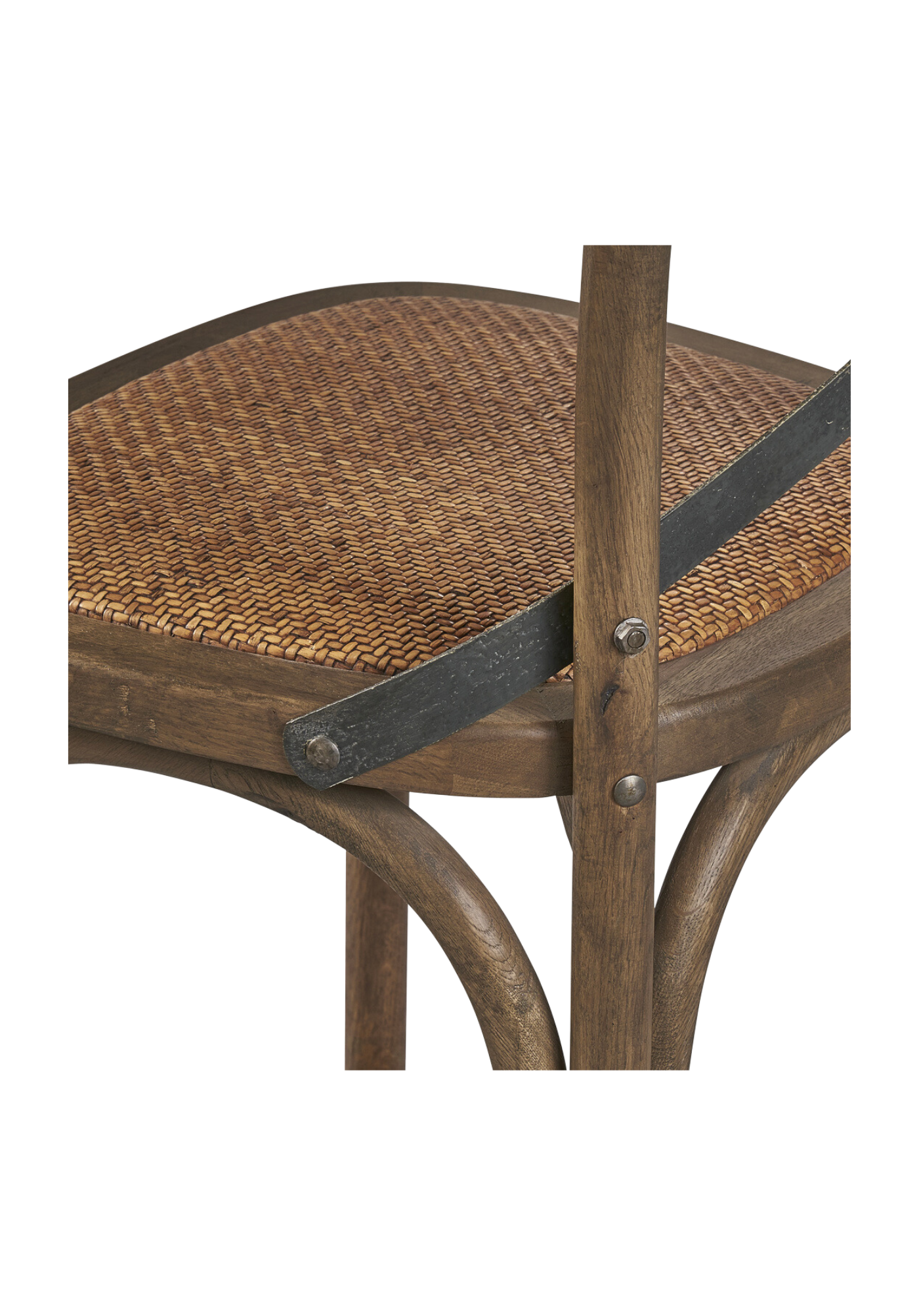 This solid oak counter stool is the perfect accompaniment to your kitchen island, offering an inviting and comfortable seat for your family when they come home from school for snacks or homework. The steam-bent framework offers sturdy, reliable support, while the banana-leaf woven seat is reinforced with a wooden base. Gently curved metal cross bracing adds a stylish touch and additional strength.