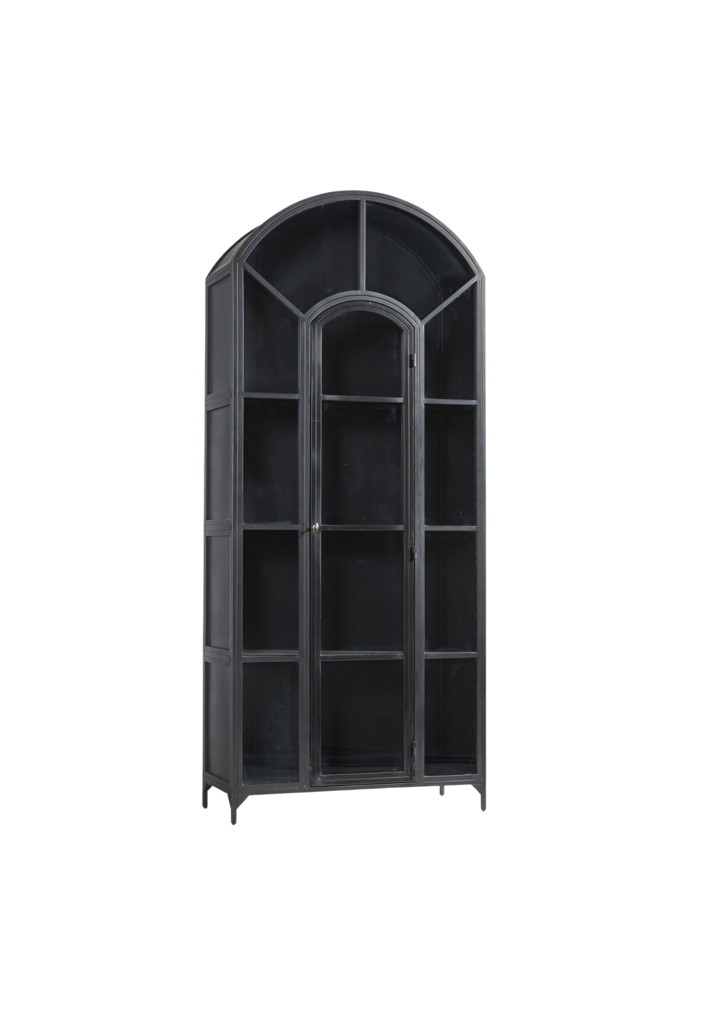 You don't need to be a fan of metal music to instantly adore this stunning arched display cabinet. Crafted from metal and glass, it's a design statement that puts the spotlight on the eye-catching center door, which provides convenient access to the beautiful display space inside. On its own, this handsome cabinet is remarkable; but two flanking a fireplace or doorway will take your breath away.