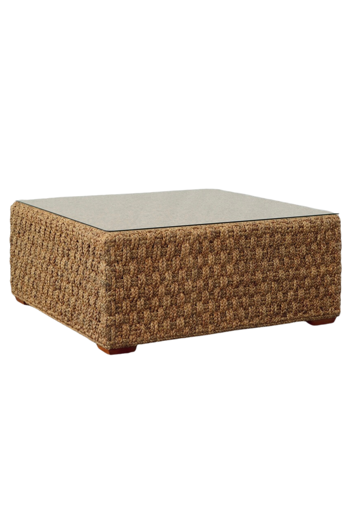 Crafted with an eye for convenience, this captivating table features a robust Mahogany frame wrapped in a wicker weave of banana leaf. Its tempered glass top offers a secure hold for a cup of coffee or a puzzle.