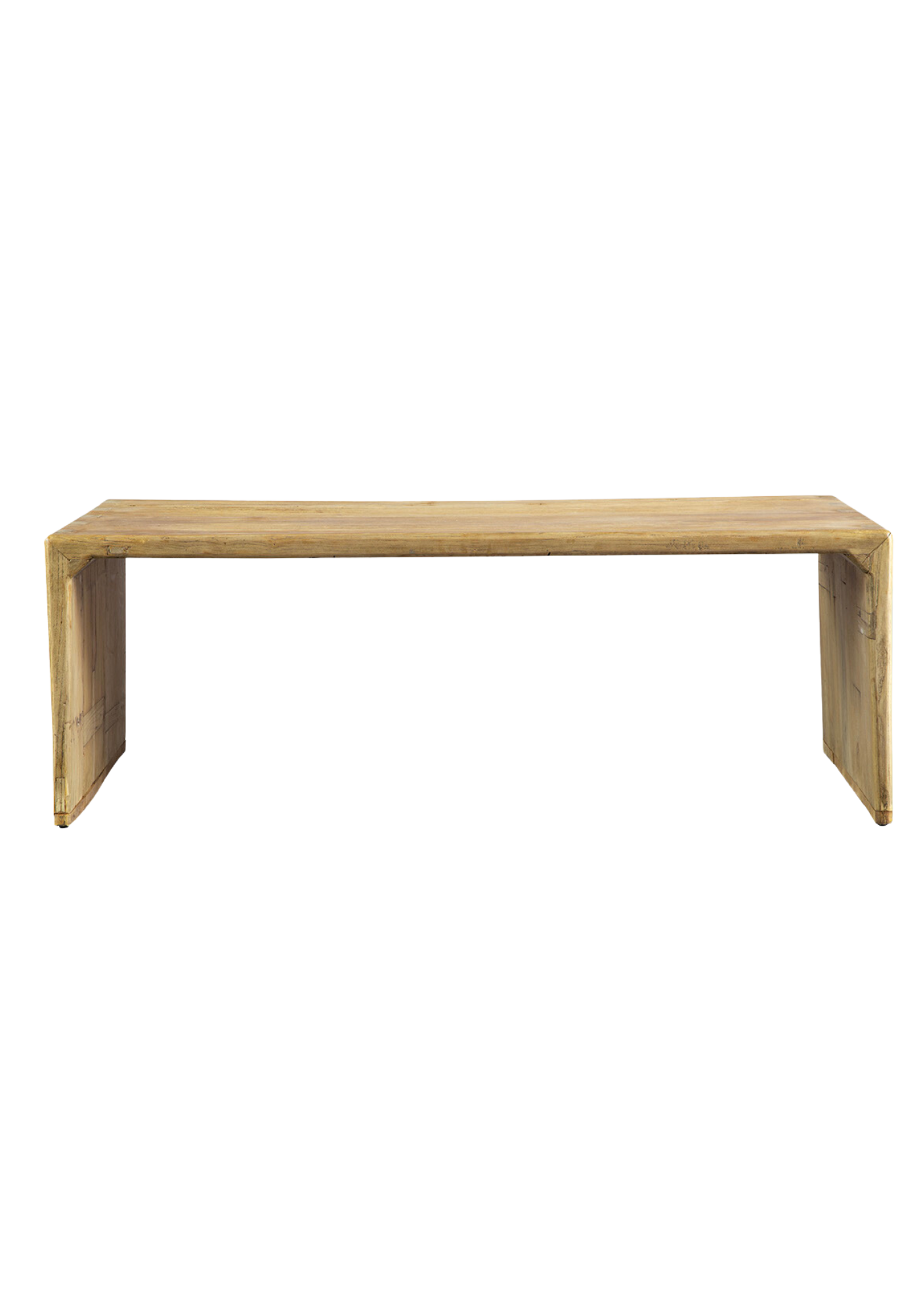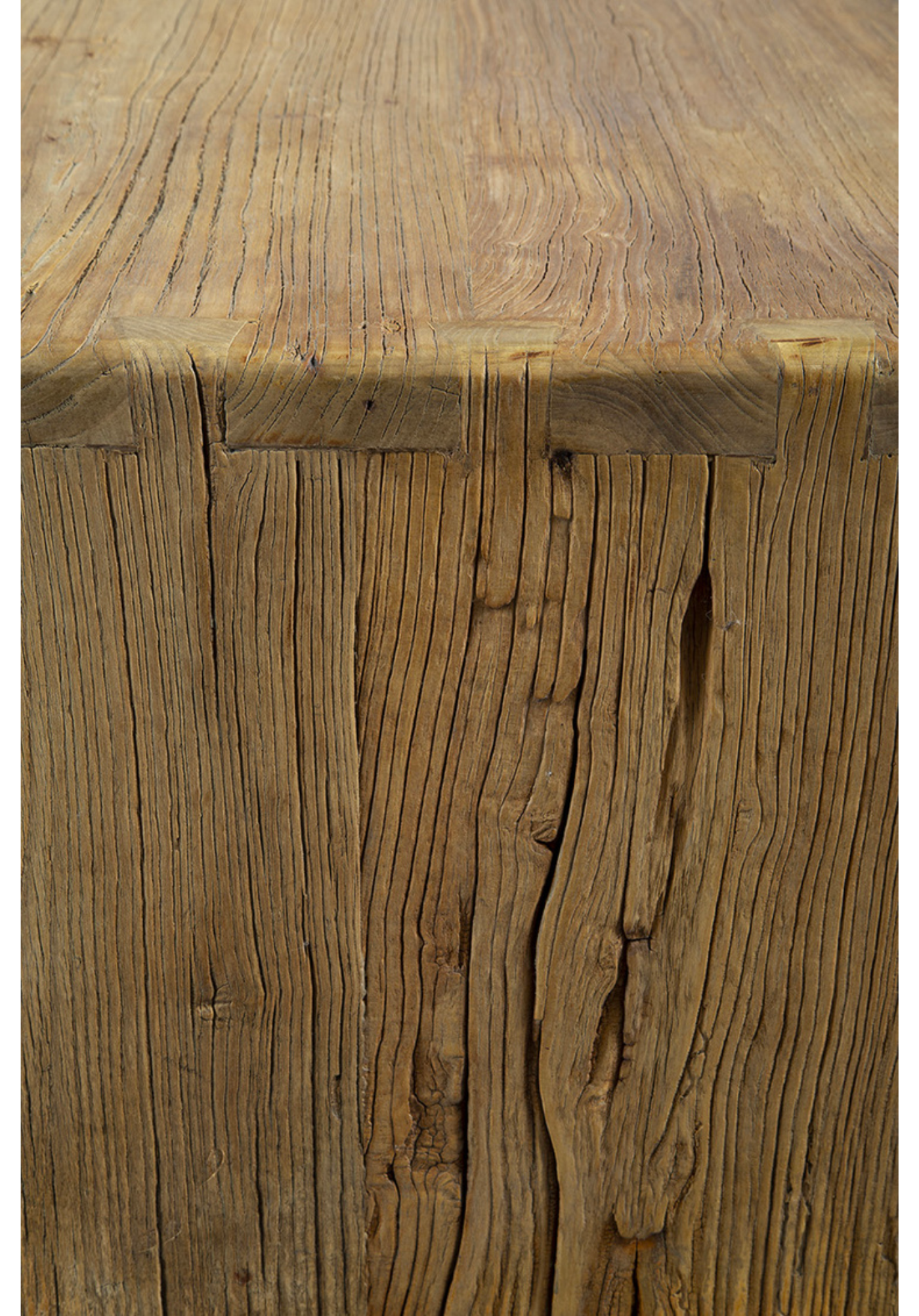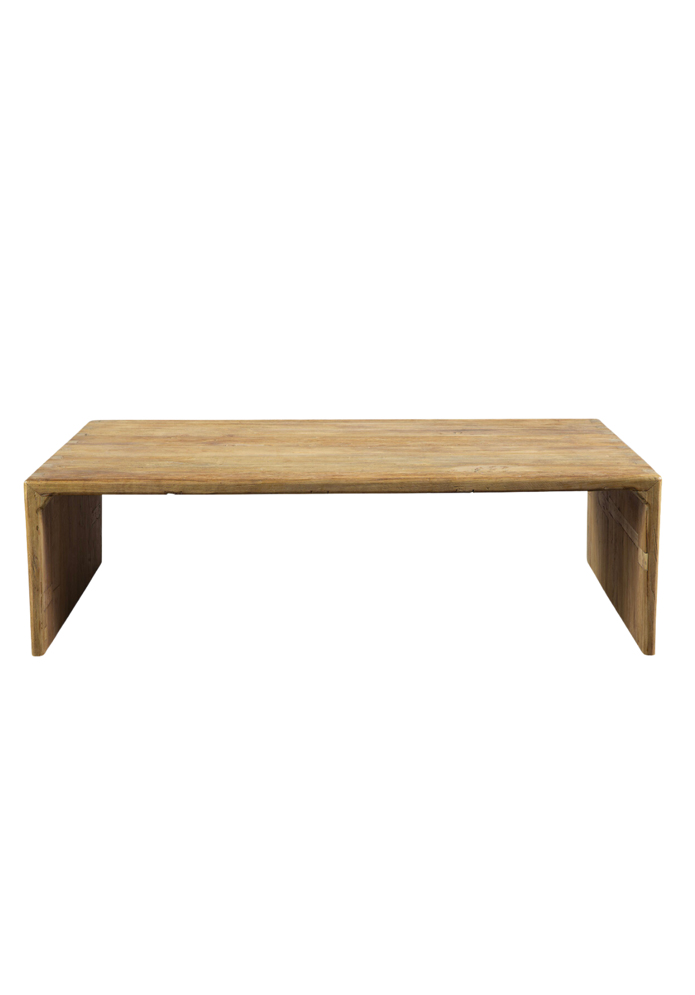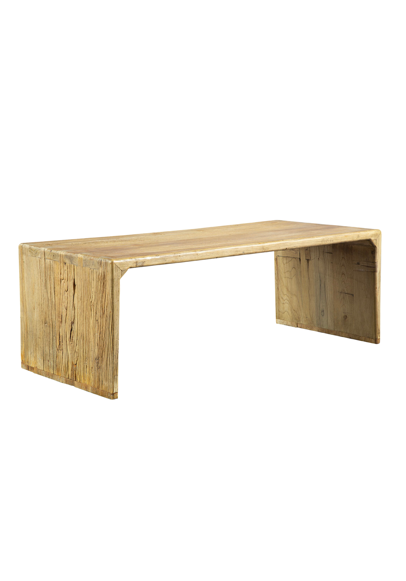 This illustrious solid elm table impresses with its grandly-scaled design and swoon-worthy dovetail joinery on the waterfall ends. Nestle the smaller table for a regal look when friends or family come together on a sectional sofa. Drinks are now within arm's reach and spills can be wiped clean easily thanks to the clear coat finish.