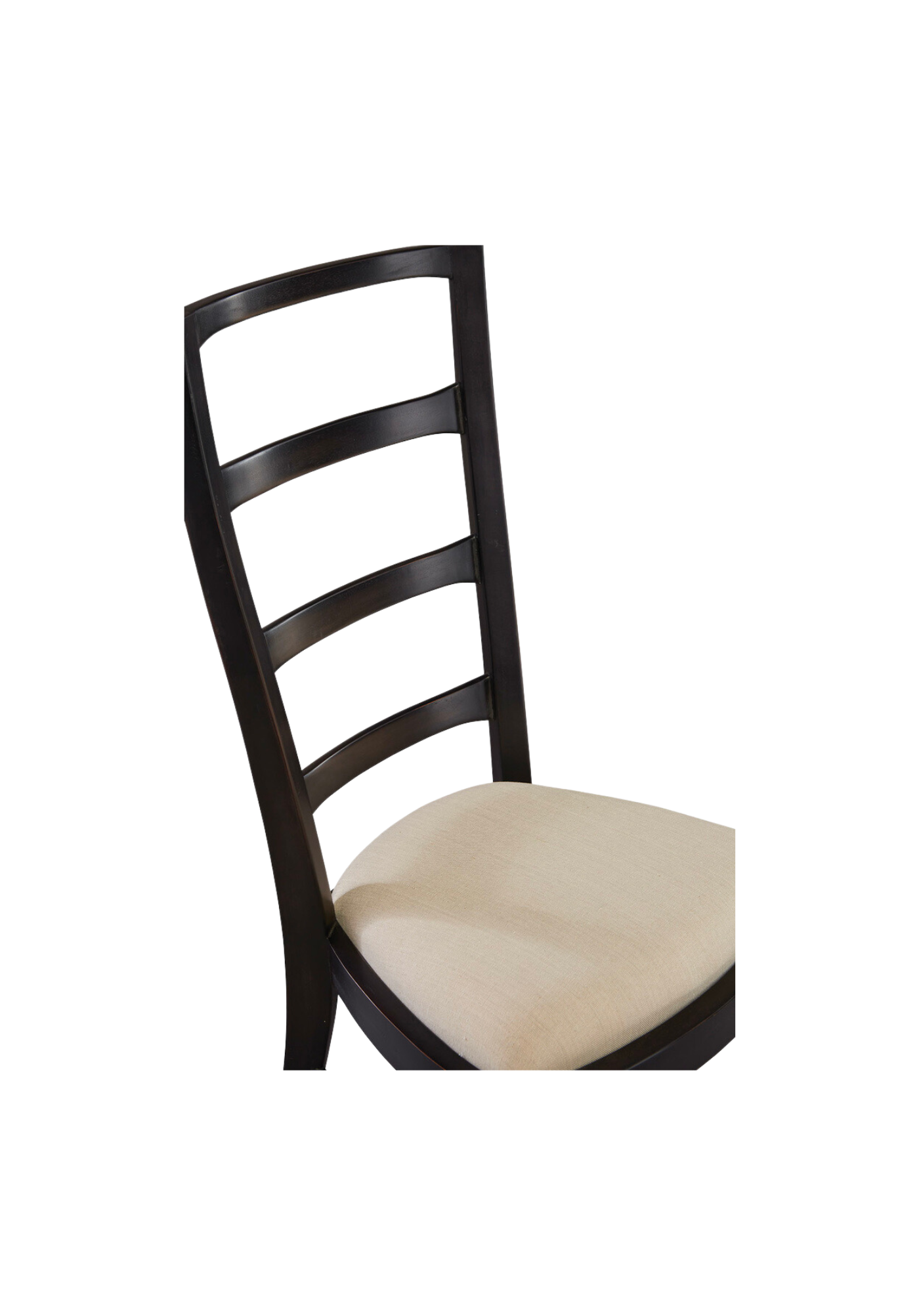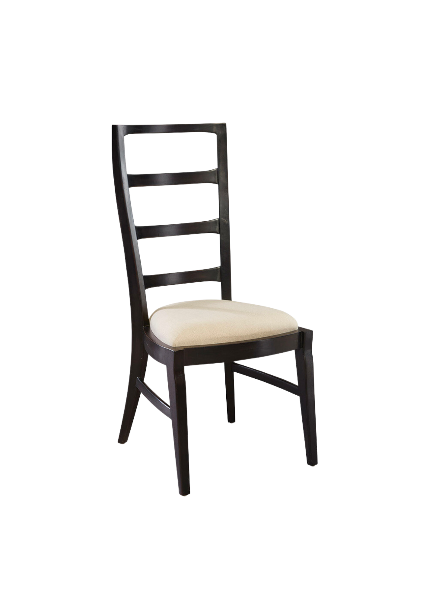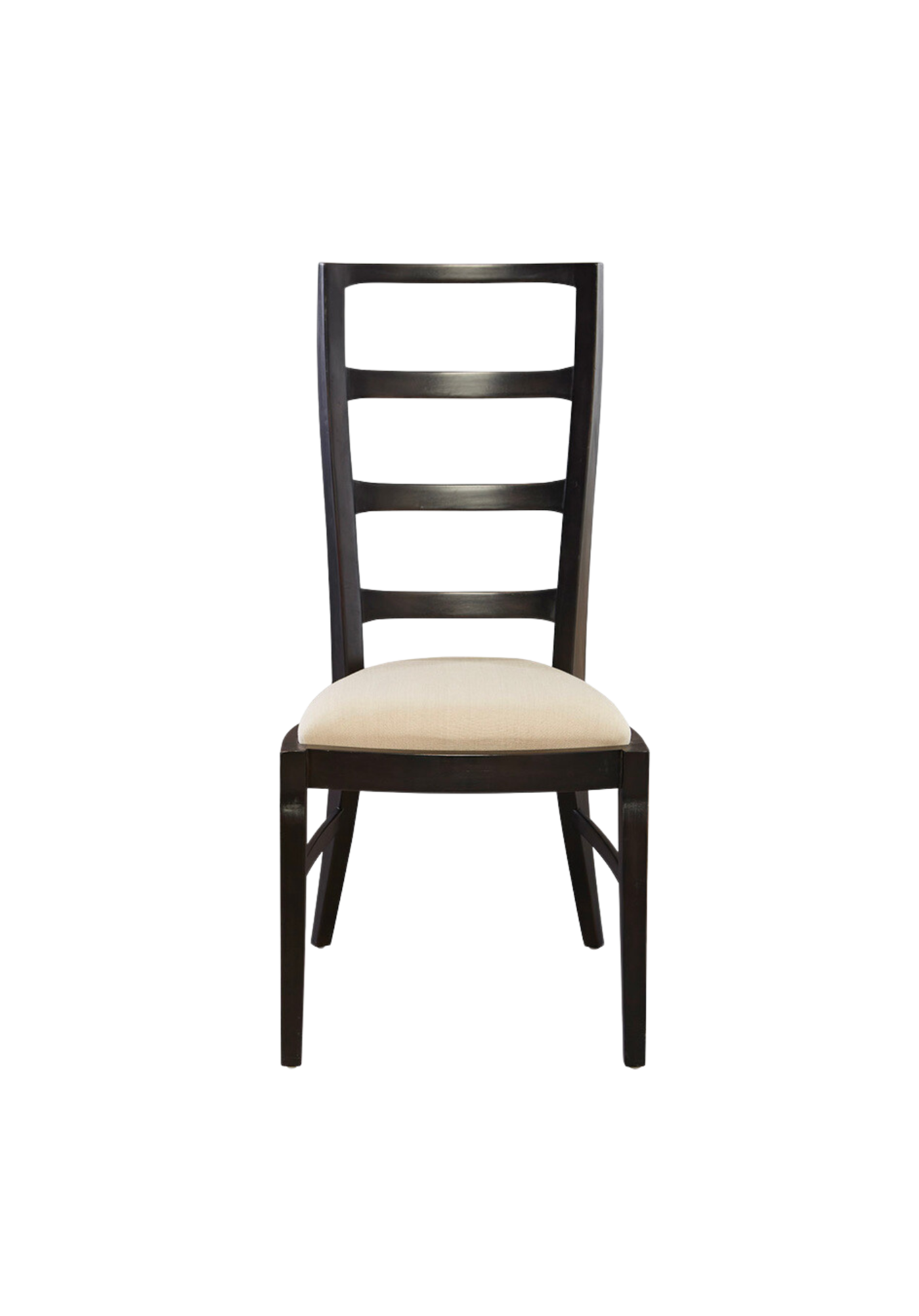 A fresh take on the classic ladderback chair, this stunning selection for your dining area skyrockets to new heights. With a sleek black finish and a handy drop-in seat, it's a rustic yet stylish seat.