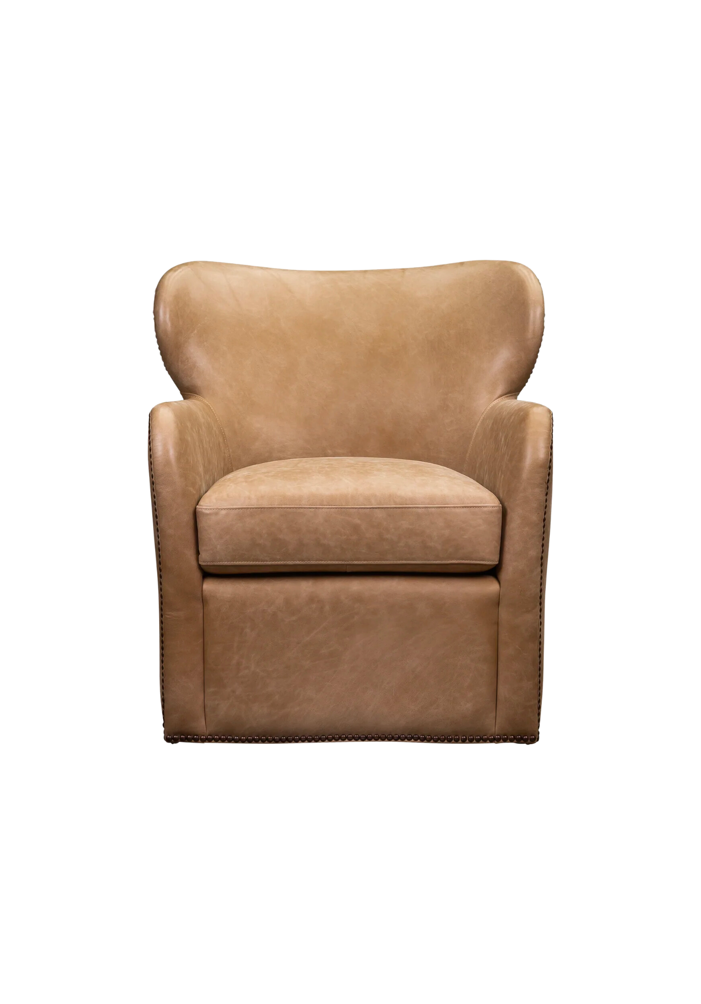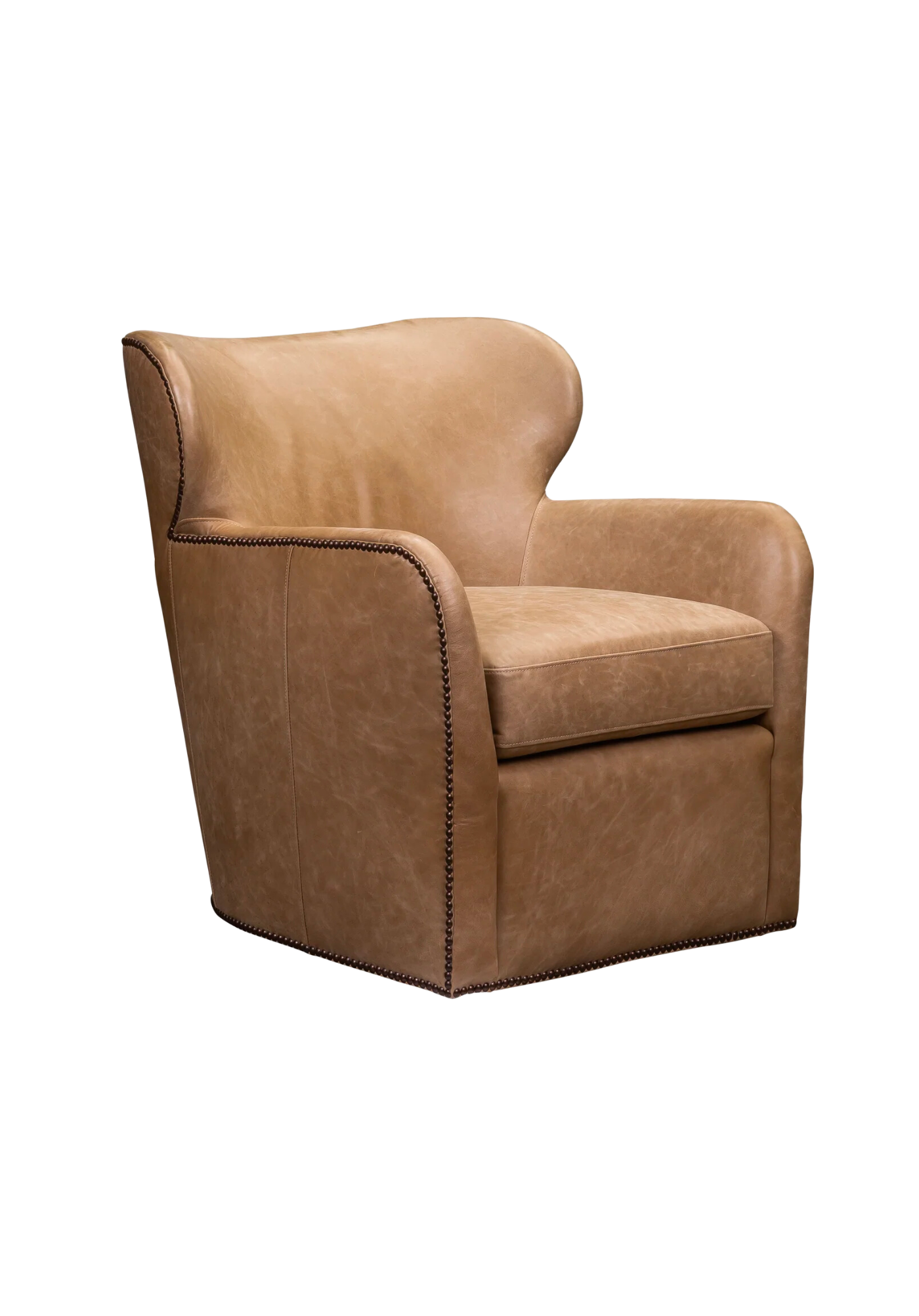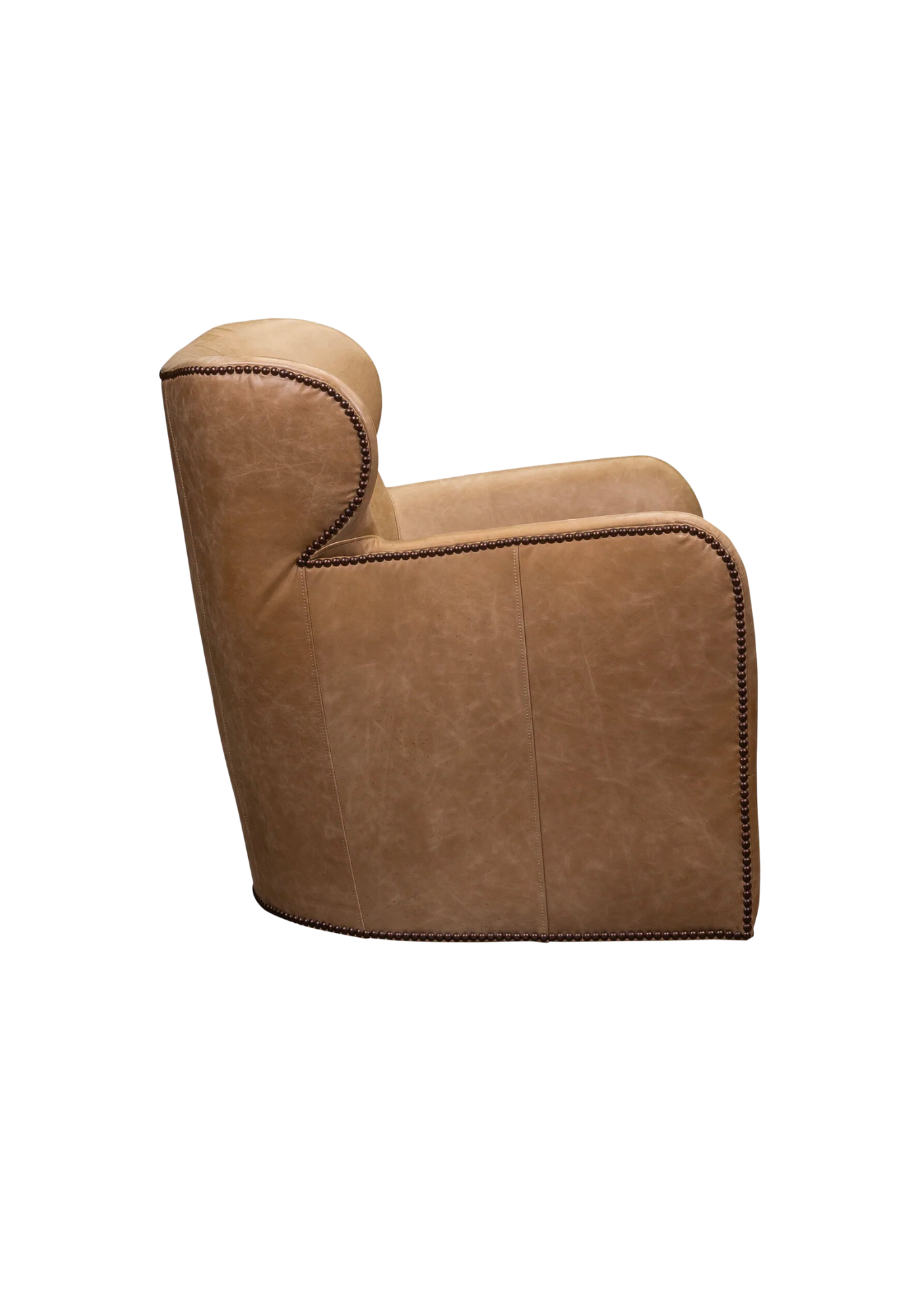 The Canute Chair combines style and comfort into the perfect statement piece. Crafted from luxurious all-leather upholstery, it features a swivel design and nail trim for an eye-catching look that will endure for years.