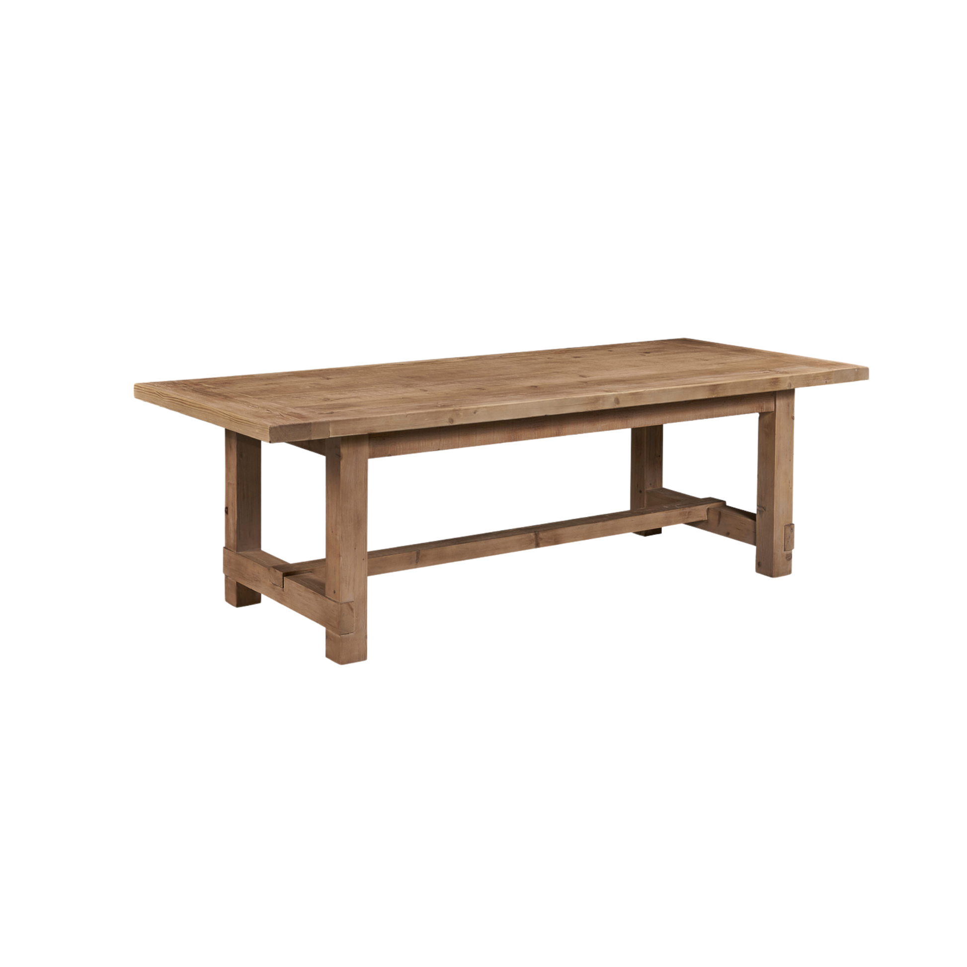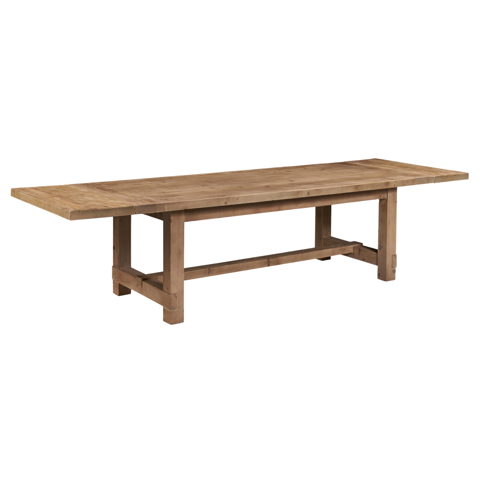 This one-of-a-kind table has mortise and tenon joinery on the trestle base and a bread board top that expands by sliding its extension leaves into place. No matter the splits and shifts, it'll always offer a unique and stunning look.