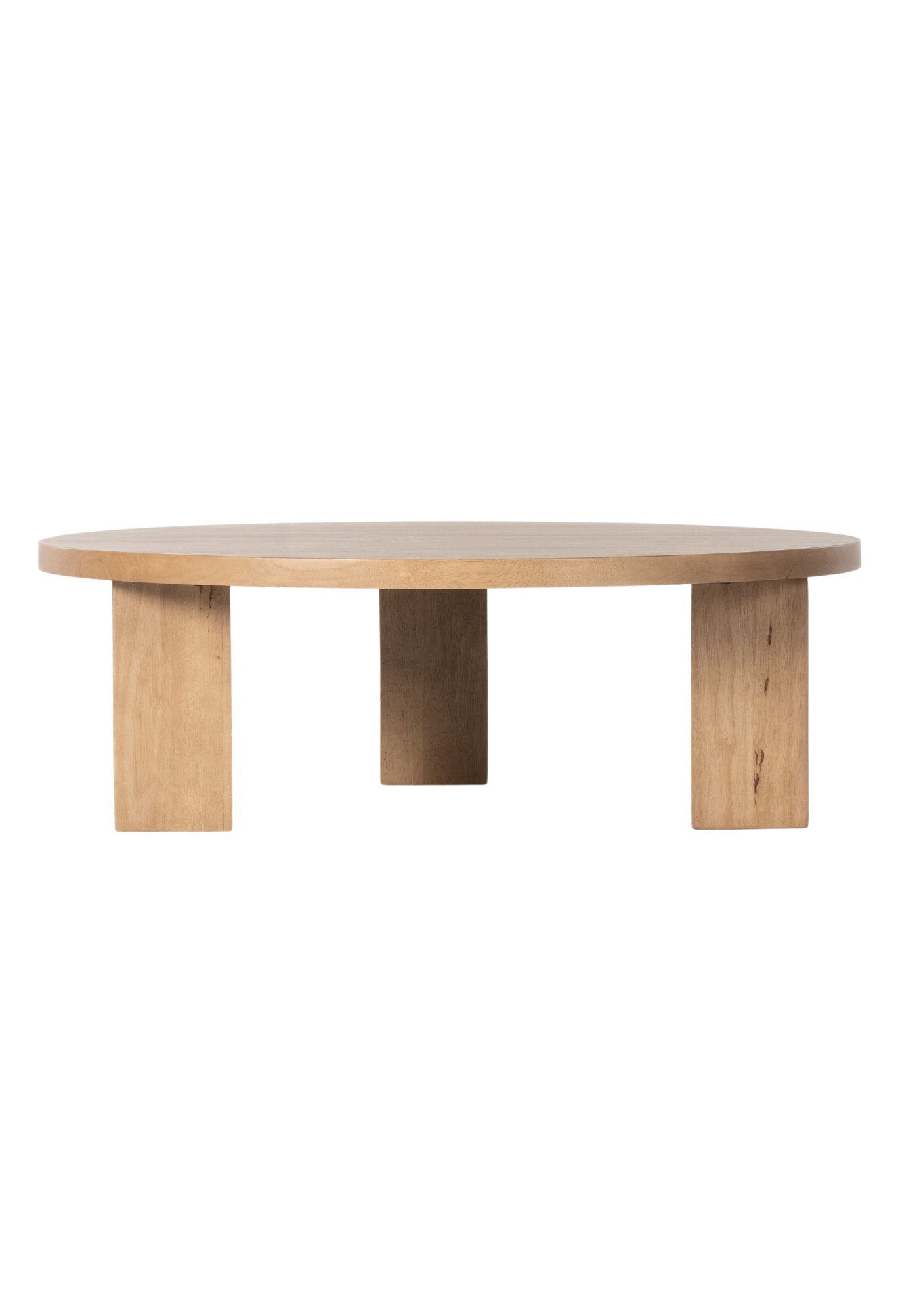 Crafted with elegance in mind, this round coffee table boasts a radiant light wood finish that exudes warmth and sophistication. Its smooth polished surface invited gatherings around its perfectly rounded edges. Its design perfectly complements any modern or contemporary decor.