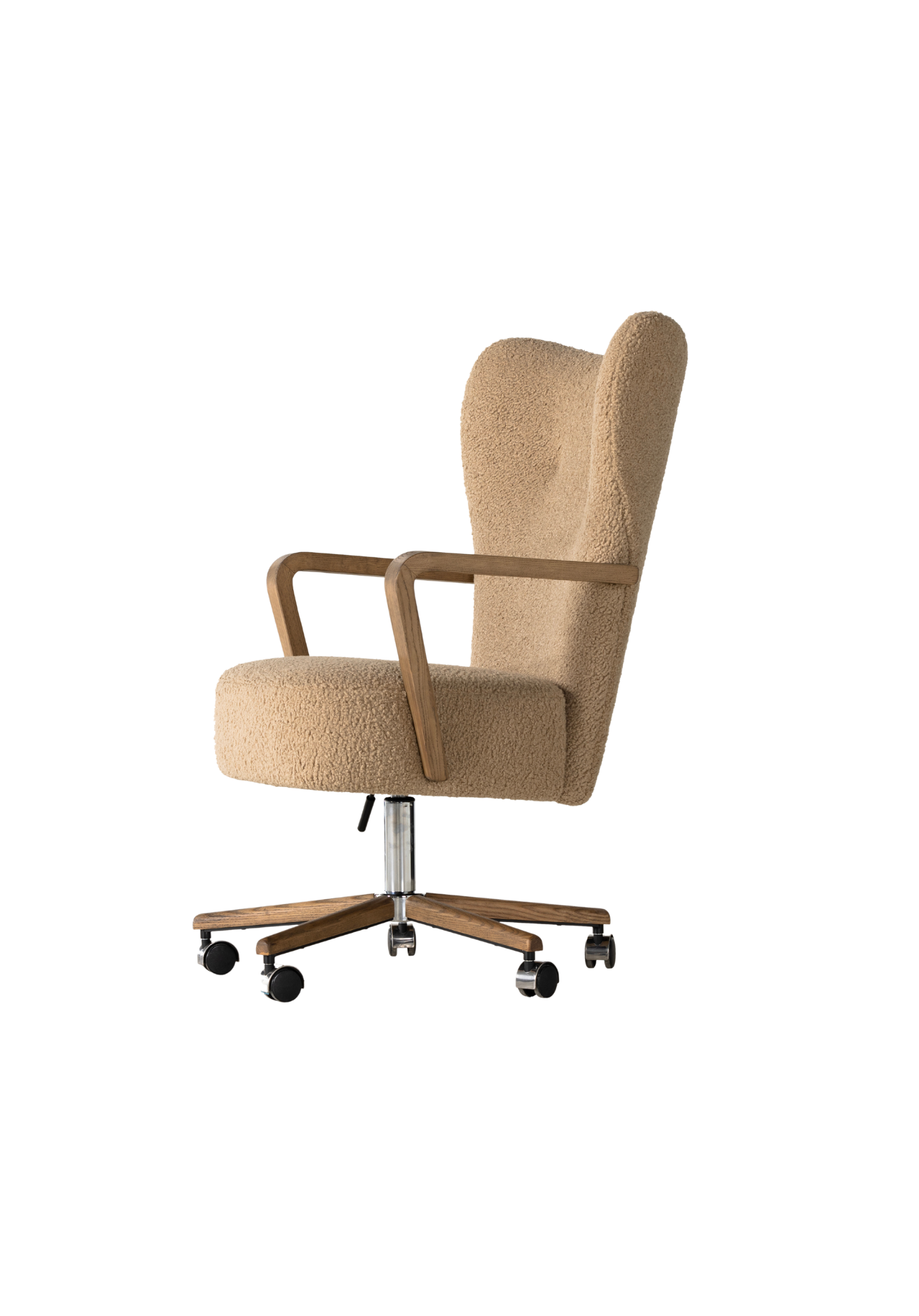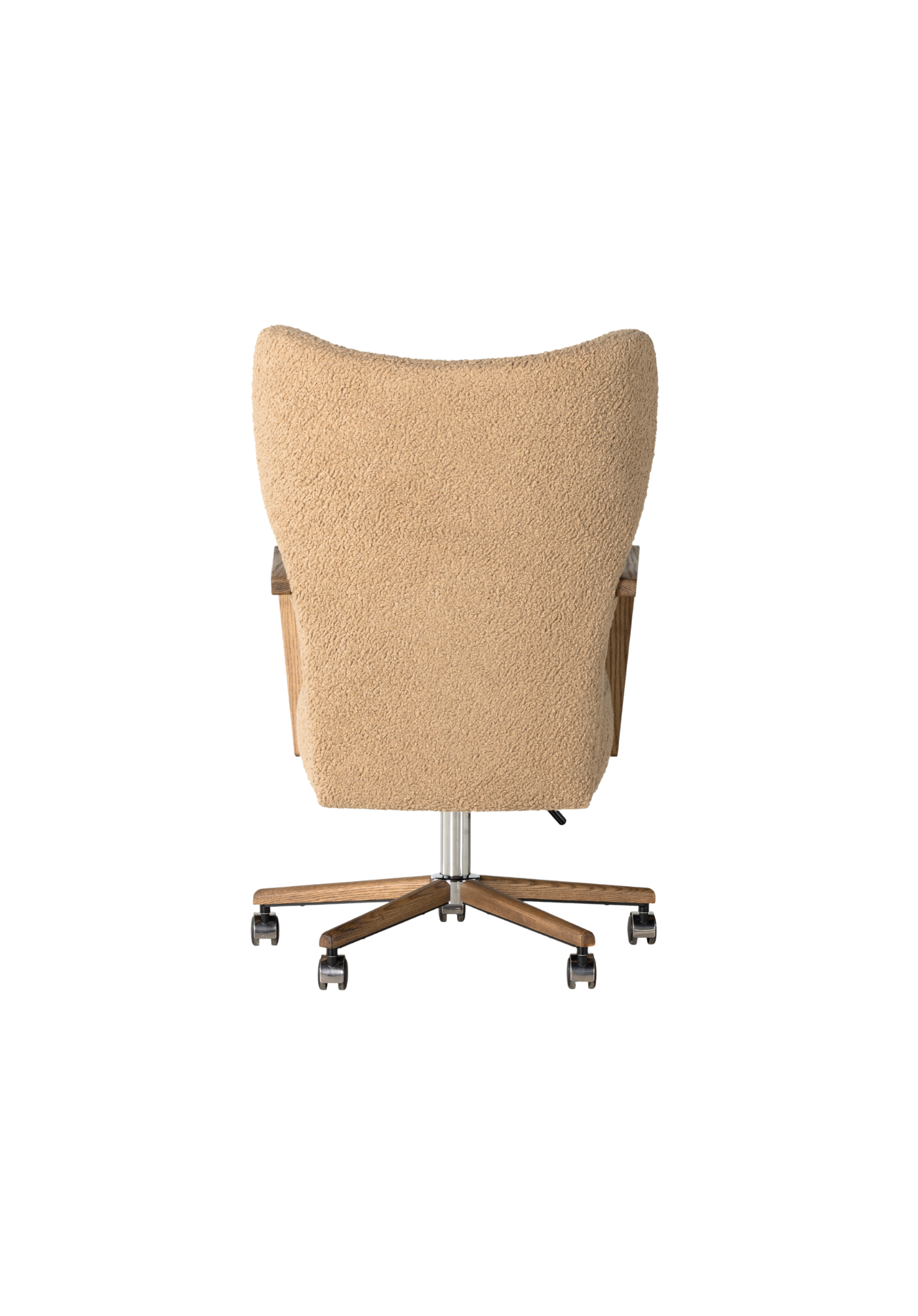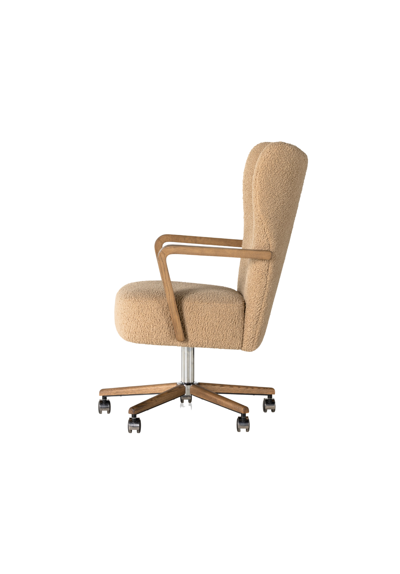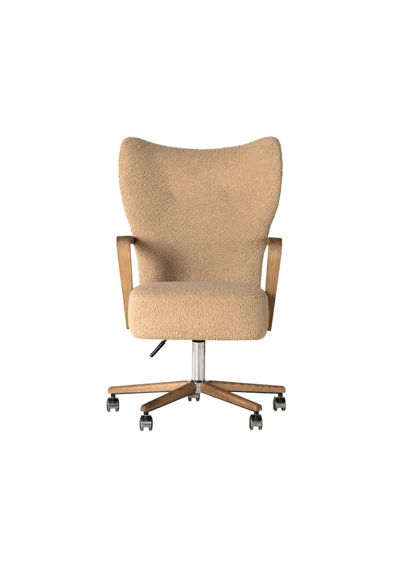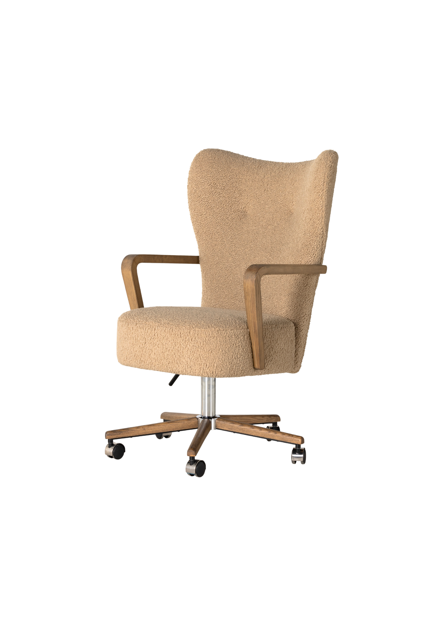 The Emma Desk Chair is the perfect combination of comfort and style. Its soft, textural upholstery in a versatile camel color will make any home office look stylish. An adjustable swivel base with casters provides flexibility to move around with ease in the modern office.