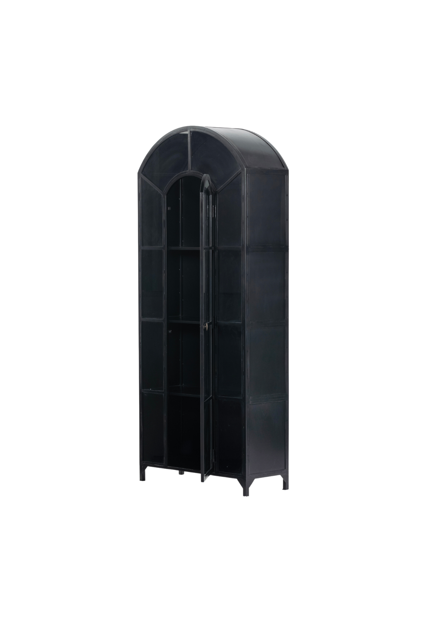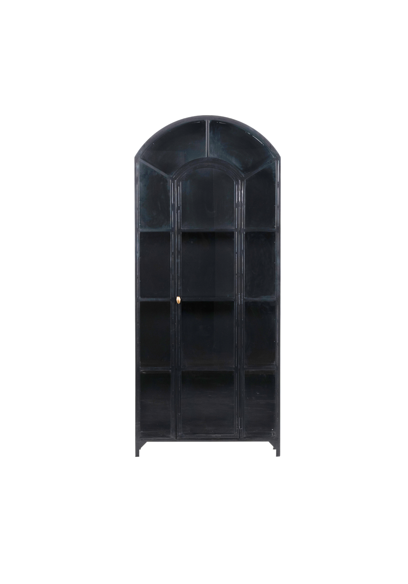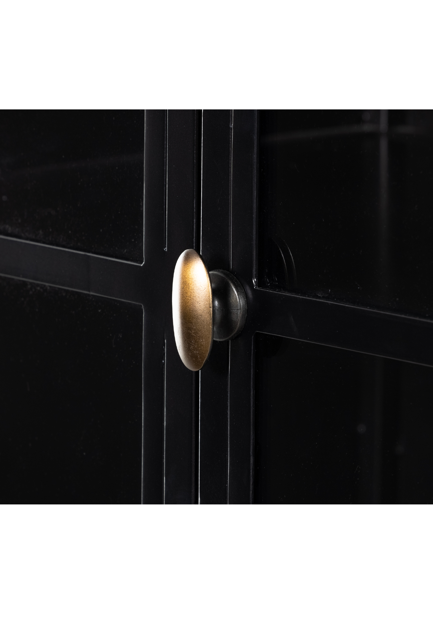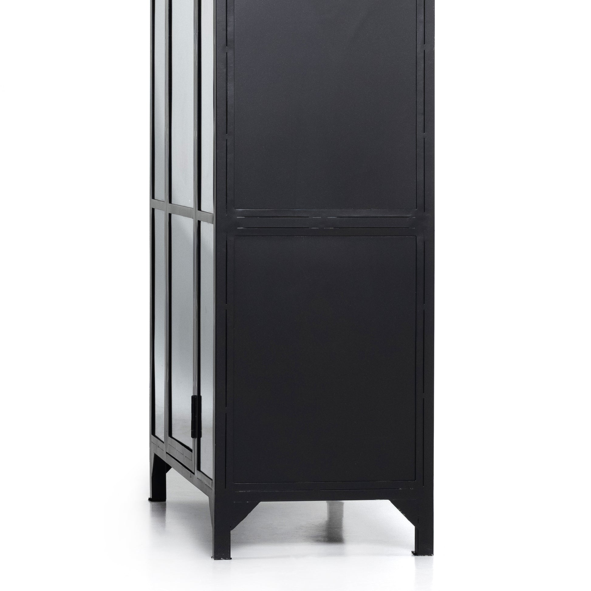 The Ezra Cabinet is the perfect statement piece for any room. Showcase your favorite books, barware, and other valuables through the detailed glass pane door. Built from solid iron and finished in an elegant matte black with contrasting brass hardware, its sophisticated style will transform your home.