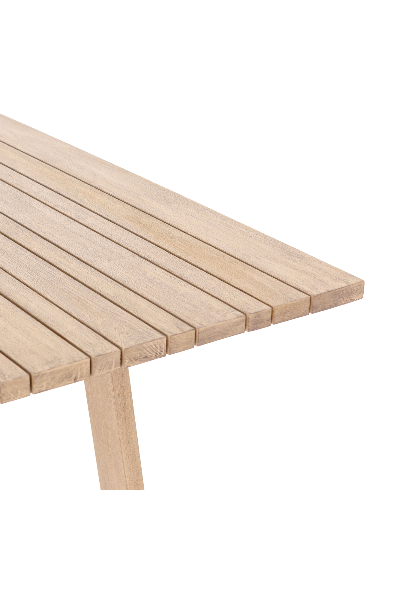 Intrigue your guests with the Giuseppe Outdoor Table. An angular base brings eye-catching style to your outdoor dining area, while beautiful, natural teak planks provide a generous tabletop that is perfect for entertaining.