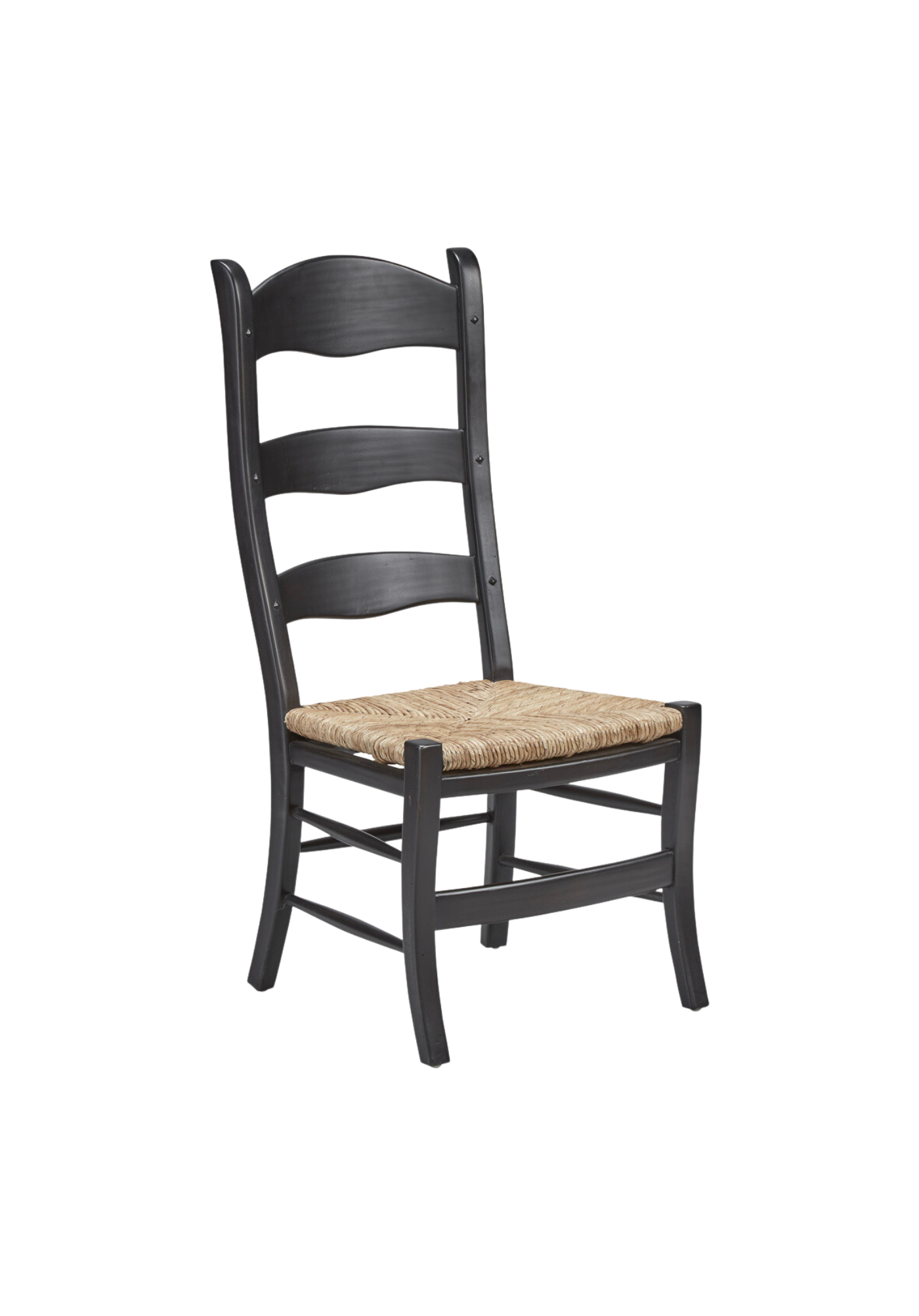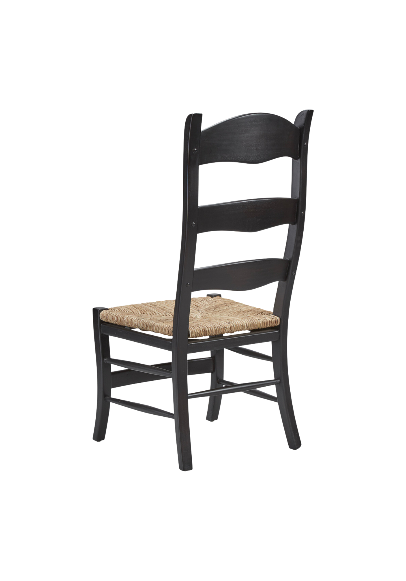 Drawing inspiration from the beloved ladder back chair, this regal piece is designed with sloping legs, a curvaceous back and a glossy black finish. Generously sized and crafted from the finest plantation-grown Mahogany, this chair will bring a touch of sophistication to any setting.