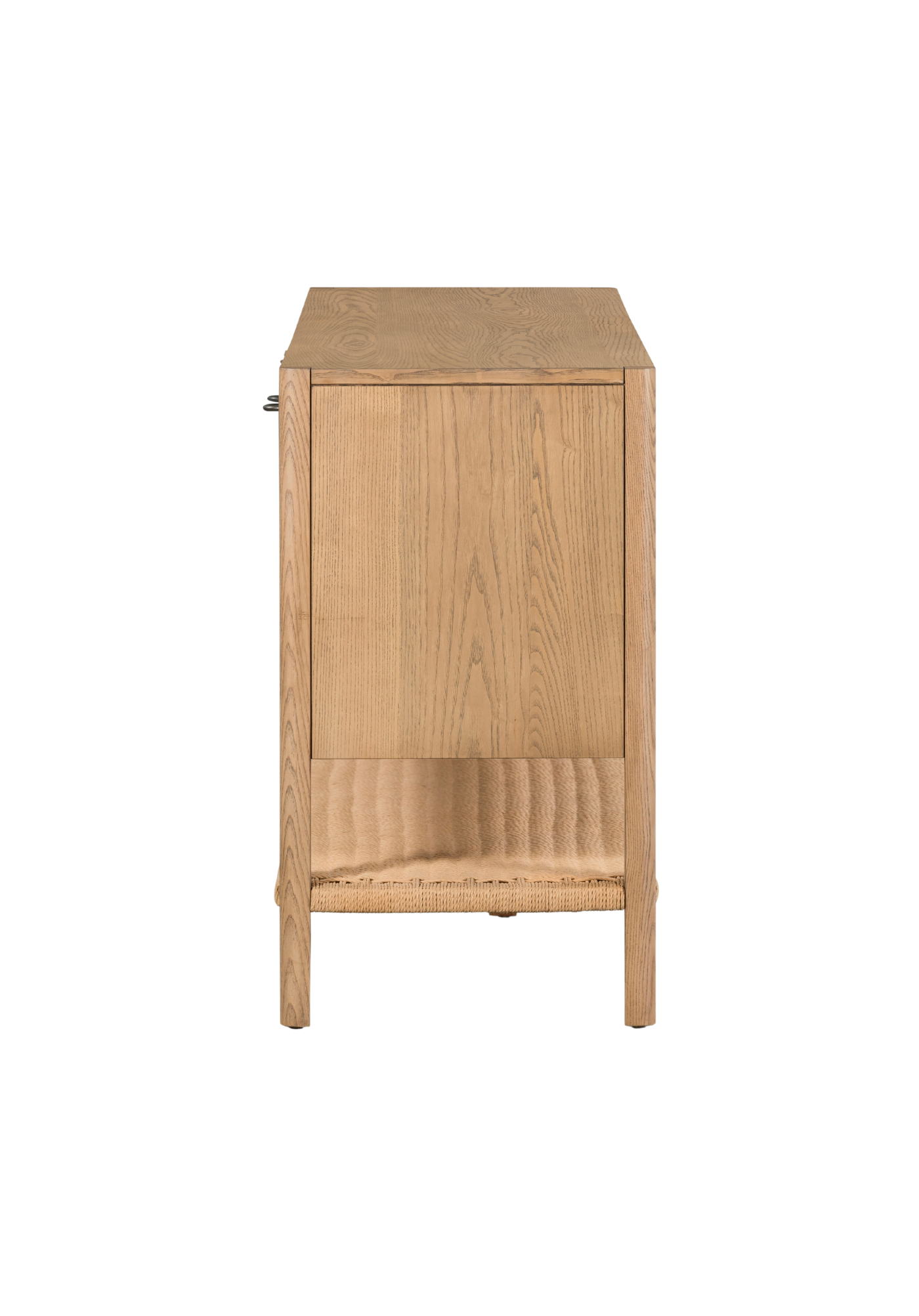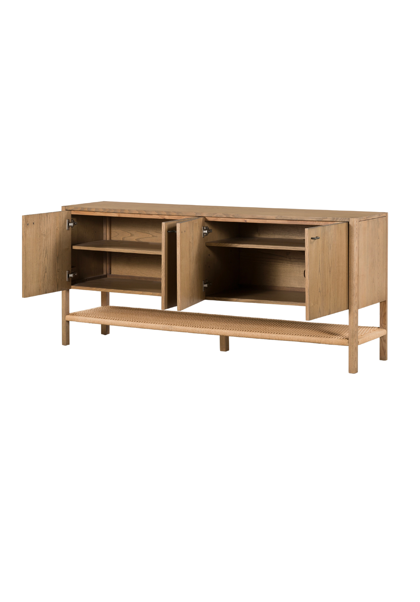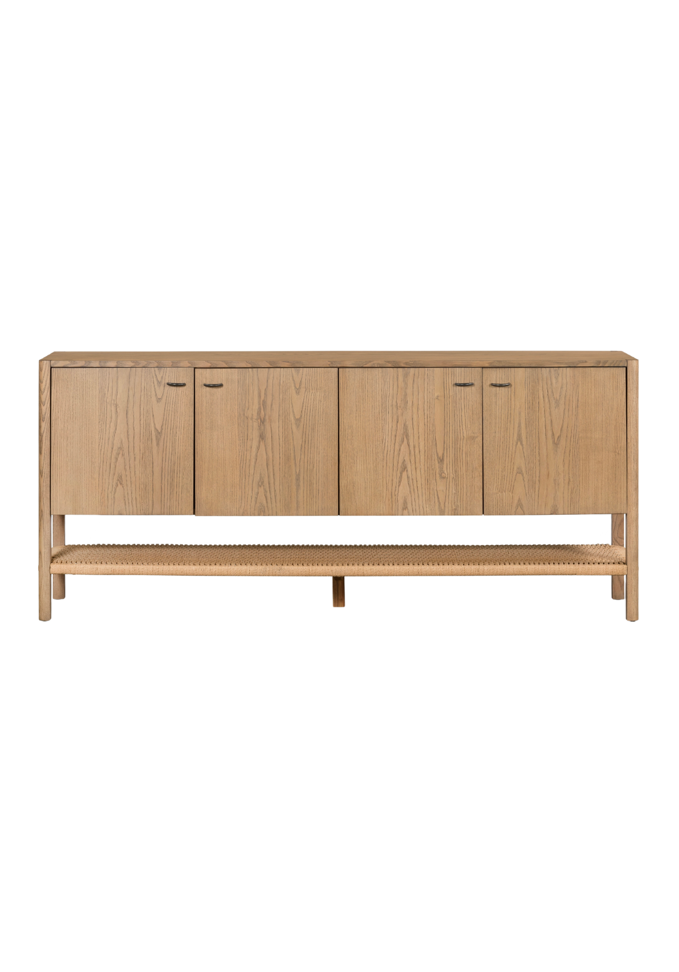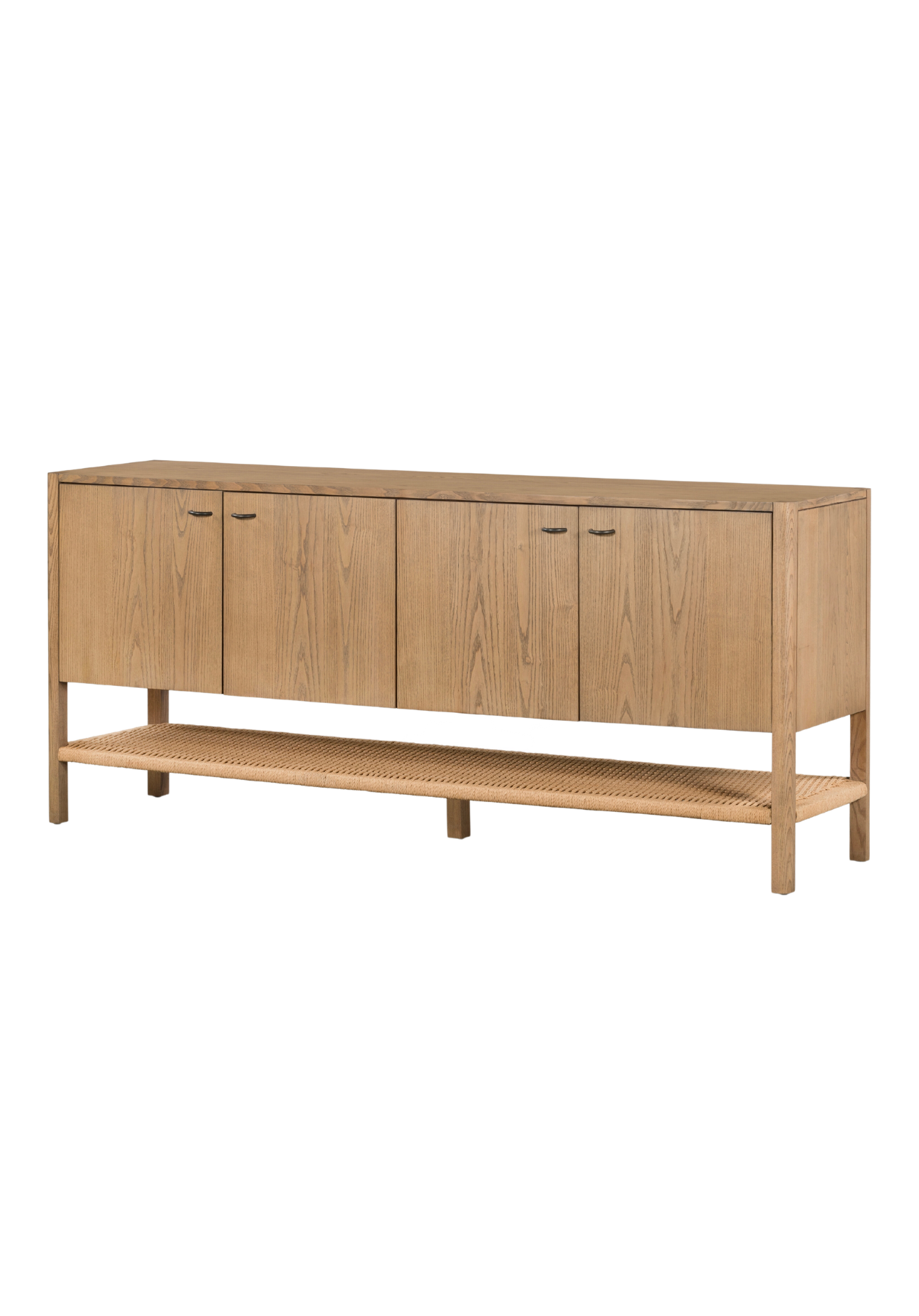 Make a bold statement with the Israel Sideboard. Its eye-catching solid ash construction and gunmetal hardware create a sleek and refined look, while the woven paper cord shelving adds a unique touch of texture.