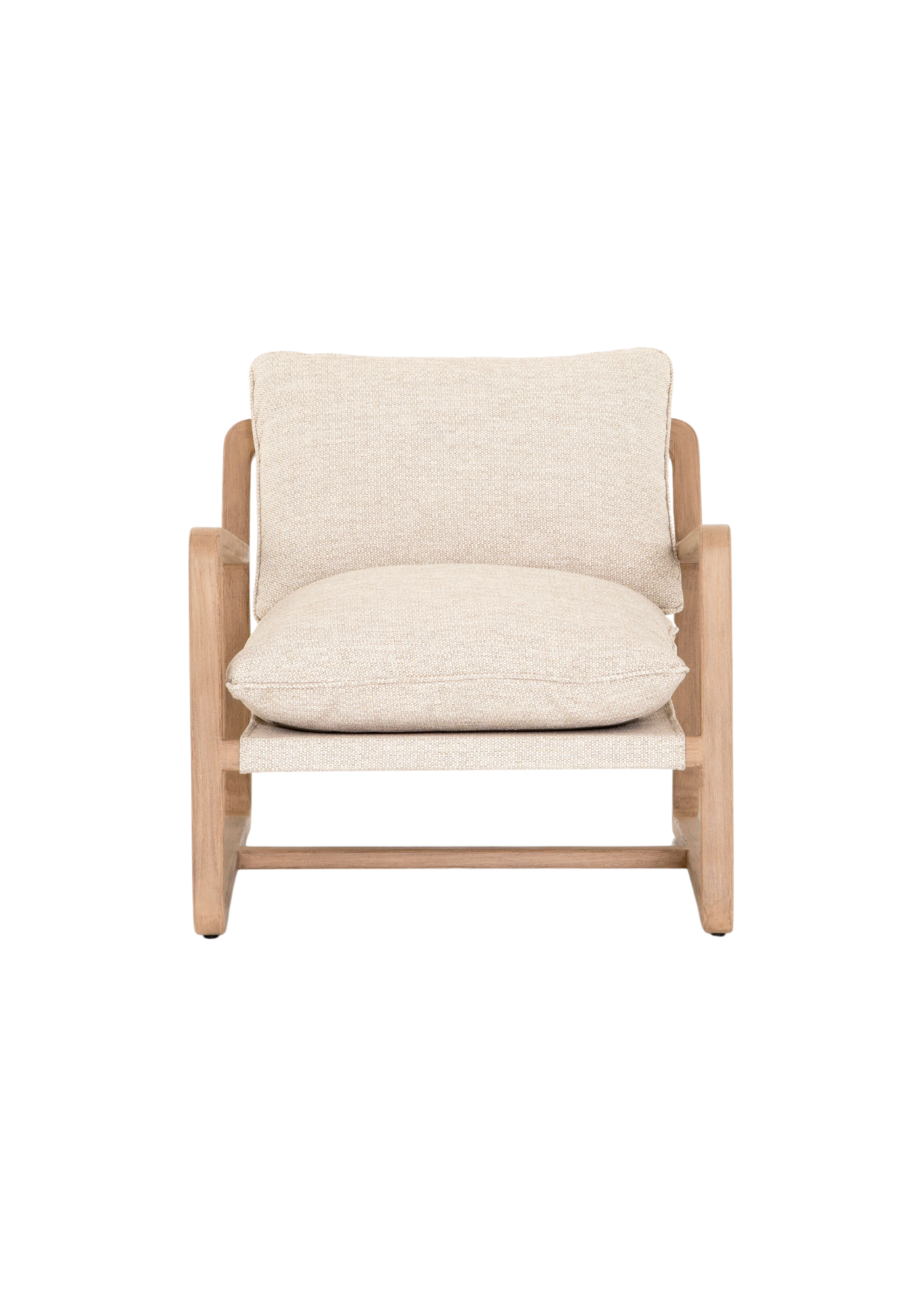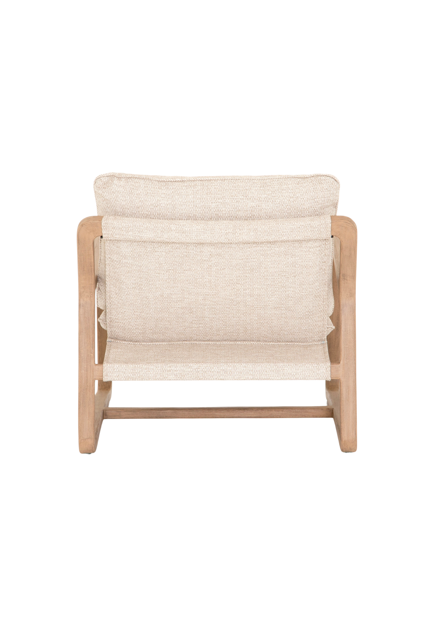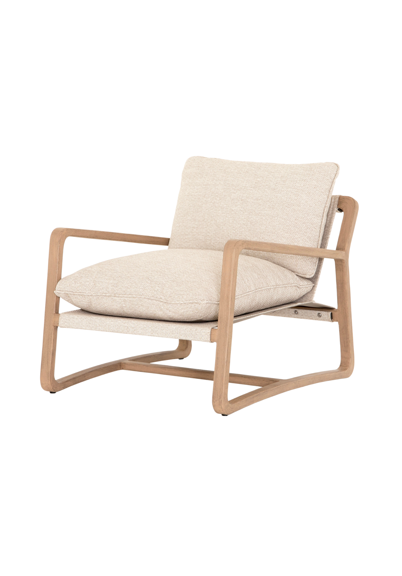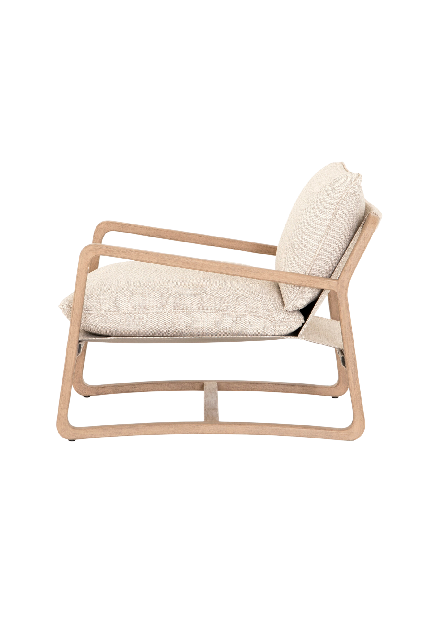 Savor the captivating beauty of the Kalliopi Outdoor Chair. Its brown-finished teak frames, featuring deep, low seating with a neutral beige cover, create an optimal environment for taking in sunrises and sunsets. Plus, it's easy to cover or store during rain or other inclement weather, making it an excellent choice for any season.
