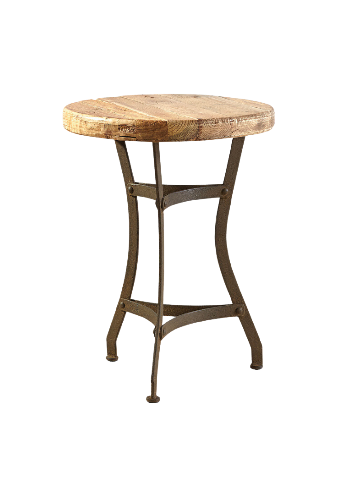 Lettie Side Table boasts a stunning combination of reclaimed pine top and forged iron legs, perfect for invigorating any home decor with a warm, rustic touch.