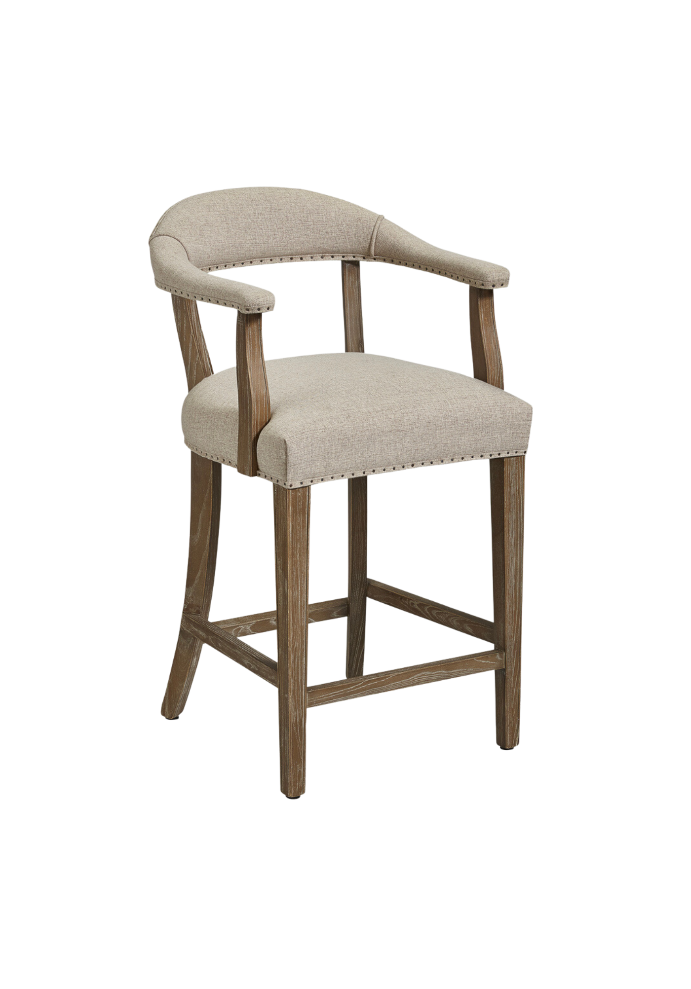 Experience chic comfort with this timeless and must-have counter stool. Perfect for hosting guests or enjoying some solo time, this stool features practical performance linen and elegant nailhead trim.