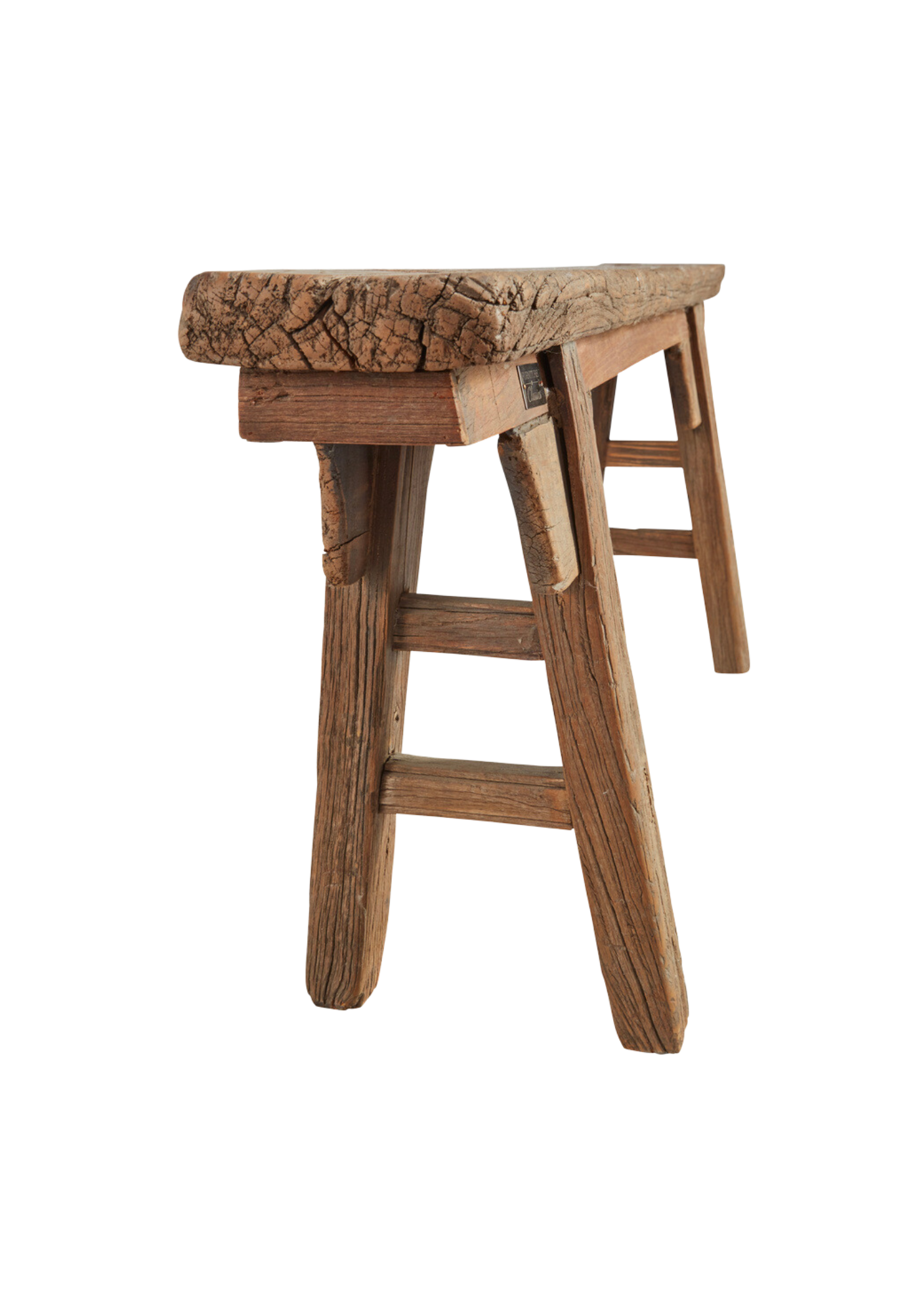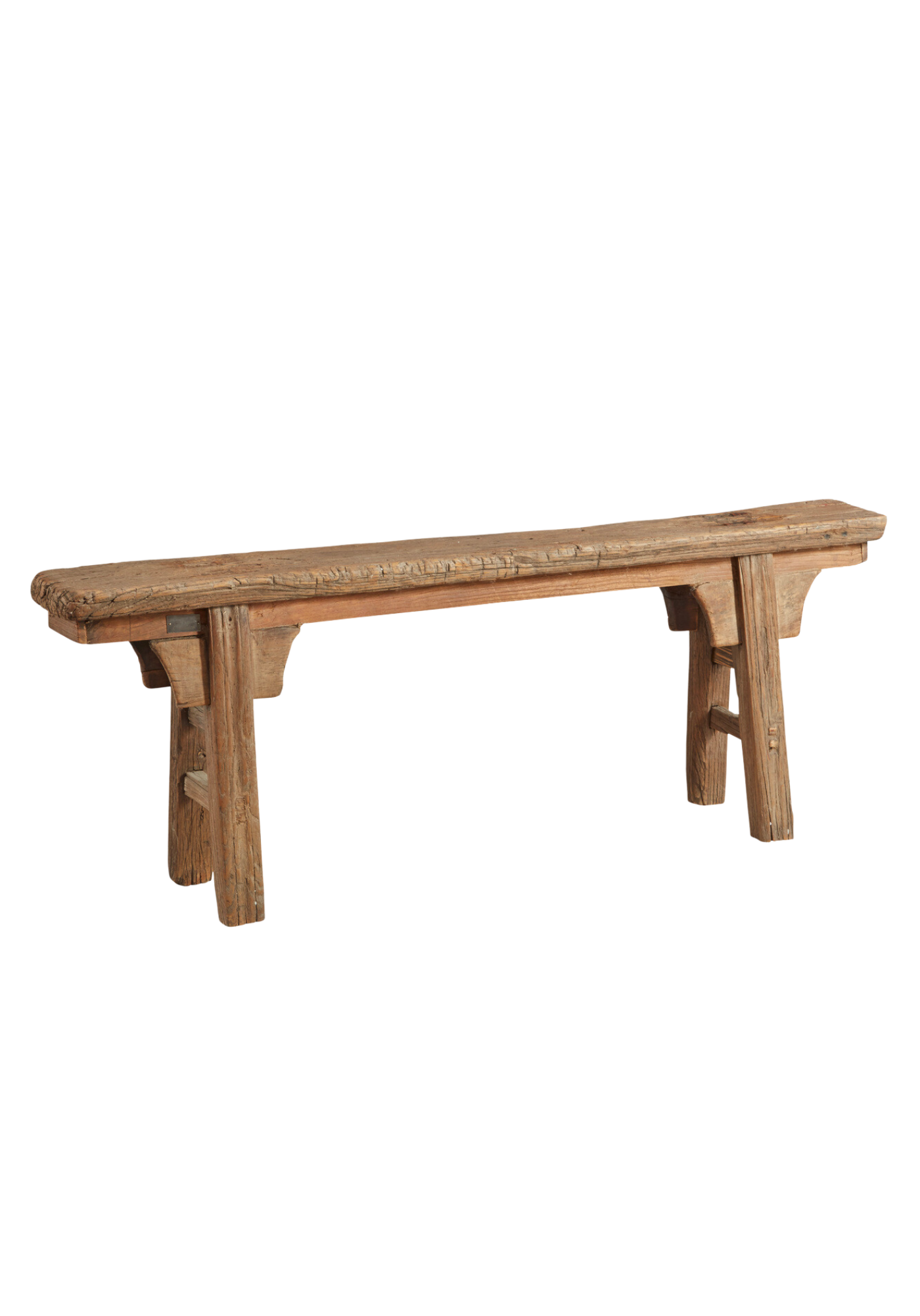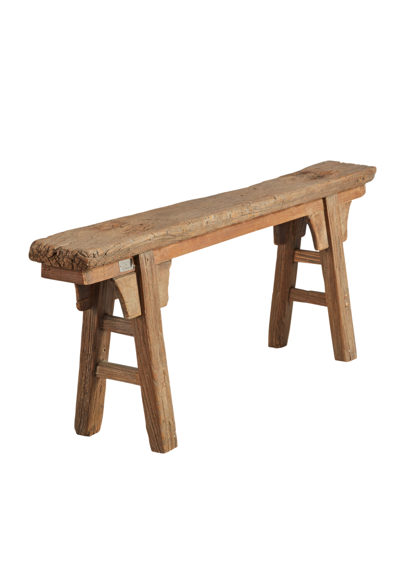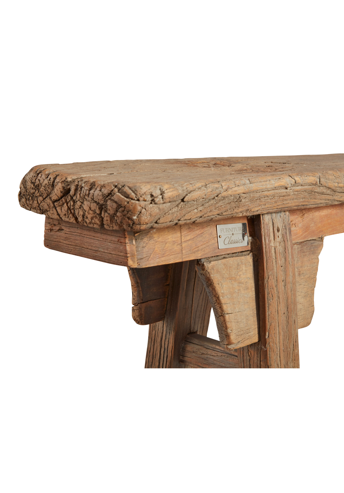 This unique one-of-a-kind bench is a true antique piece. Gathered from around the world, the wood type and size will vary but nonetheless it is a must-have for any living space.