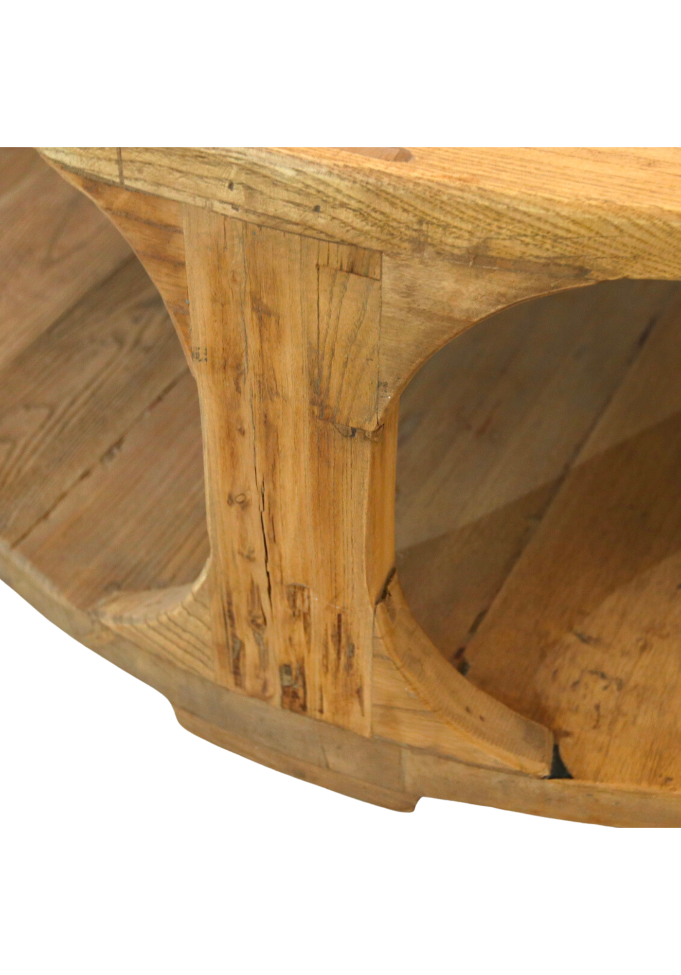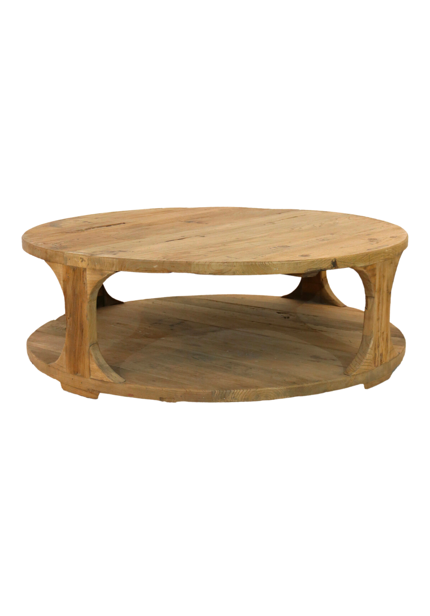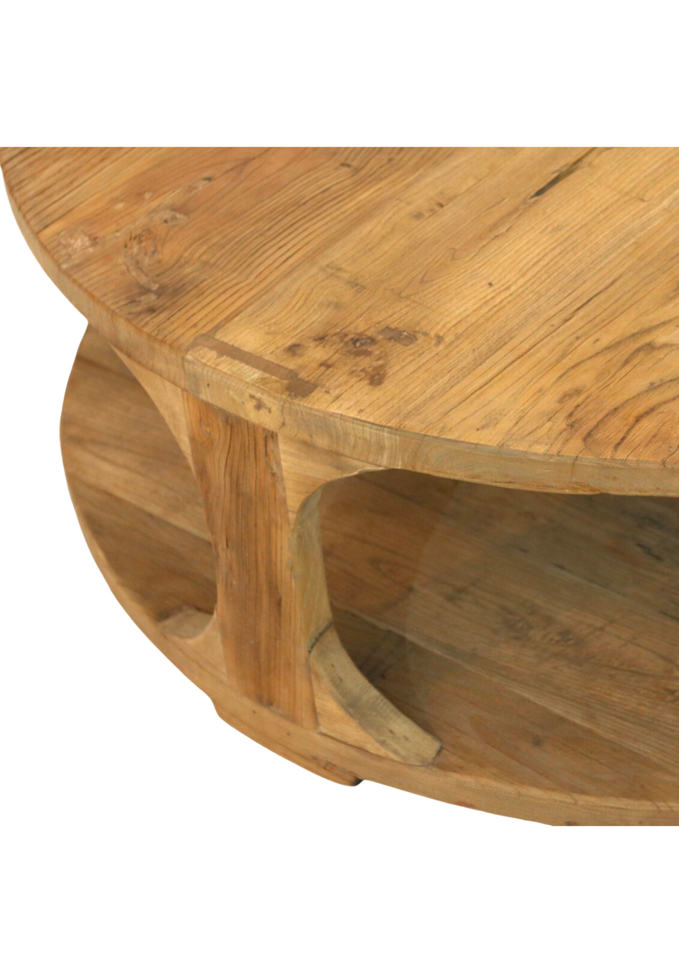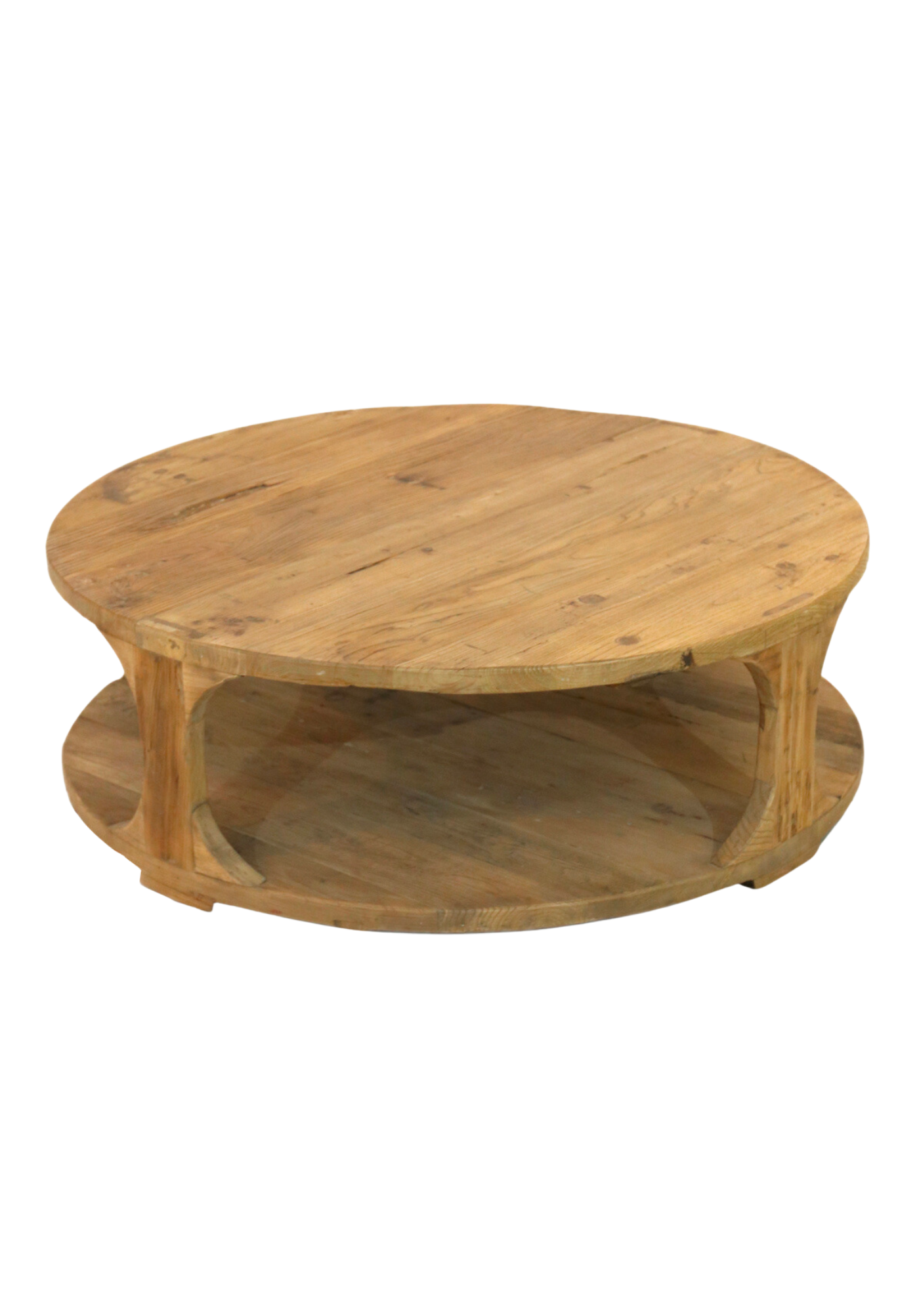 Crafted from recovered antiquated elm and fortified with a transparent varnish, this coffee table provides substantial shelf storage beneath.