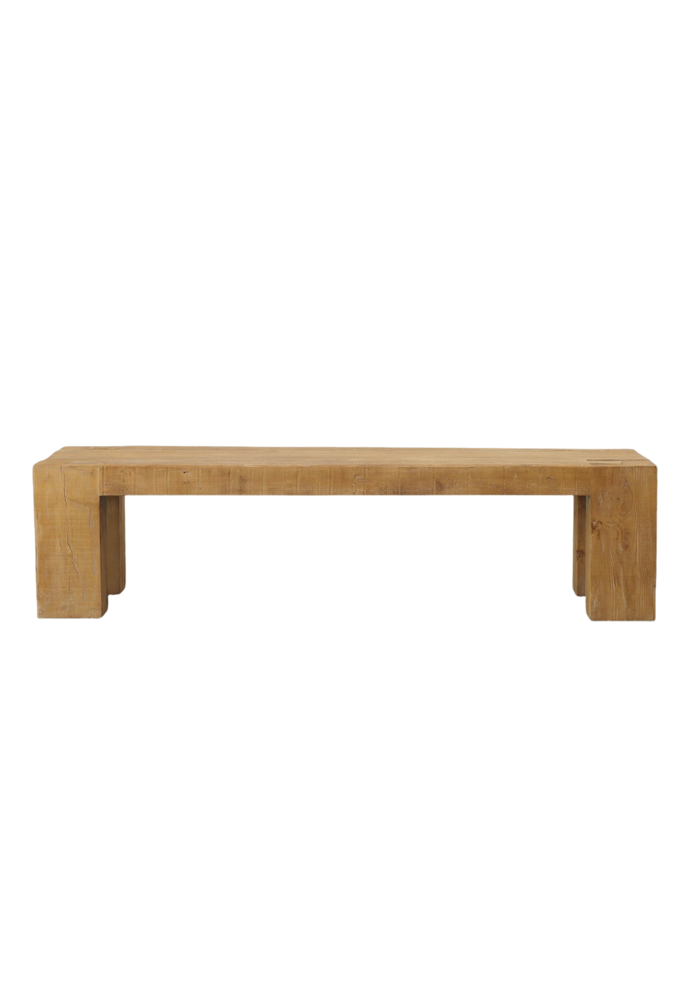 The perfect piece for rustic charm in your dining room or foyer. The Theo wooden bench is a buff, reclaimed wood-style bench with a classic look.