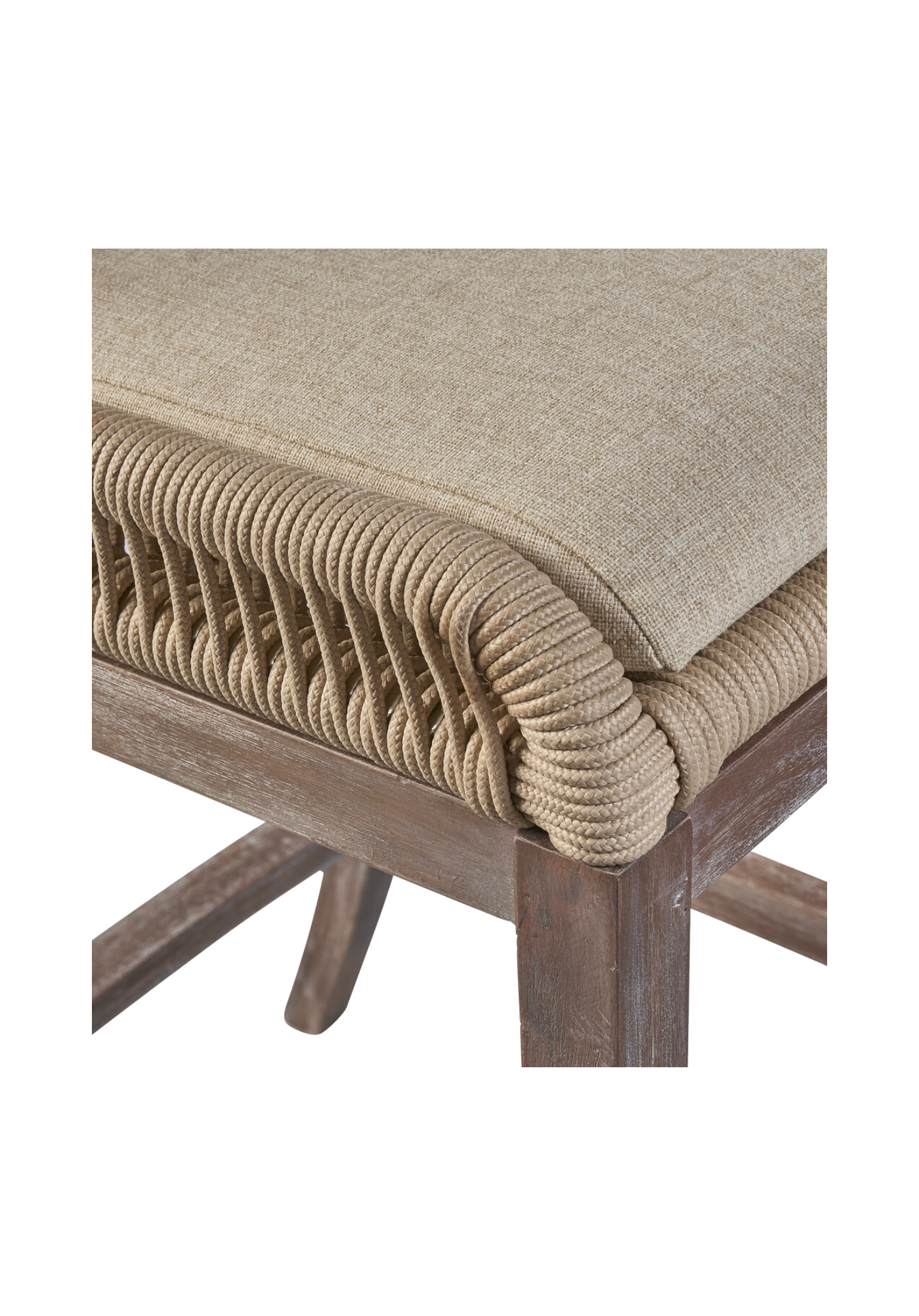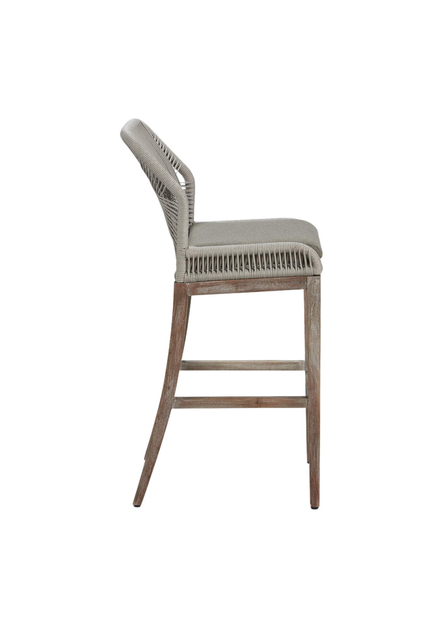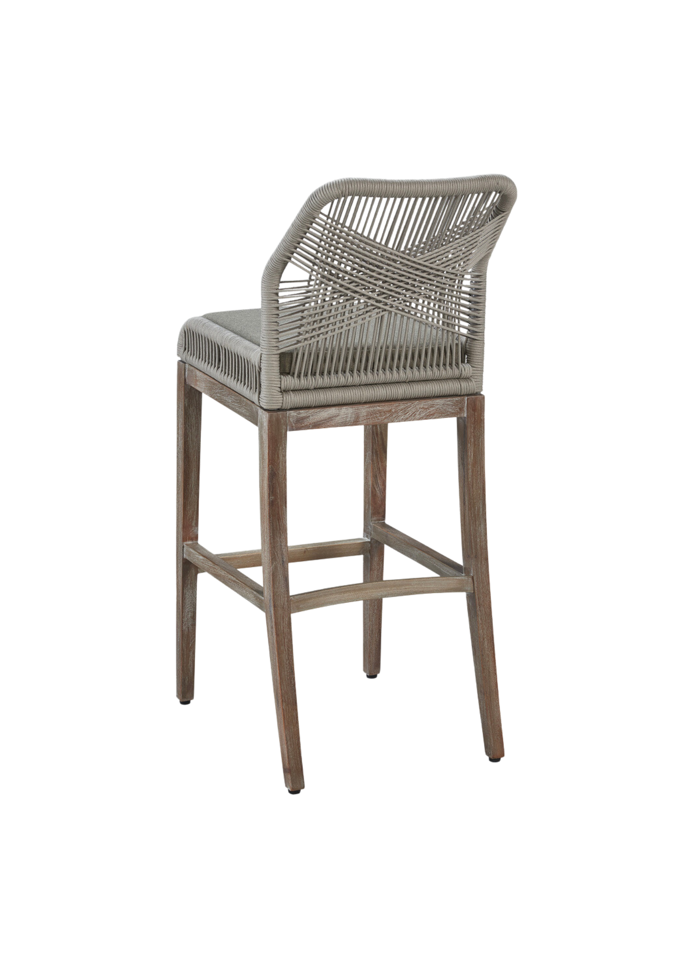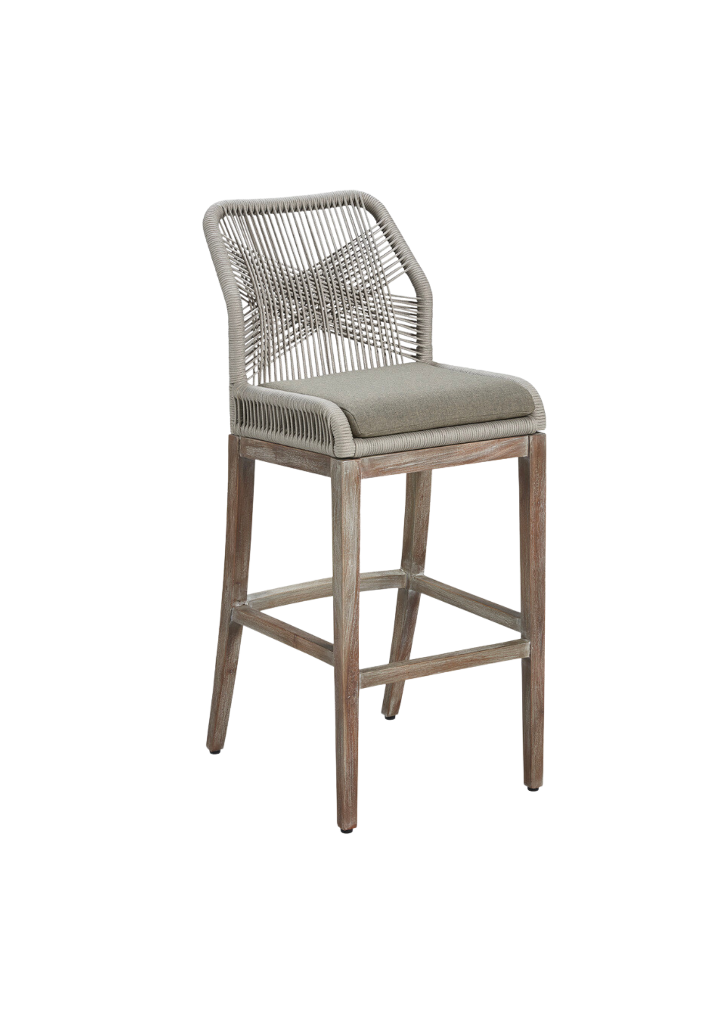 What an original addition to your cooking space or family room. This cozy counter stool boasts an aluminum frame and a light mahogany base craftily coiled with a synthetic cord for a comfy seat with mid-century charm. Available in grey or a light brown hue.