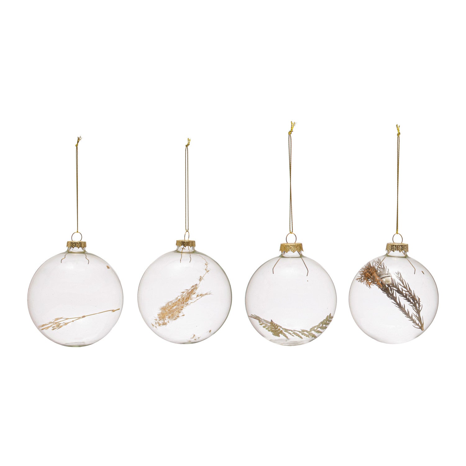 Adorn your Christmas tree with a beautiful 4” round glass ball ornament filled with dried botanicals. Choose from four unique and stylish designs to make your holiday season unforgettable!