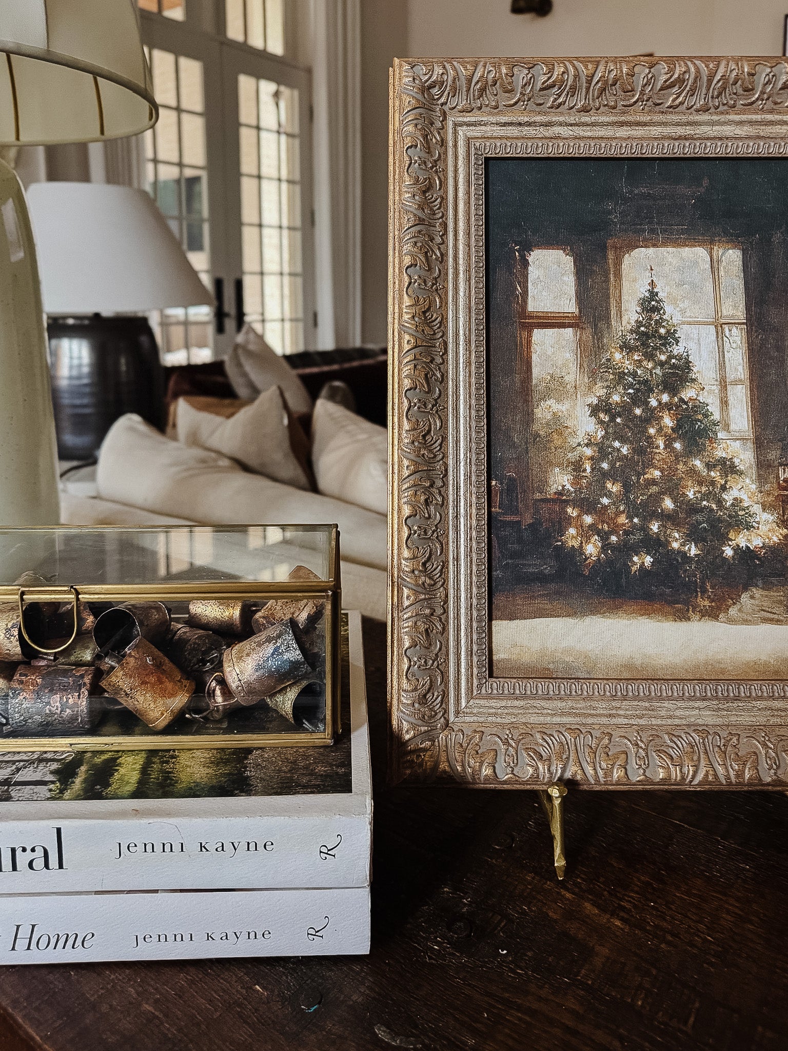 This canvas art print, Glowing Christmas Tree, captures the enchanting glow of a beautifully lit tree in a cozy, dimly lit room. The tree's soft lights contrast gently with the darker surroundings, creating a peaceful and nostalgic holiday atmosphere. Framed in a detailed gold frame, this piece adds timeless, festive charm, perfect for bringing the warmth of the season into your home.