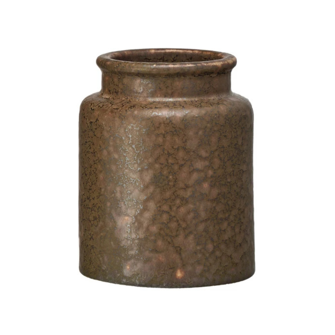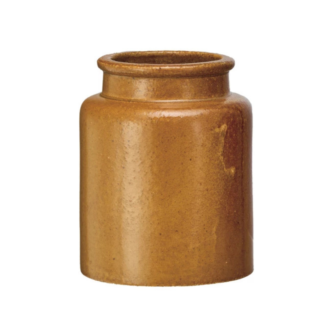 This Small Stoneware Crock features a vintage reproduction design with a textured finish and reactive glaze, ensuring each piece is uniquely varied. Available in four distinct colors, it combines traditional craftsmanship with functional durability, making it ideal for both decorative use and practical storage in your kitchen or pantry.