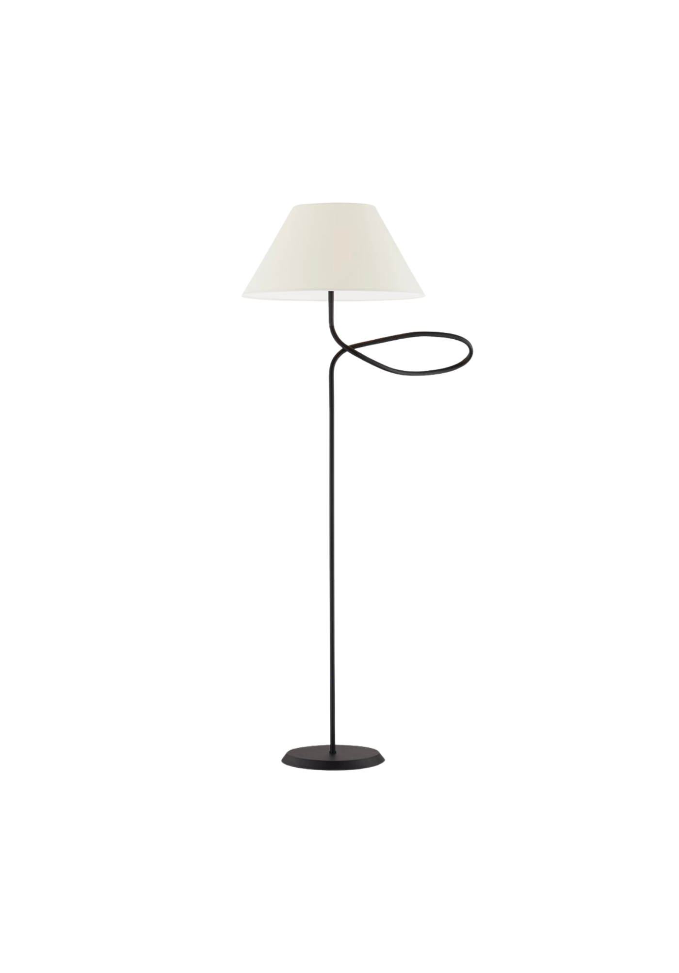 Experience light like never before with the Ali Floor Lamp - a stunning sculpture crafted from exquisite forged iron and lightweight paper shade. Its sophisticated curves combined with a weighty metal base make it an eye-catching addition to any reading nook or bedside.