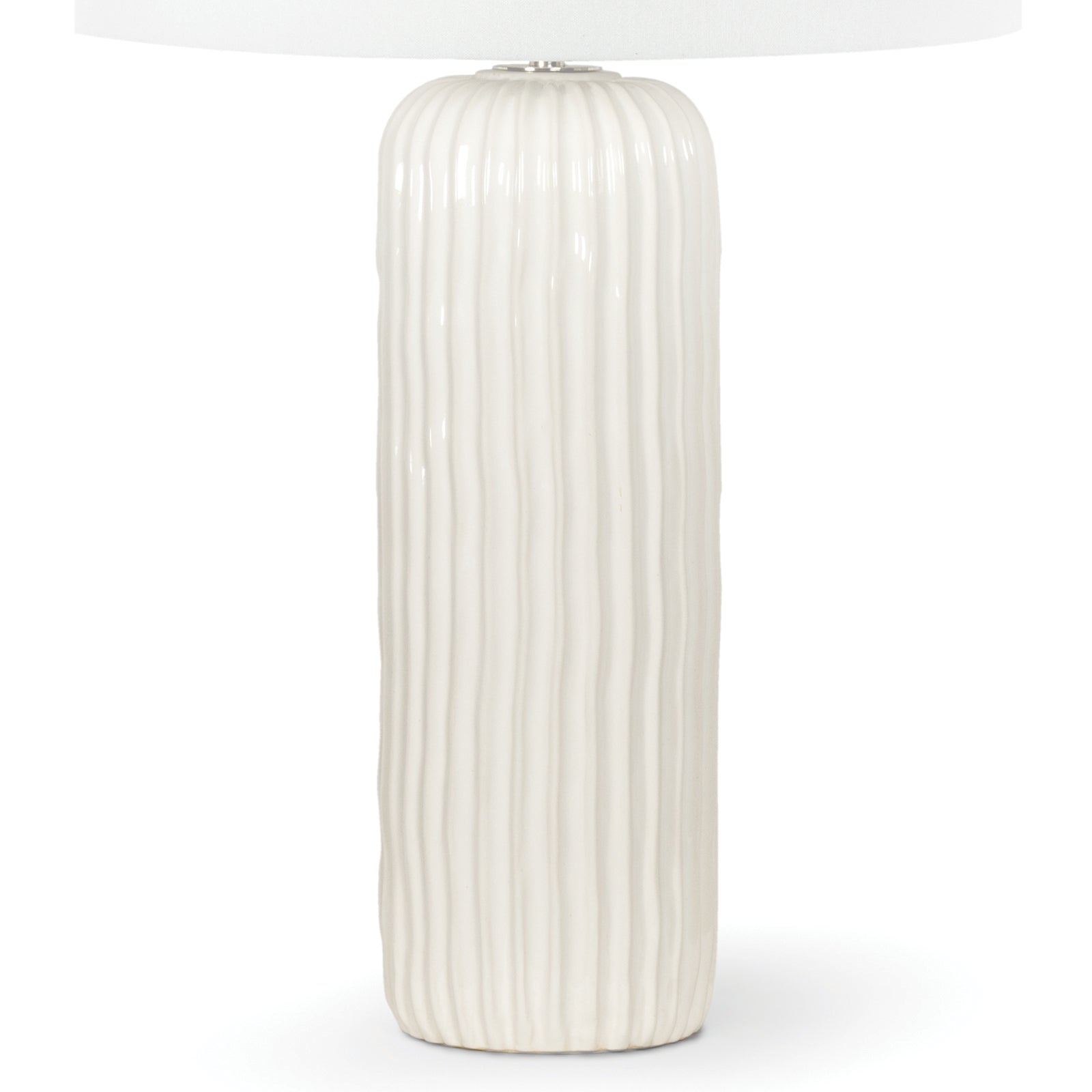 The Caldon Ceramic Table Lamp from Regina Andrew features a long, ceramic base with a textured finish that resembles sand ripples underwater. This design adds a coastal feel, while also being versatile enough to fit into any setting.