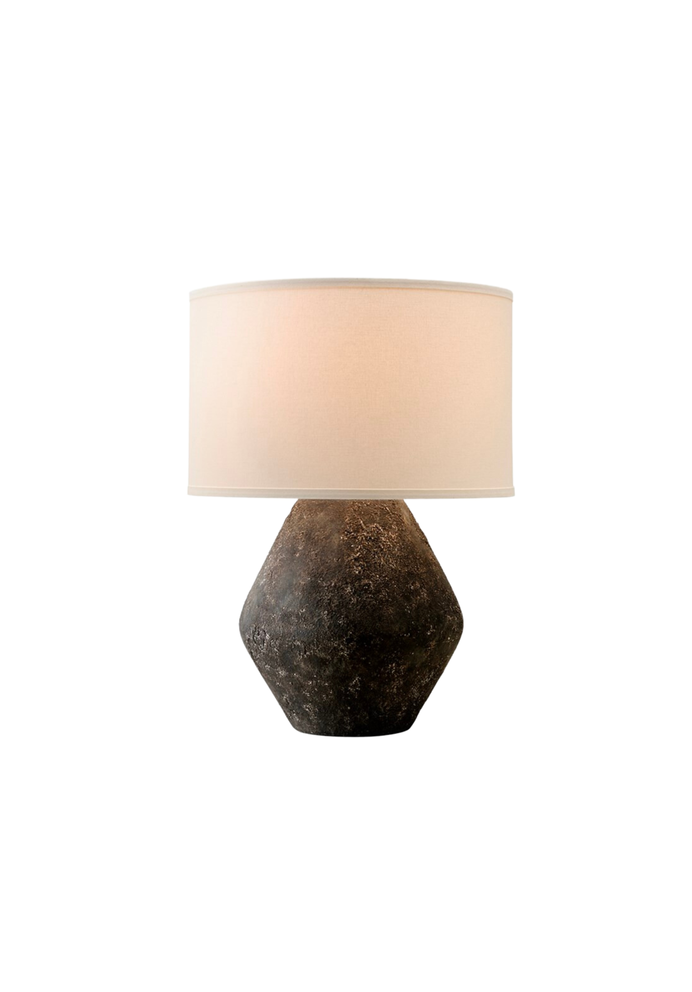 Discover the beauty of the Ignazio Table Lamp. Its shapely, textured abstract form and earthy lava finish is sure to create a talking point in any room. The fine off-white hardback linen white shade provides a perfect finishing touch! Bring the art of luxury lighting into your space.