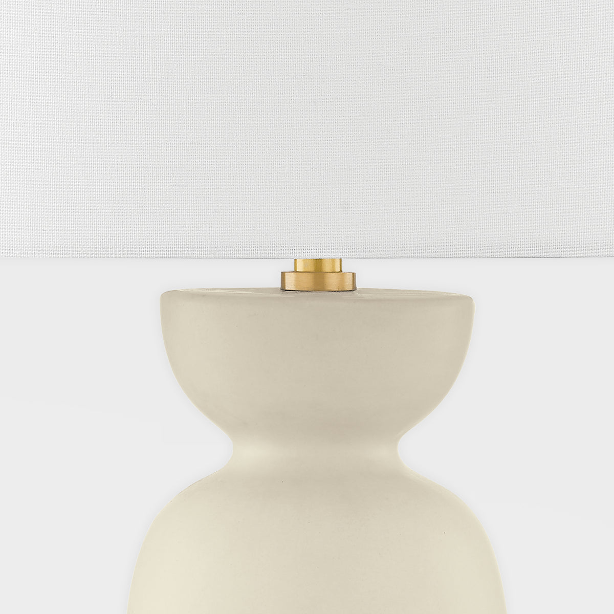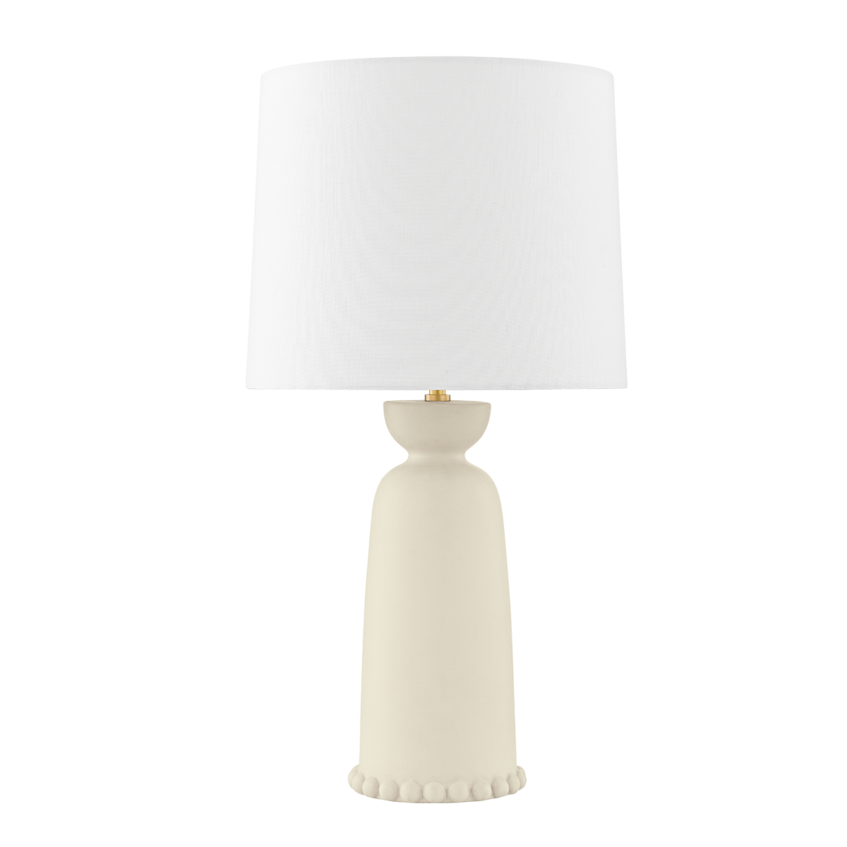 Expertly designed, Jolie Table Lamp embodies the popular grandmillennial aesthetic. Crafted from antique ivory ceramic, the warm and natural tone contrasts beautifully with the scalloped sphere accents at the edges. Complemented by a white linen shade and aged brass accents.