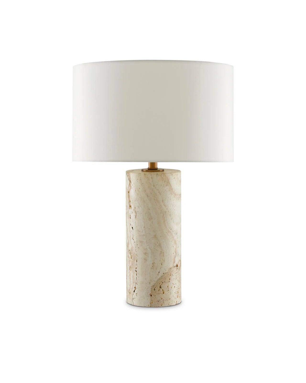 A tall column of swirling marble forms our Julius Table Lamp, a sleek and stylish luminary with plenty of character. The beige and tan veining ensures each lamp is unique. The metal hardware in an antique brass finish highlights the darker tones in the marble, while the off-white shantung shade complements the pale tones in the marble.