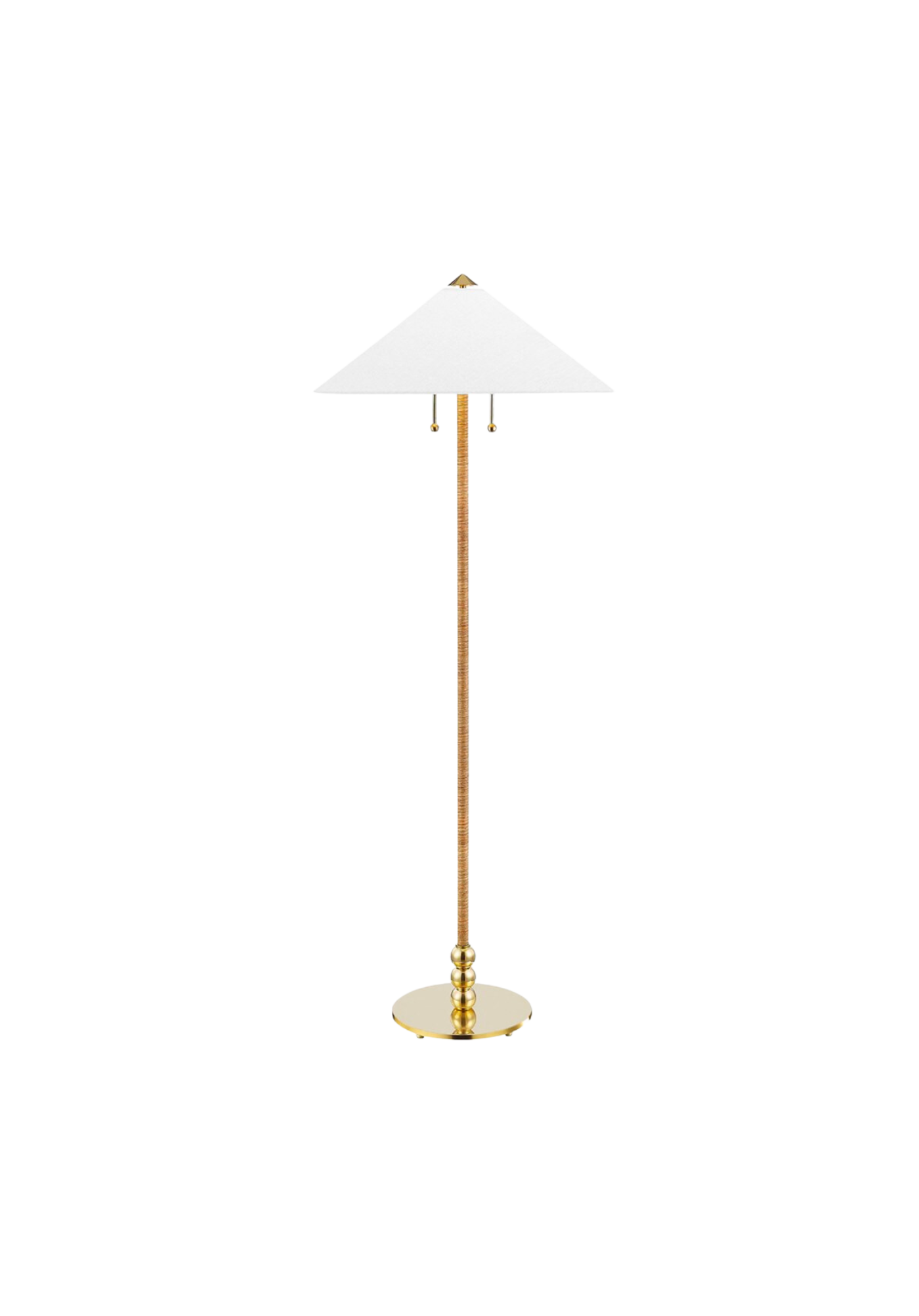 Light up your space with the Madeline Floor Lamp. Its aged brass wrapped base and triangle white linen shade create a luxurious look, while the adjustable height provides the perfect ambiance in any room. Put the finishing touch on your home today!