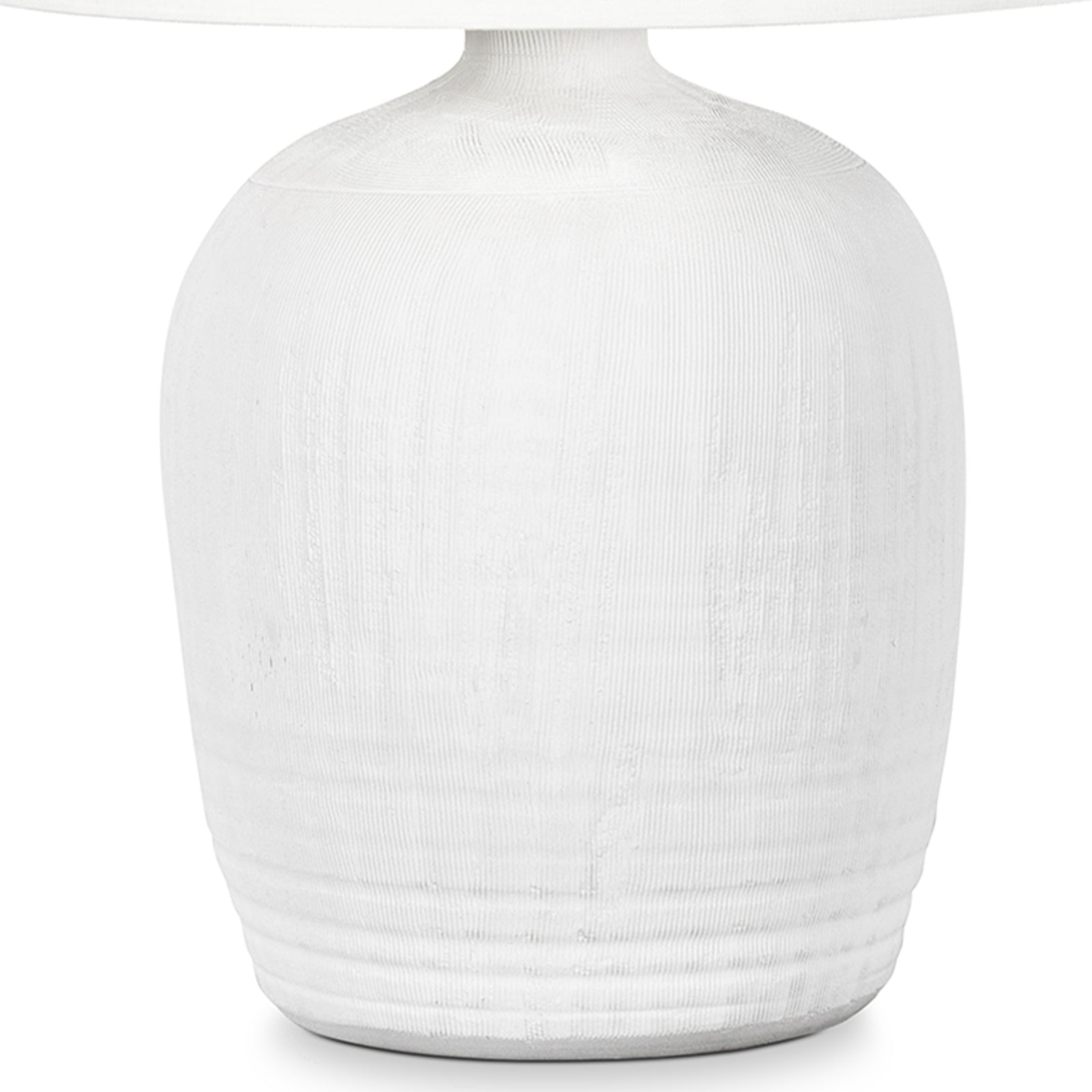 The Phoenix Ceramic Table Lamp boasts a smooth, matte white finish and subtle grooves for a distinctive touch. Its timeless, classic appearance is enhanced by natural brass hardware and a luxurious linen shade.