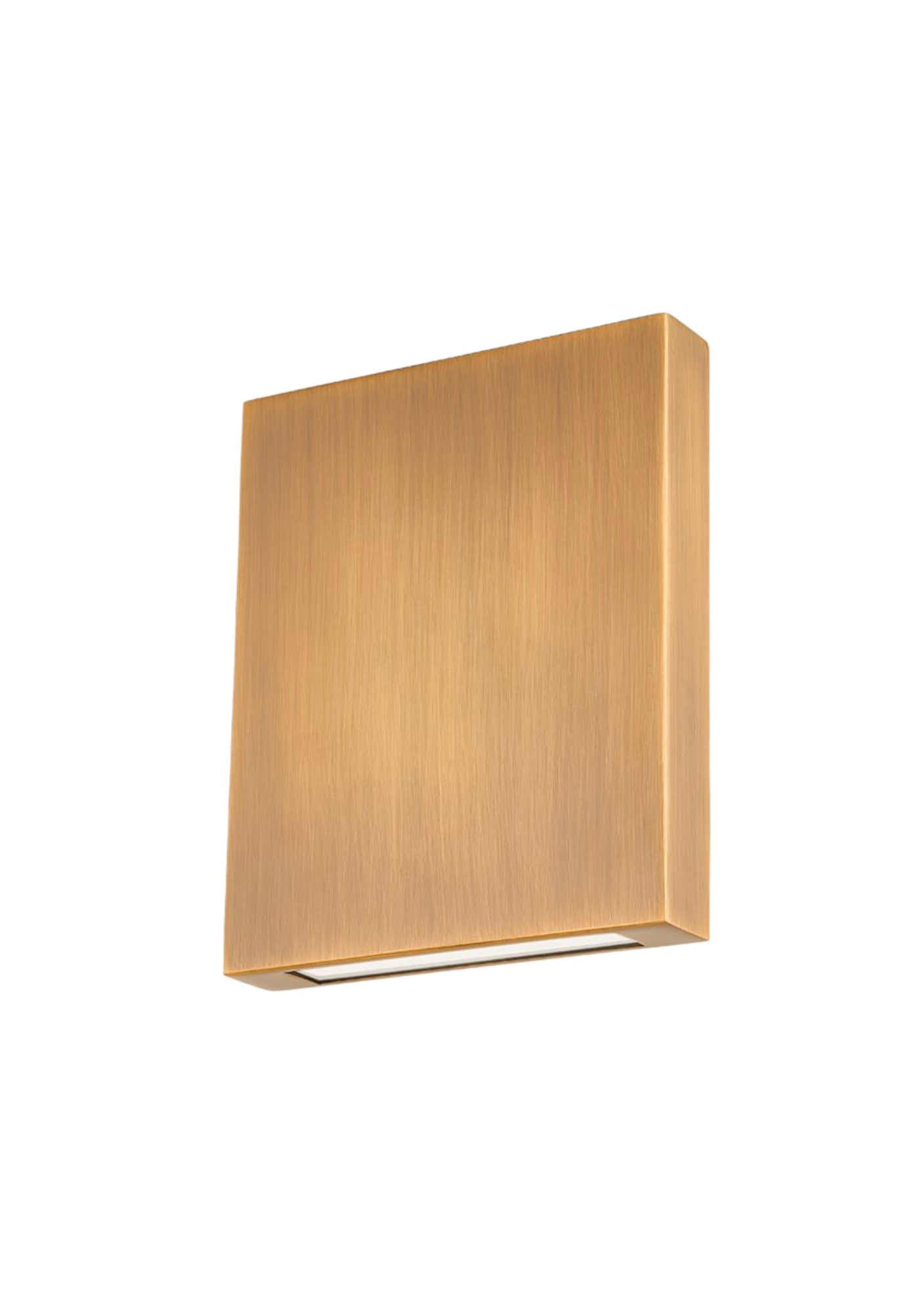 Light up your outdoor space with the Ashland Sconce. This stunning modern sconce features a Patina Brass finish, rectangular shape, and an etched "spread" lens for even light distribution. Its slim profile makes it an ideal statement piece for any exterior.